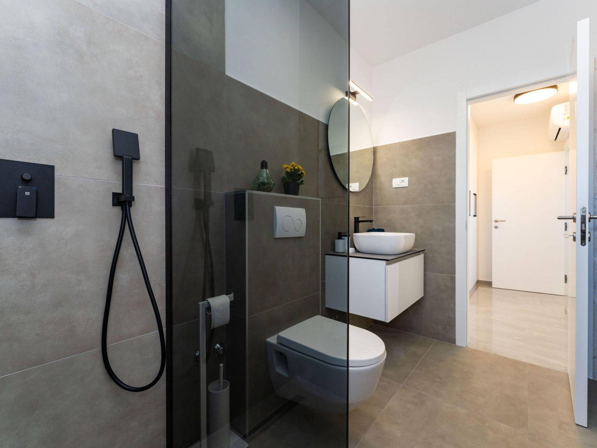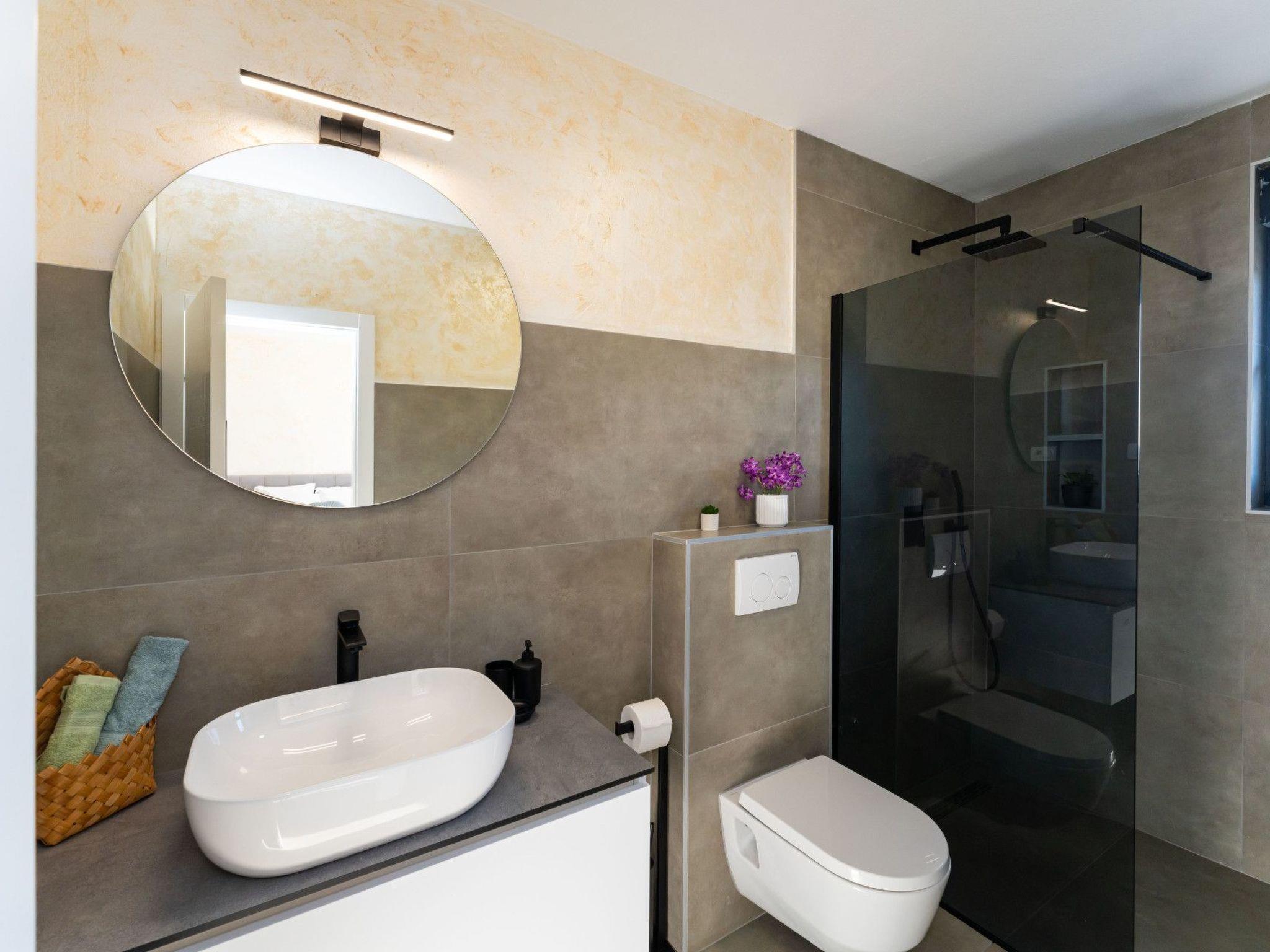 Step inside and feel immediately at ease with Villa Opal's thoughtful interior. Each of the four bedrooms is accompanied by its own bathroom, ensuring privacy and convenience for all guests. The house comes equipped with partial air conditioning, underfloor heating throughout to keep you comfortable in all seasons, and a laundry zone with both a washing machine and clothes dryer for your exclusive use. Whether you are waking up to a fresh cup of coffee made from the coffee machine, loading the dishwasher after a delightful meal, or boiling water in the electric kettle for a soothing tea, every detail has been taken care of to make your stay seamless.