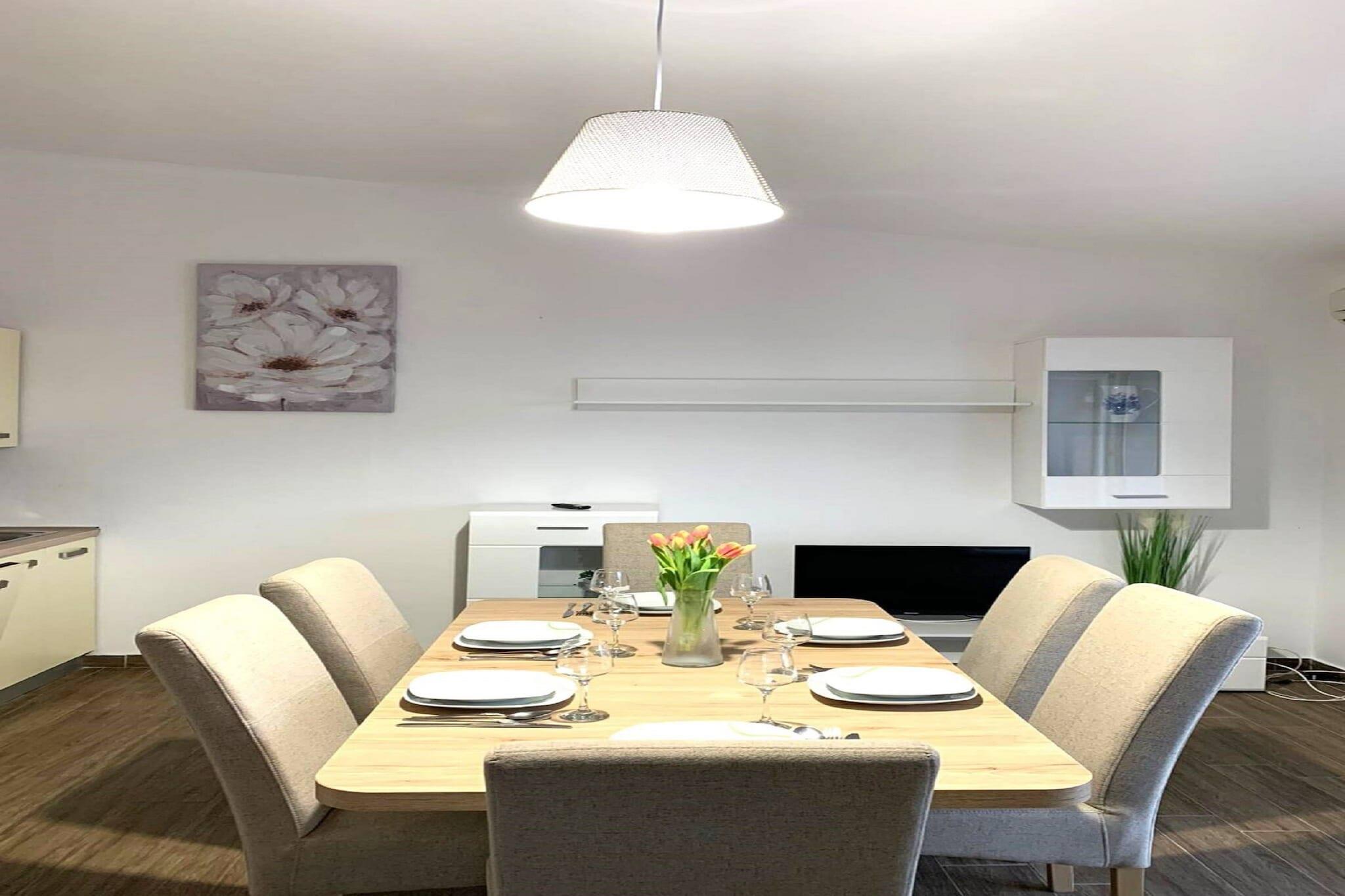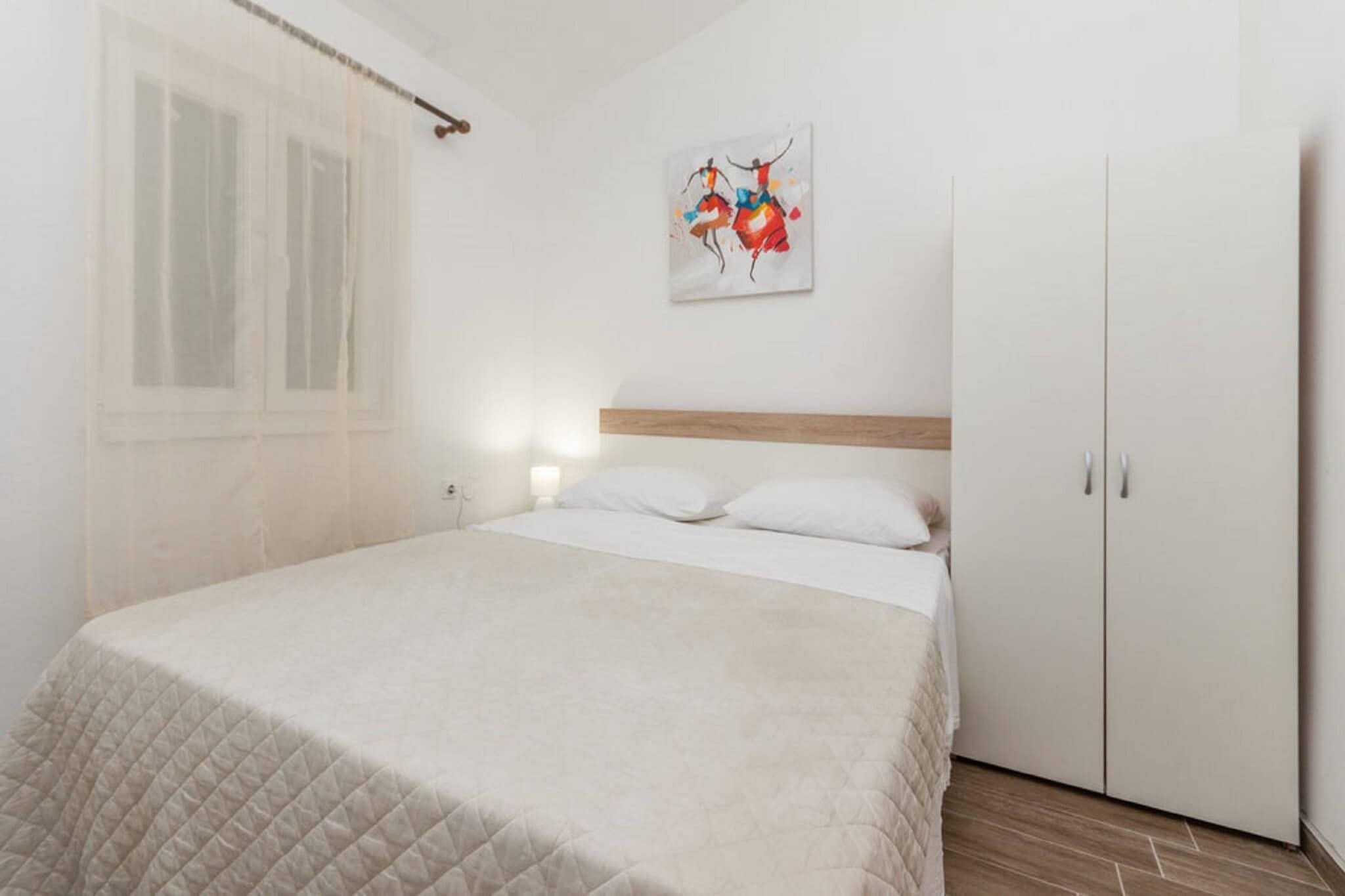 Velkommen til denne koselige leiligheten i Drage, som tilbyr en fantastisk beliggenhet ved vannkanten i et familievennlig område. Denne leiligheten er kompakt, men effektiv på 50 m² og har plass til opptil 6 personer. Den har 2 soverom og en komfortabel stue, noe som gjør den perfekt for familier eller små grupper. Det åpne, elektriske kjøkkenet er fullt utstyrt med kjøleskap, mikrobølgeovn, stekeovn, oppvaskmaskin, fryser, kaffemaskin og alt nødvendig kjøkkenutstyr. Beliggenheten er virkelig eksepsjonell, da du bare er 40 meter fra en sandstrand, en restaurant og en kafé – perfekt for en uanstrengt ferie! Leiligheten har en hyggelig terrasse på 20 m² og en balkong med utemøbler med utsikt over den inngjerdede hagen. Gjestene kan nyte utendørs matlaging med den medfølgende grillen og slappe av ved peisen (sannsynligvis en utendørs peis, gitt størrelsen). Komforten inkluderer klimaanlegg i stuen, Wi-Fi og utendørs parkering på eiendommen. Eiendommen er godt utstyrt med fasiliteter som vaskemaskin, strykejern, hårføner og TV. Du vil finne ekstra bekvemmelighet med myggnett på soverommet og en elektrisk myggmaskin. Leiligheten ligger beleilig til i nærheten av et supermarked (200 m) og den sjarmerende byen Pakoštane (3 km), like utenfor den umiddelbare vannkanten. Naturelskere vil sette pris på nærheten til naturparken Vrana-sjøene (3 km) og flere nasjonalparker, noe som gjør den til et flott utgangspunkt for å utforske den dalmatiske kysten.