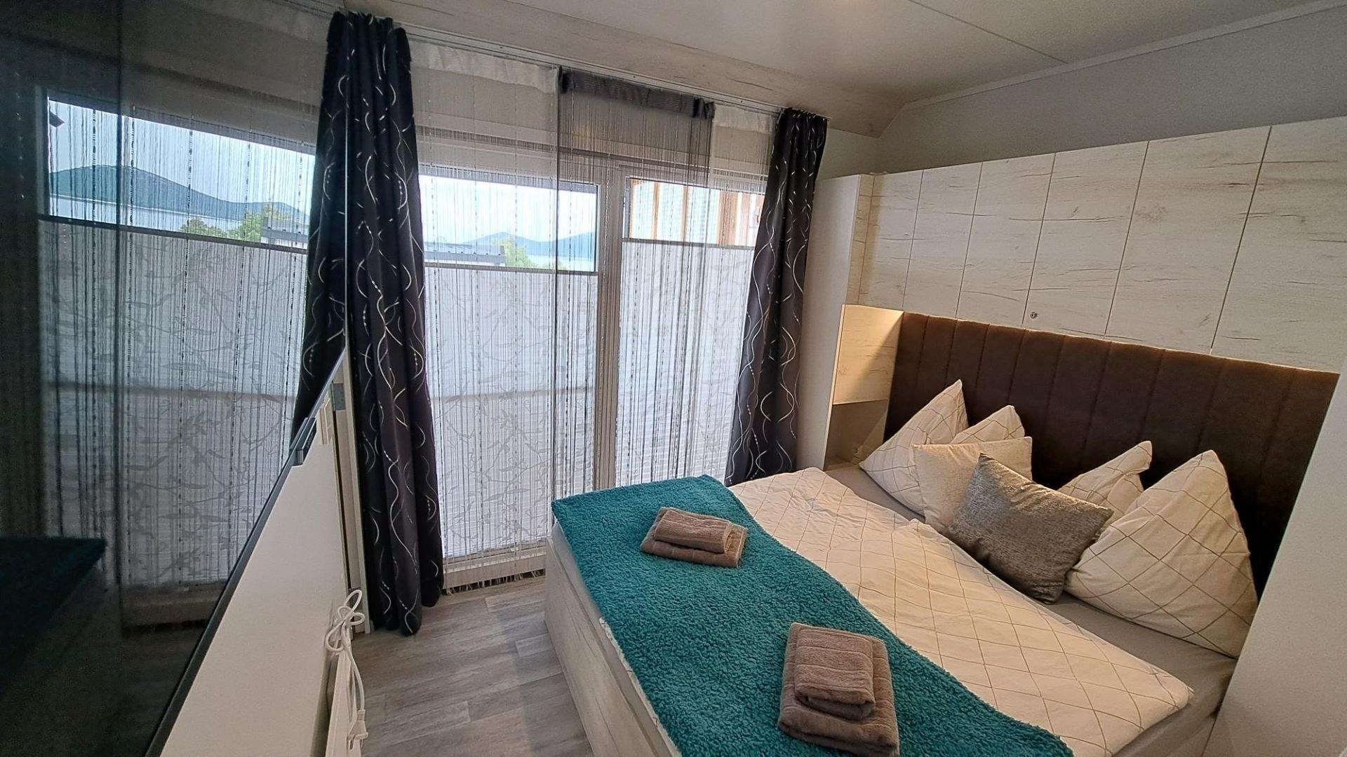 Ein Ferienhaus mit wunderschönem Meerblick finden Sie in nur ca. 8 Autominuten von Biograd entfernt, in der kleinen Ortschaft Drage. Das Mobile Home Tom 12 bietet Ihnen 2 getrennte Schlafzimmer sowie 2 getrennte Badezimmer samt WC. Eine voll ausgestattete Küche steht Ihnen ebenfalls zur Verfügung. Diese beinhaltet E-Herd, Backrohr, Geschirrspüler, Kühlschrank, Gefrierschrank, Kaffeemaschine, Mikrowelle, Toaster, Eierkocher usw. Das gesamte Haus ist klimatisiert. In den Badezimmern ist jeweils eine Regendusche vorhanden und auch ein Haarfön. Im Master-Schlafzimmer haben sie, so wie im Wohnraum auch, einen Flachbildfernseher zur Verfügung. Die Terrasse bietet mit ihrer überdachten 28qm großen Fläche genügend Platz zum Entspannen und um den traumhaften Blick auf das Meer zu genießen. Für die Beschattung auf der Terrasse haben Sie elektrische Rollos, welche tagsüber Schatten spenden. Weiters steht Ihnen ein kostenloser Parkplatz direkt vor dem Haus zur Verfügung. Eine Solardusche für eine schnelle Abkühlung können Sie ebenfalls verwenden. 3 Fahrräder vor dem Haus können Sie kostenlos verwenden um schnelle Einkäufe zu erledigen. Auf der Terrasse steht ein Gasgrill, der nur darauf wartet Ihnen ein besonders leckeres Essen zu zaubern. Der Strand selbst ist nur ca. 100m vom Haus entfernt und bietet Ihnen Ruhe und Entspannung, da Sie hier von Trubel und Massentourismus weit entfernt sind.