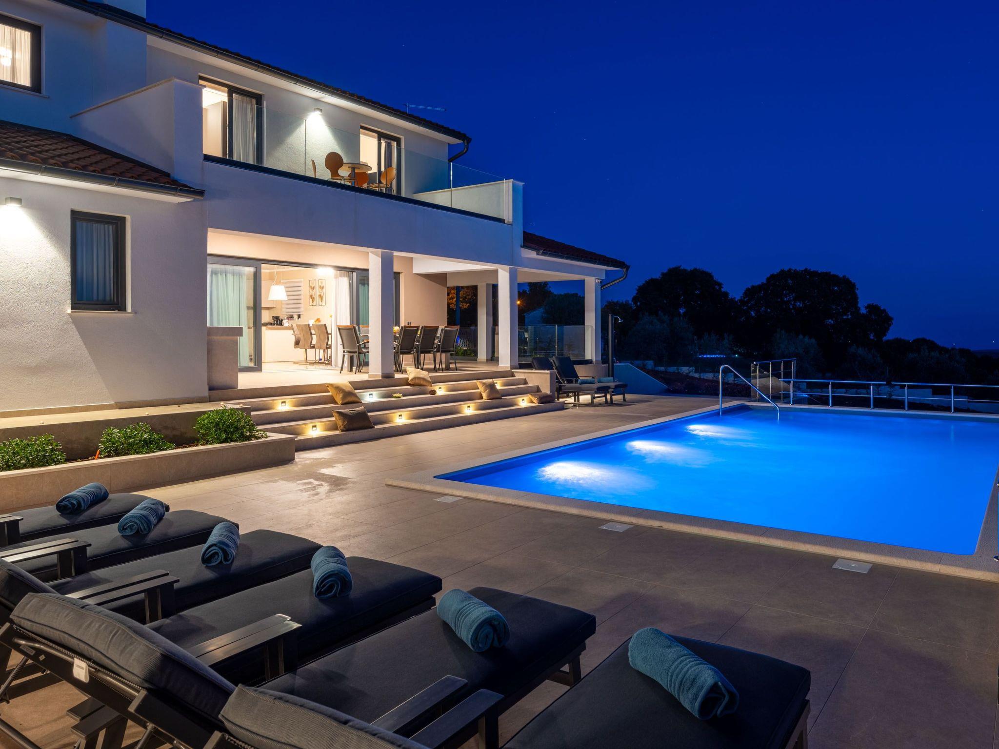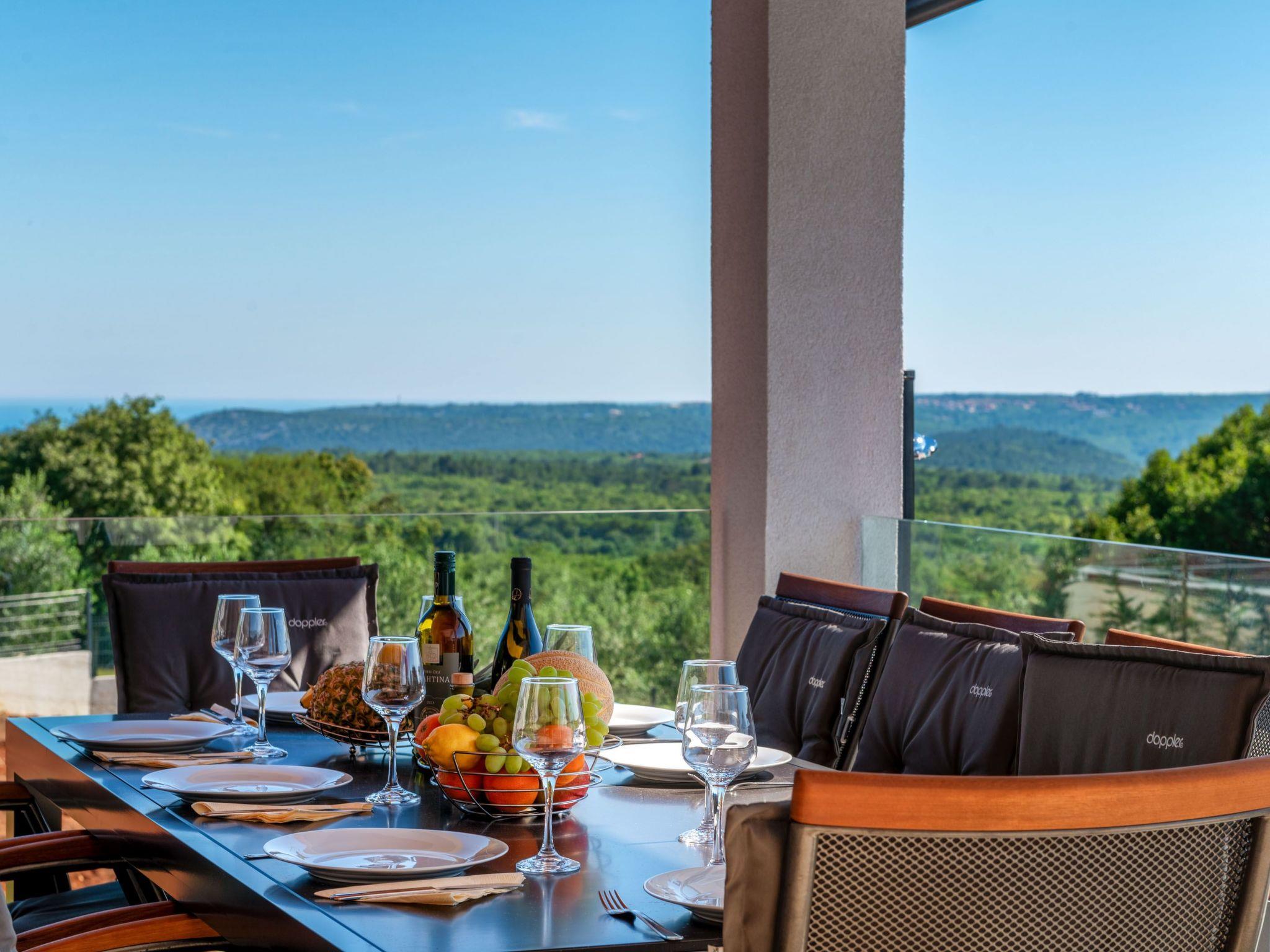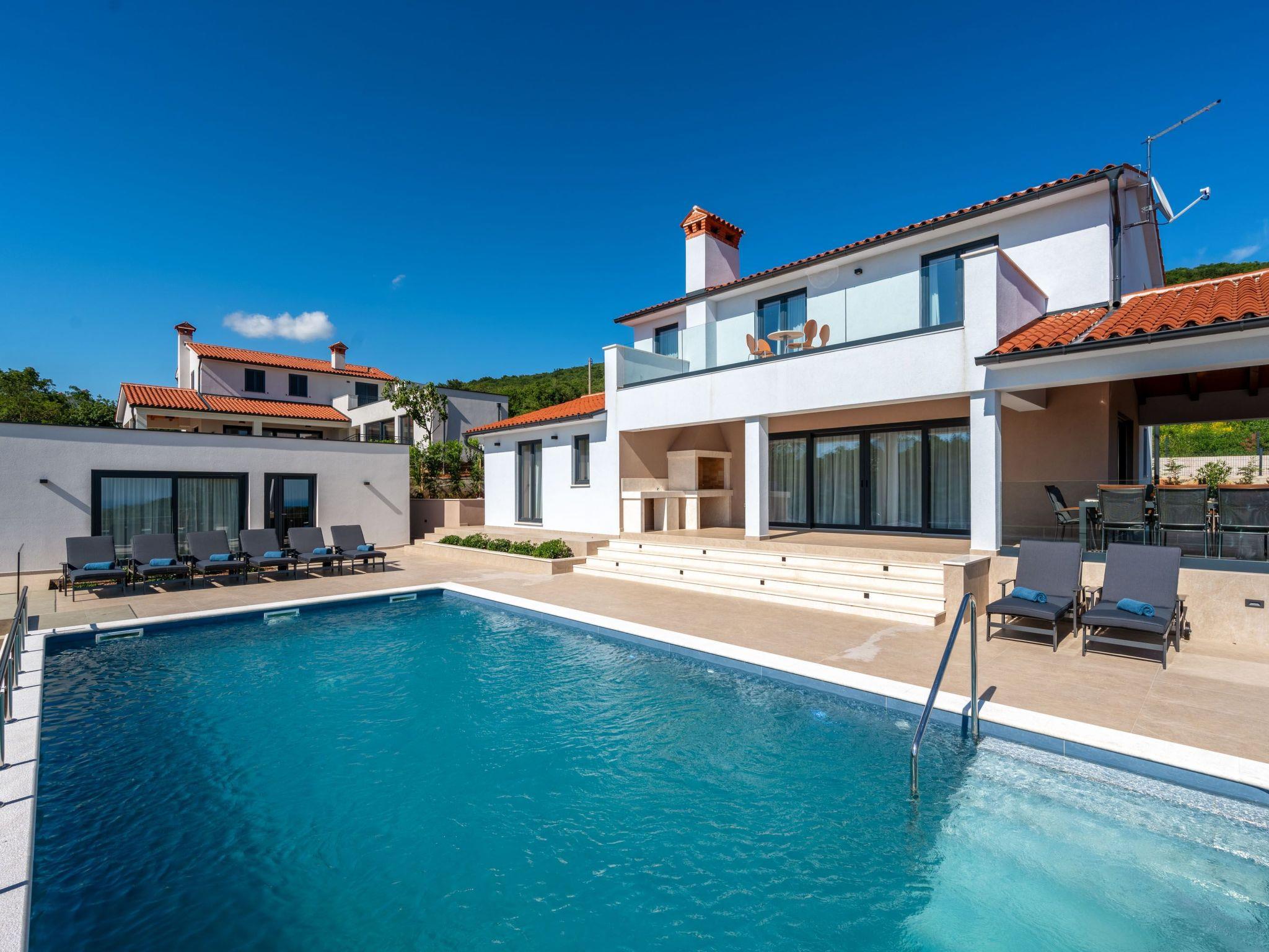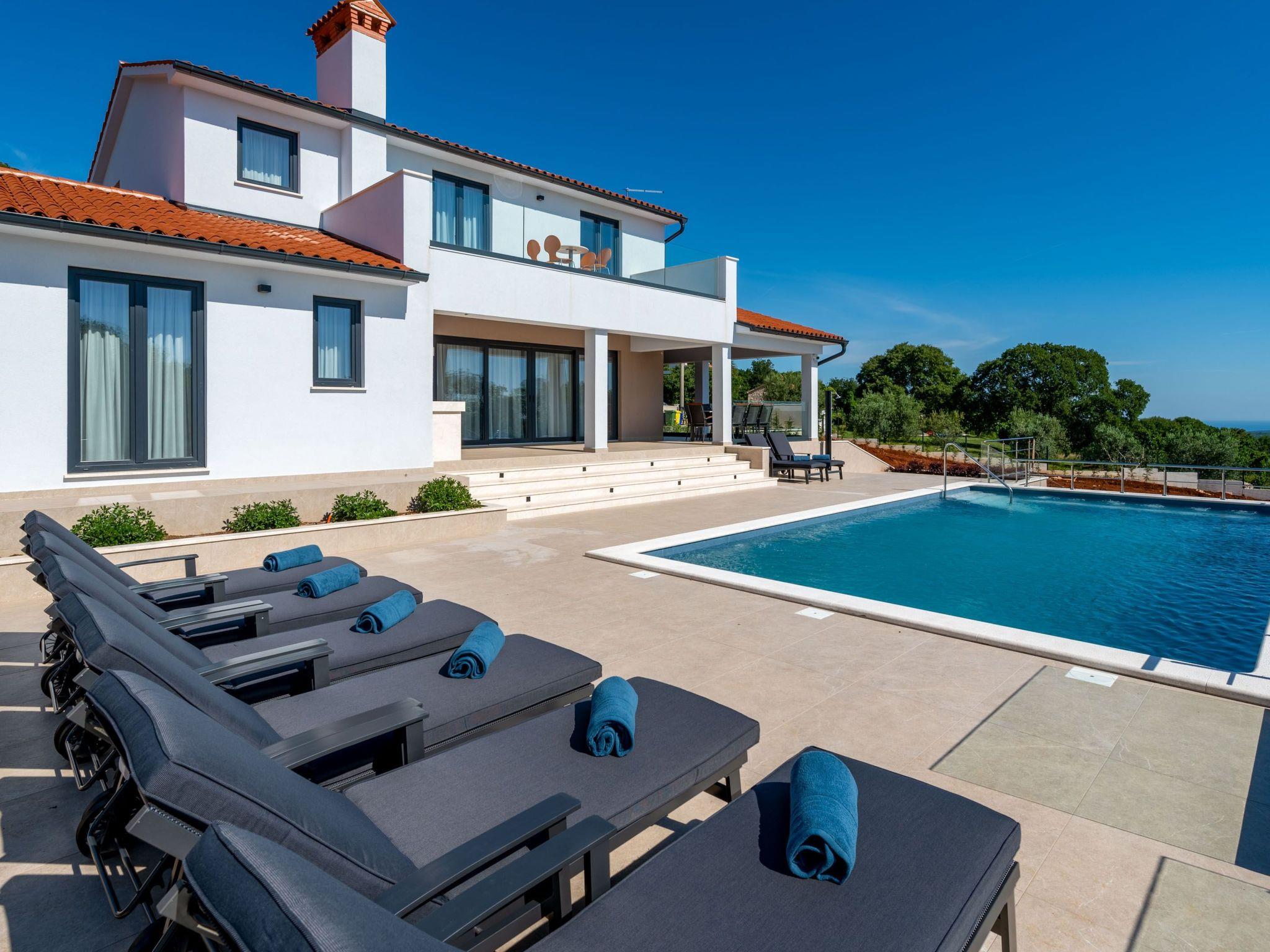 Villa Astrid***** is a luxorious villa on a 2.500 m2 estate, fully enclosed, located in a small place called Reburici near Labin city. Our guests are surrounded by a magnificent view that includes the sea, Raša river canal and spacious greenland of Istria. The estate has its own lawn, suitable for different sports activities, as well as pets and their activities.