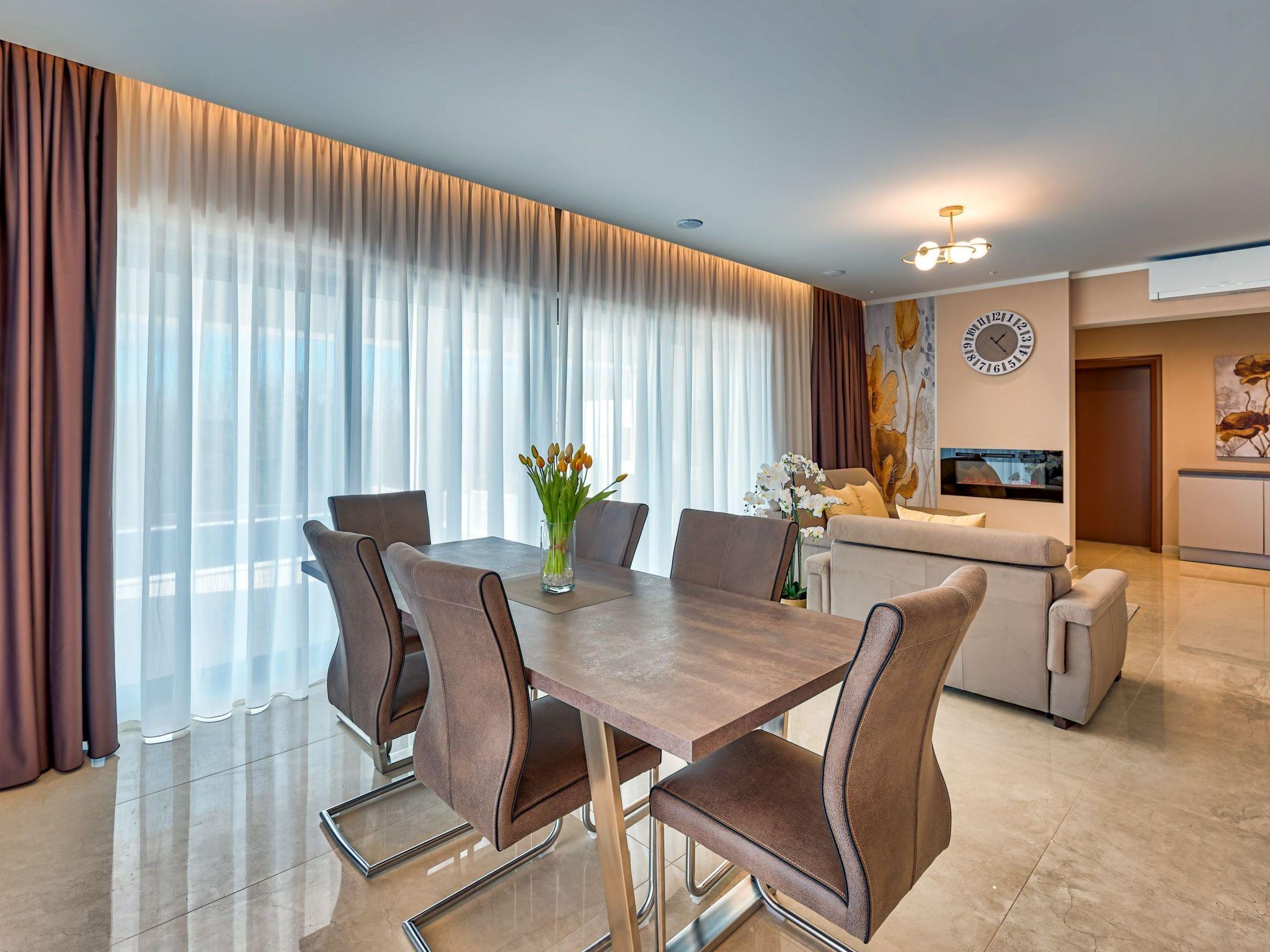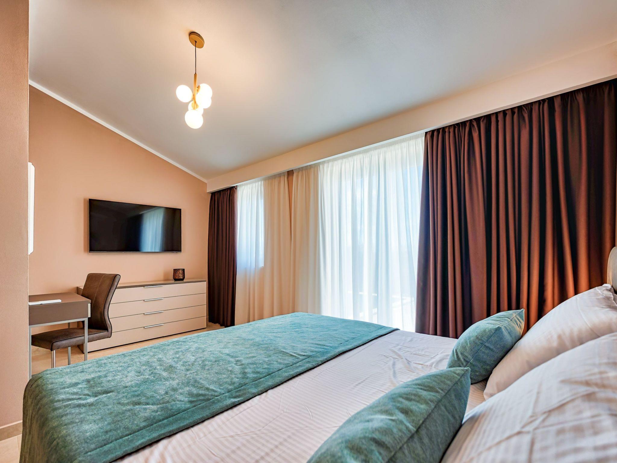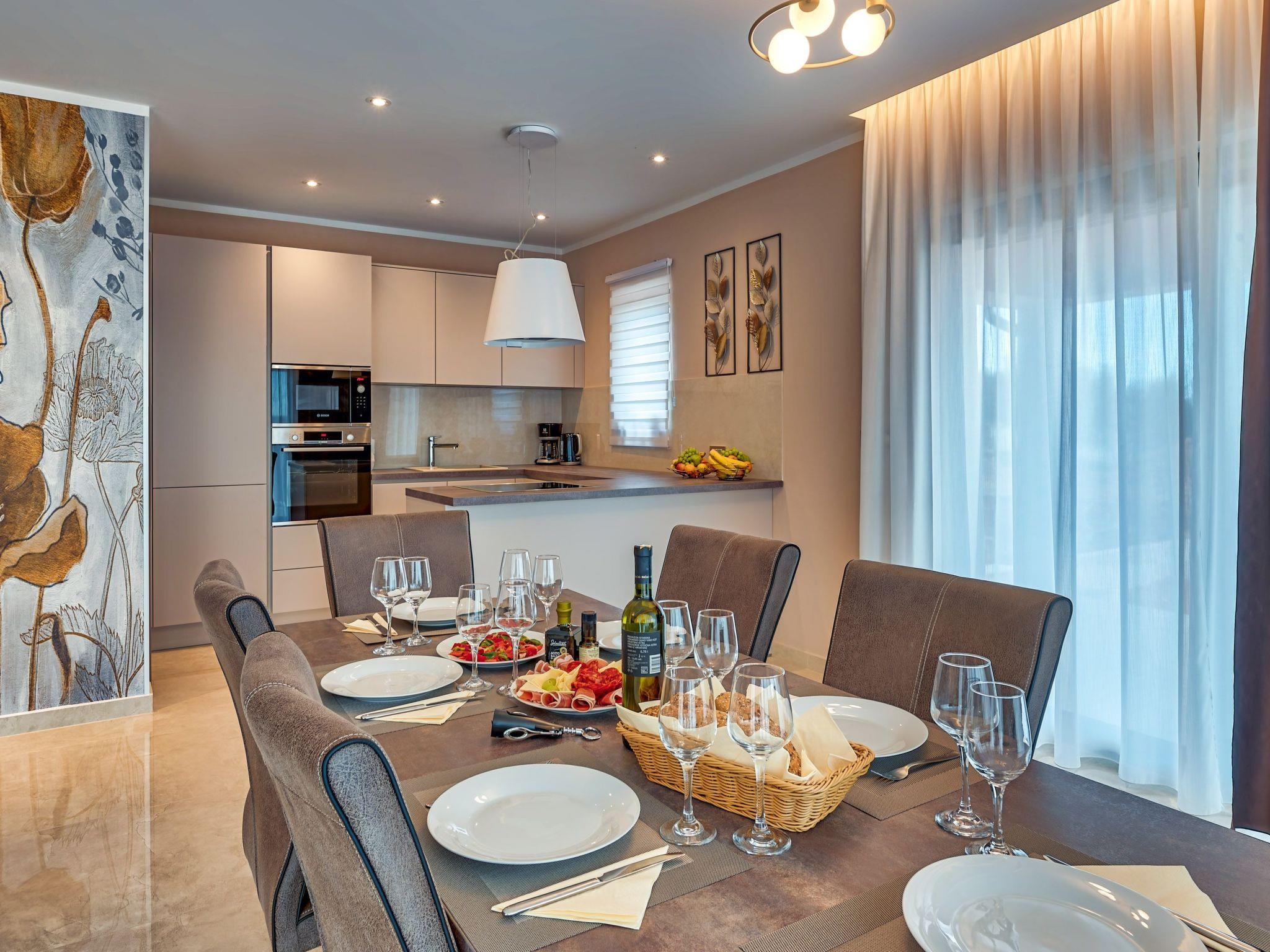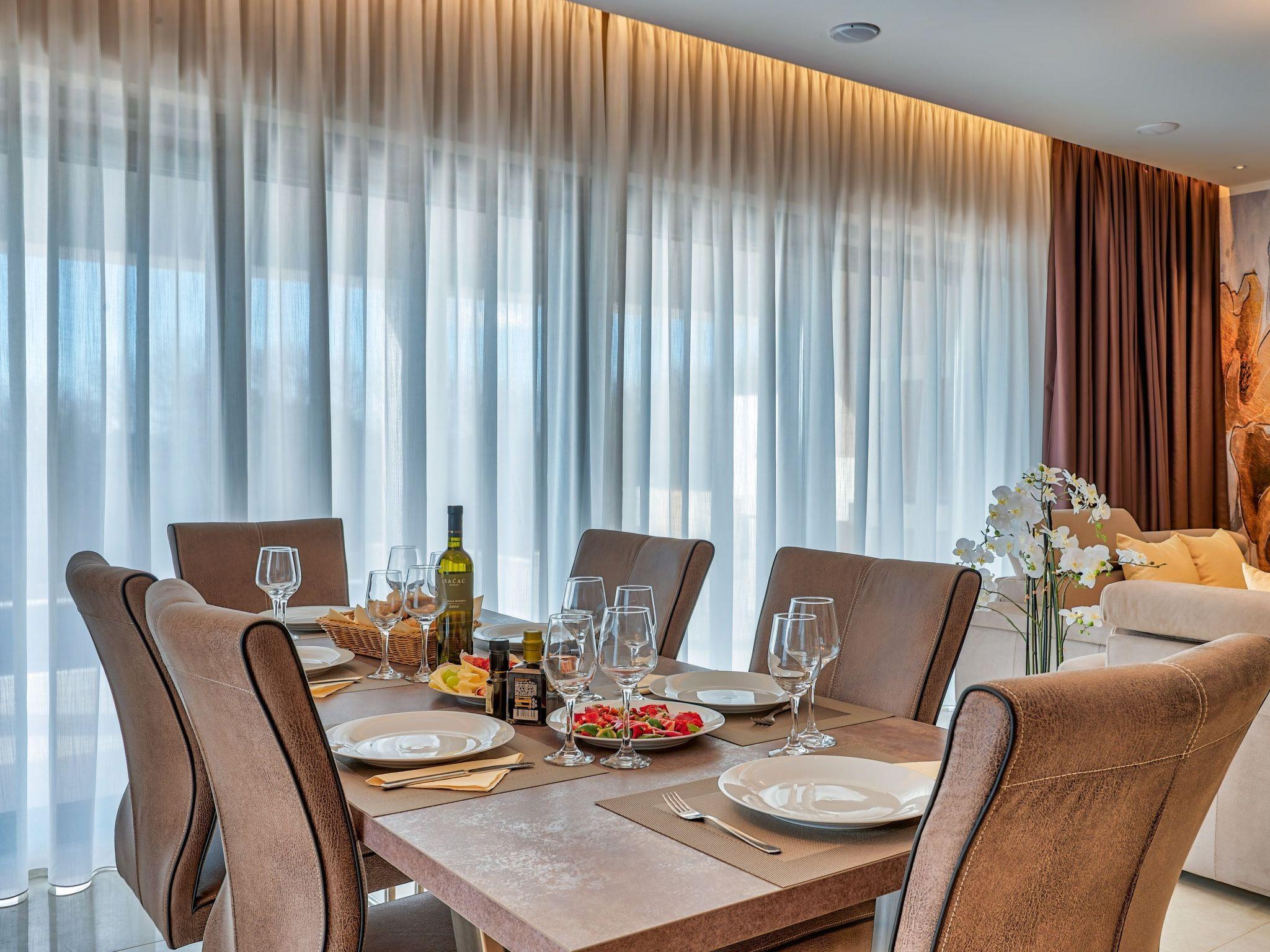 Villa Astrid has the capacity for 11 people: 2 double bedrooms on the 1st floor, 1 double room on the ground floor, foldable couch and armchair in the living room and additional double bedroom in a separate unit. All bedrooms are comfortable and modern, equipped with king size beds (200 x 210 cm), air conditionings and large screen TVs. Rooms on the first floor share a joint spaceous terrace, from which a beautiful view to the whole countryside can be enjoyed.