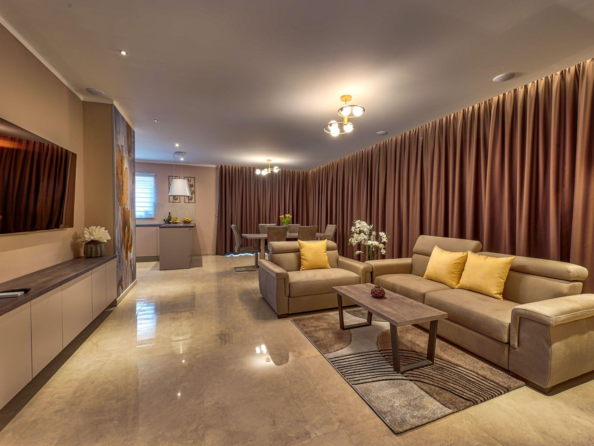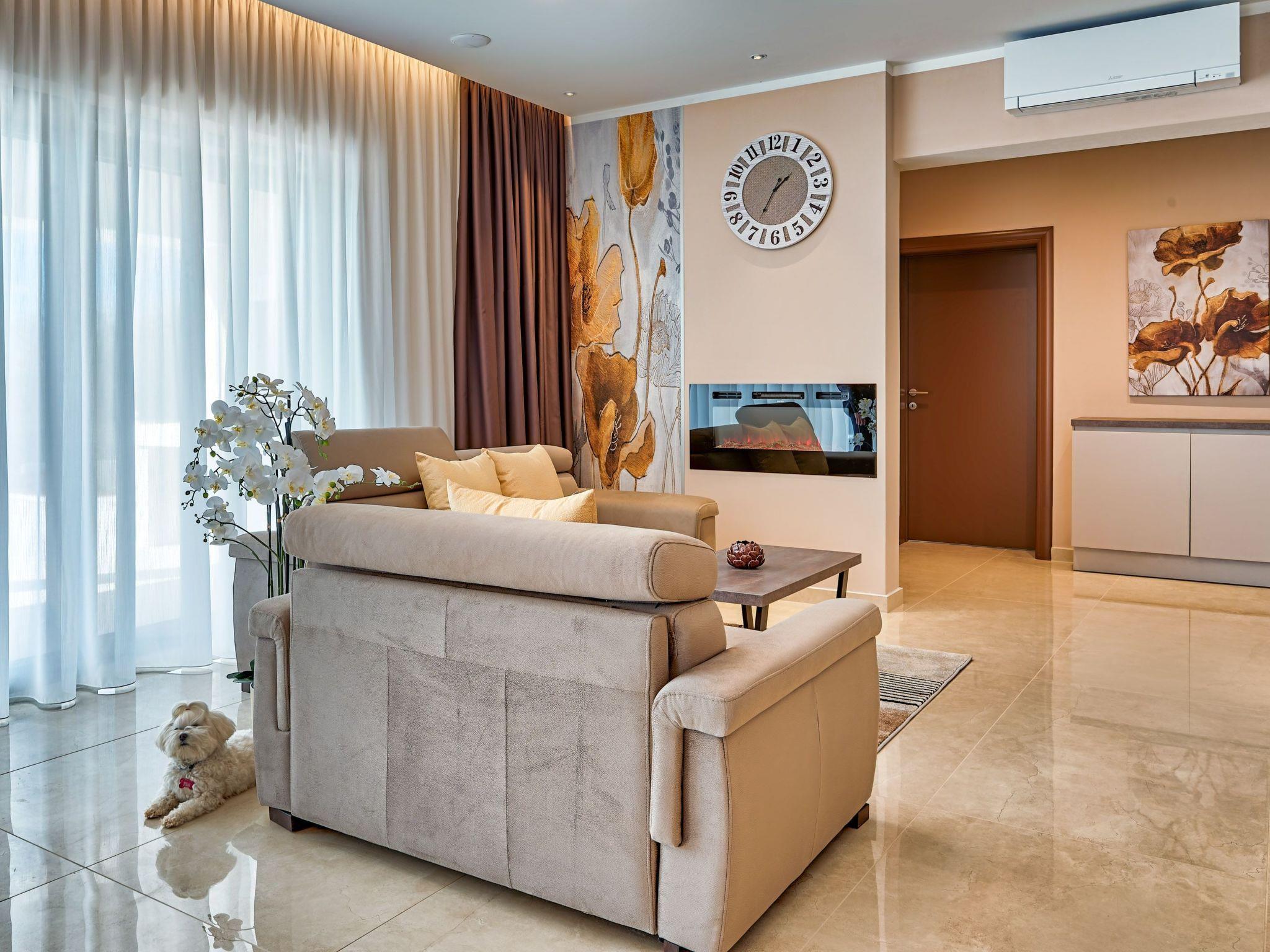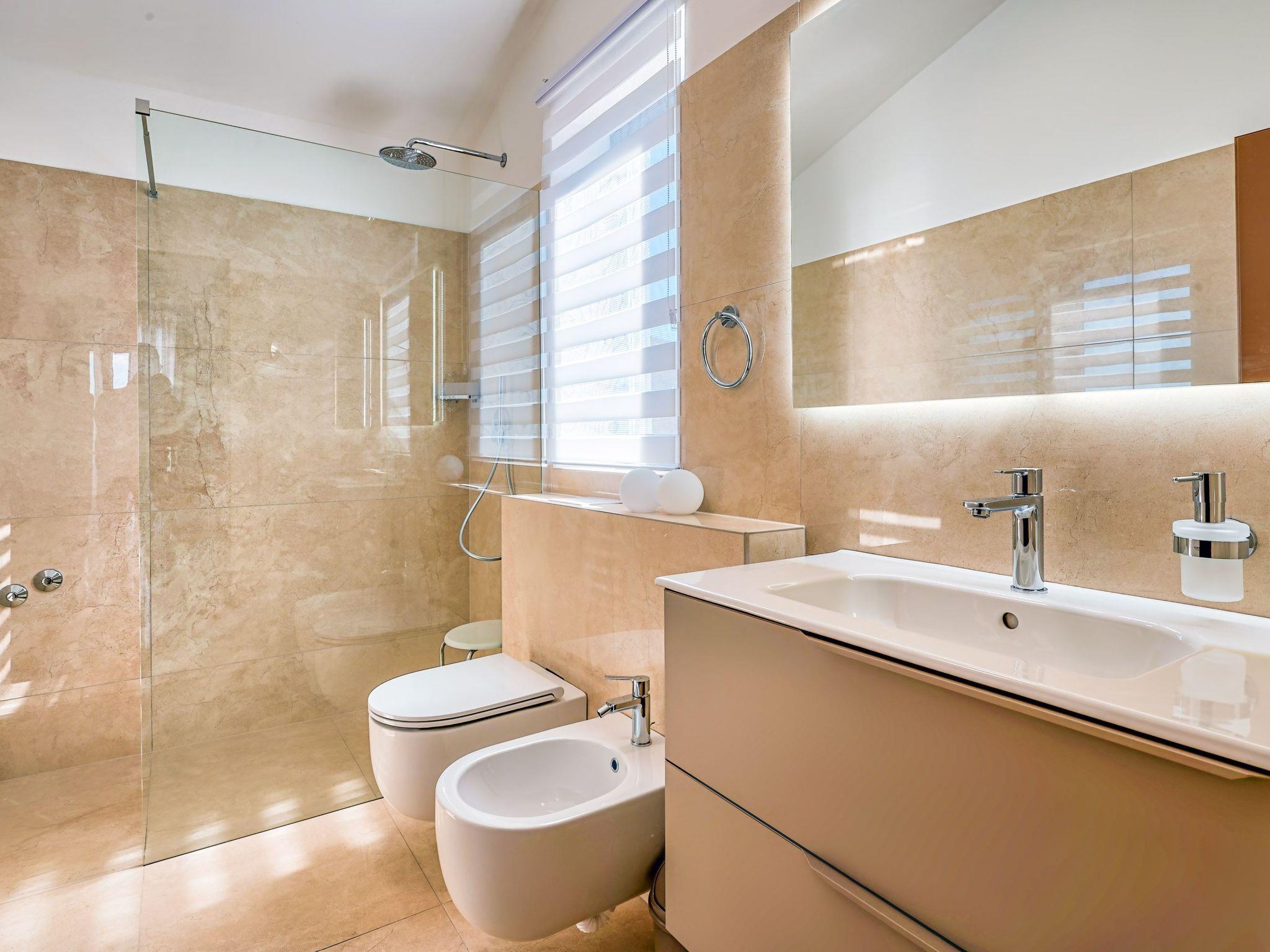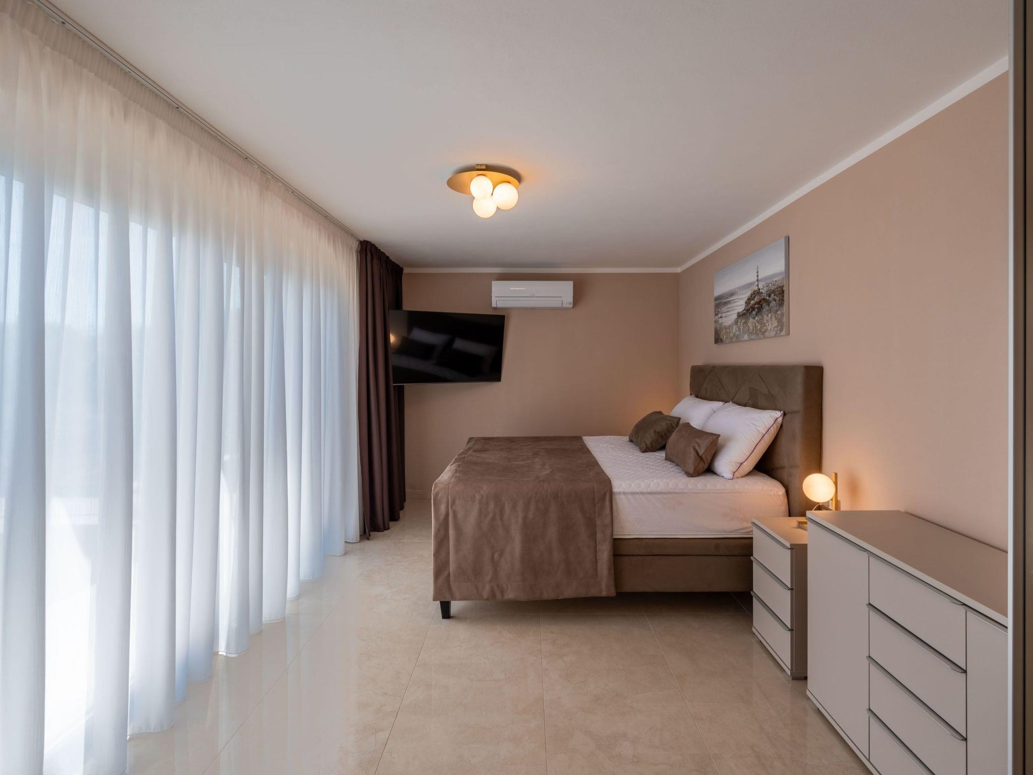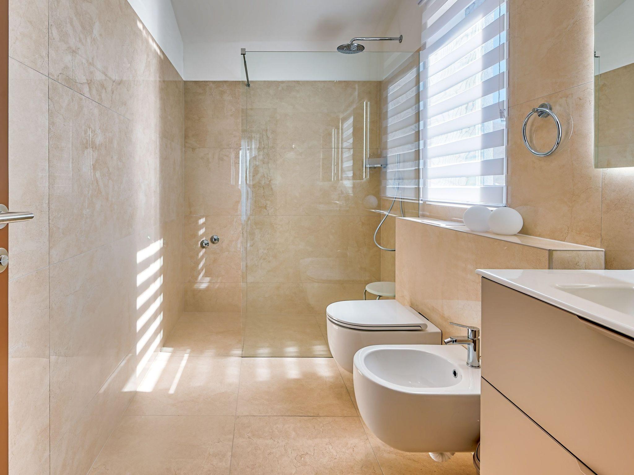 Villa Astrid has the capacity for 11 people: 2 double bedrooms on the 1st floor, 1 double room on the ground floor, foldable couch and armchair in the living room and additional double bedroom in a separate unit. All bedrooms are comfortable and modern, equipped with king size beds (200 x 210 cm), air conditionings and large screen TVs. Rooms on the first floor share a joint spaceous terrace, from which a beautiful view to the whole countryside can be enjoyed.