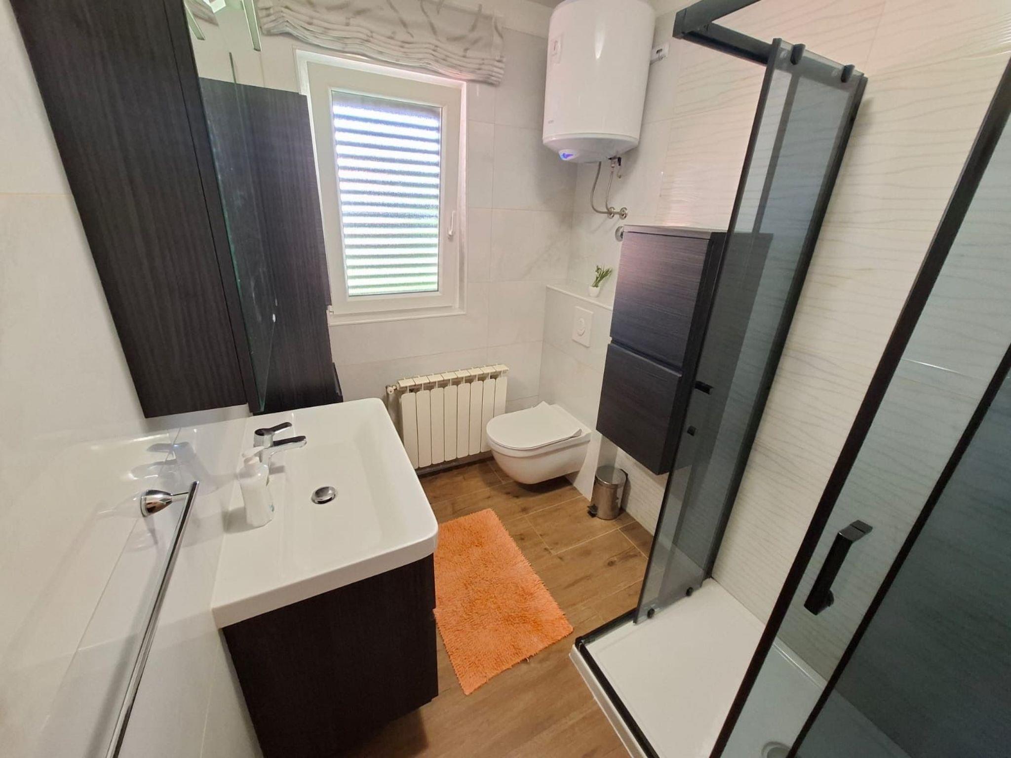 The flat has 3 tastefully decorated bedrooms and 2 bathrooms. The living area has a pull-out sofa bed that can accommodate a further 2 people. The living room is decorated in a classic Croatian style and has a high-quality real wood floor. The living room leads directly to the very well-equipped solid wood kitchen with a large dining table and plenty of space for cooking.