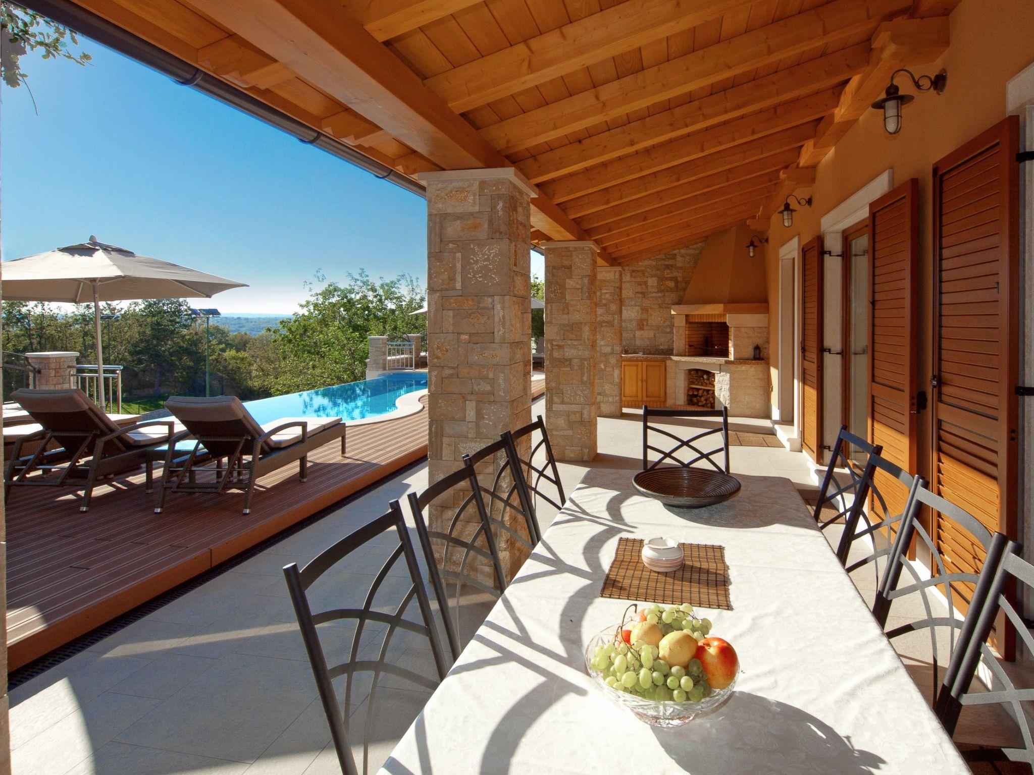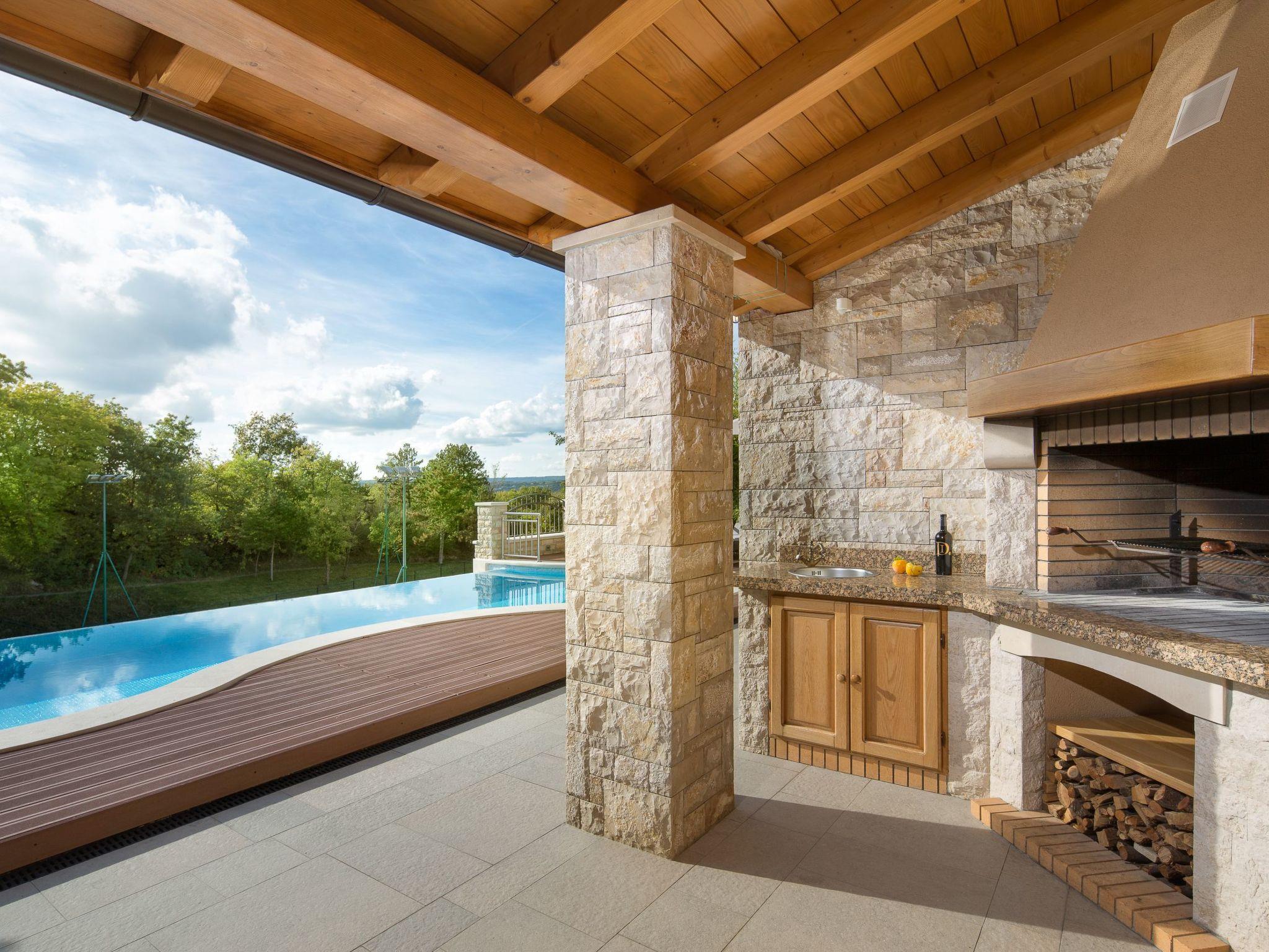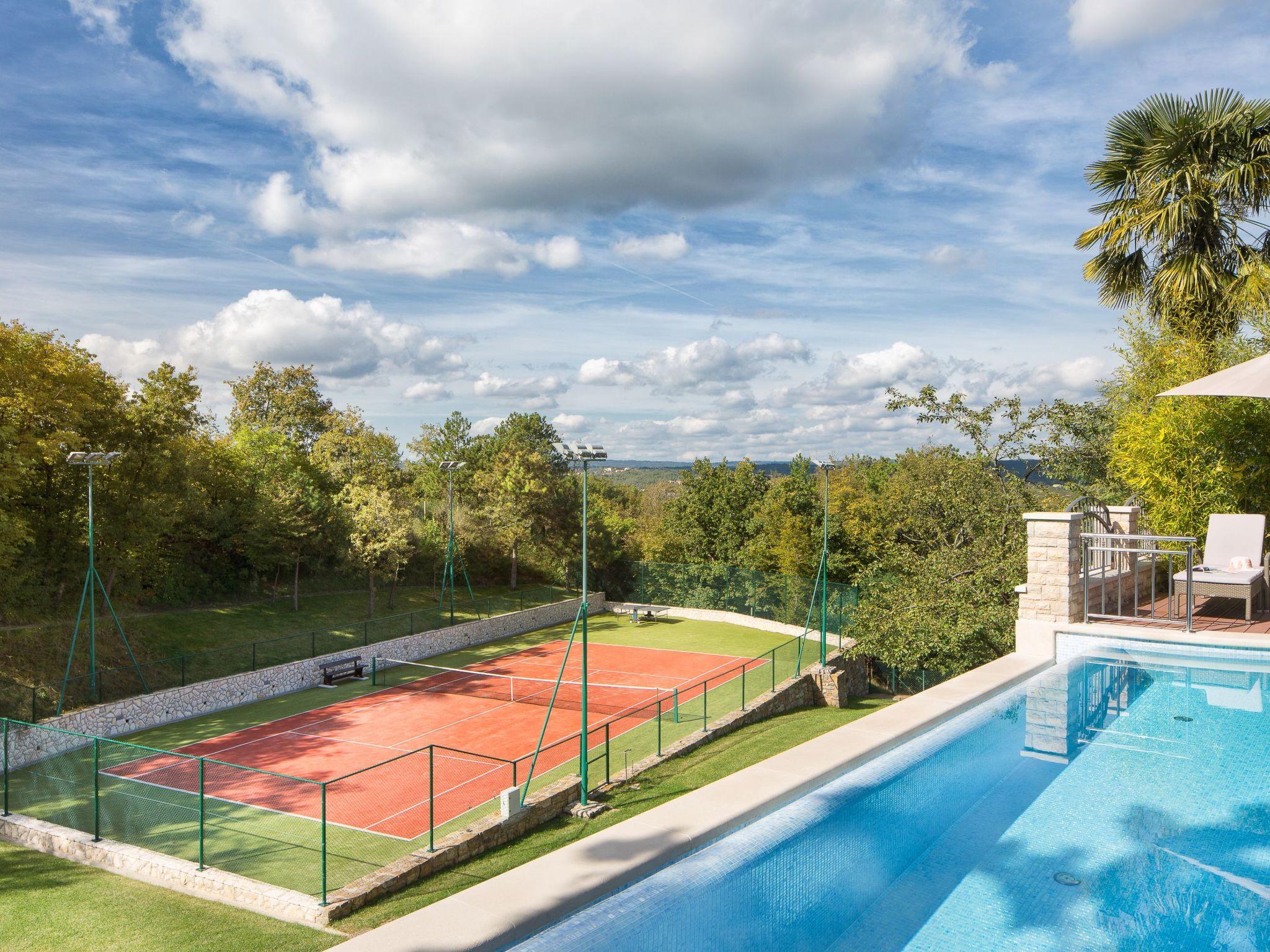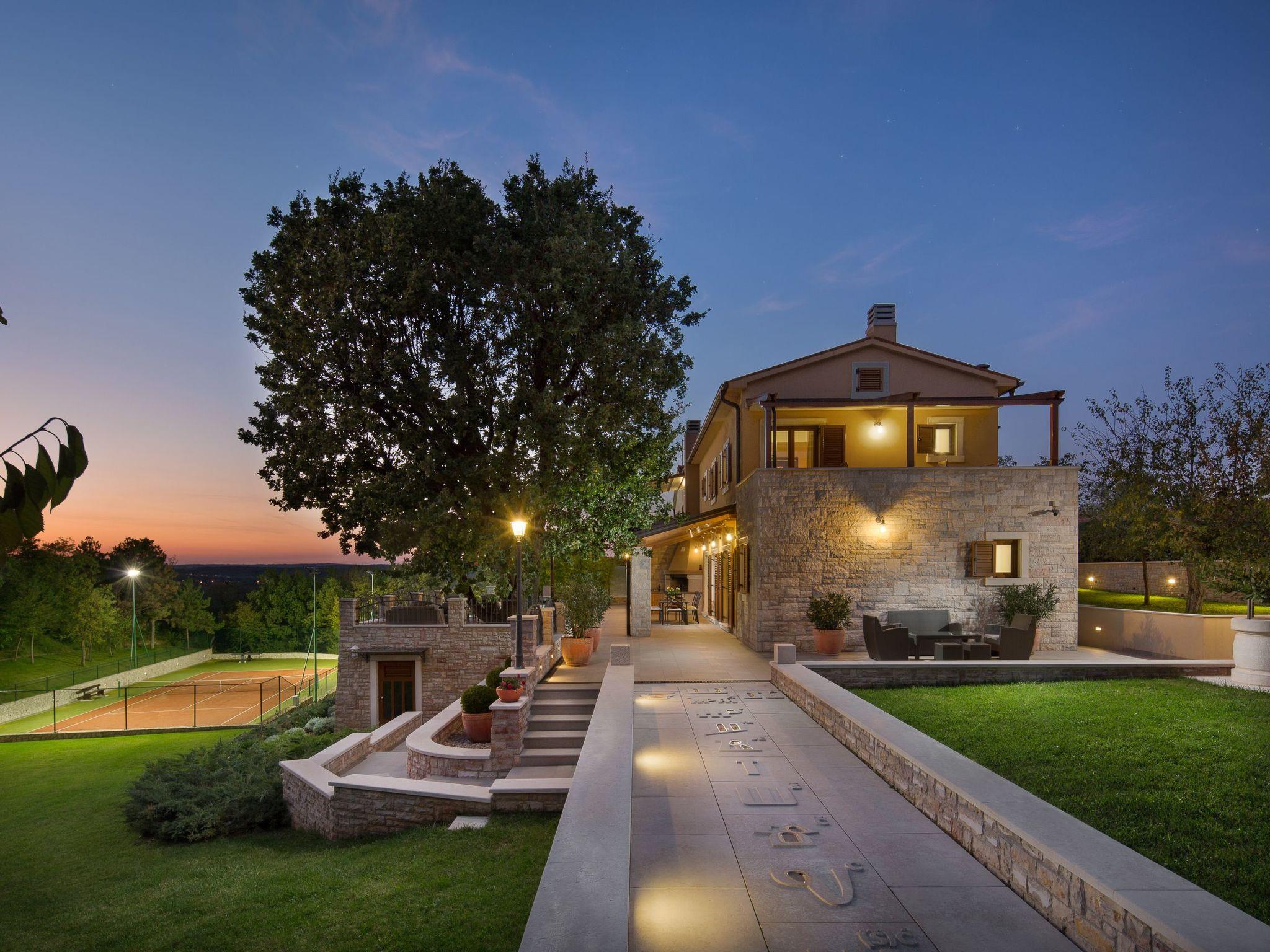 This imposing holiday villa is just outside Kapelica, nestled into the lush landscape along the sunny south-east coast of the Istrian peninsula.Luxury holiday villa with a private pool that can be illuminated at night, a sunny terrace with a traditional stone grill, its own tennis court and a 7-hole golf course in the enclosed and extensive garden area