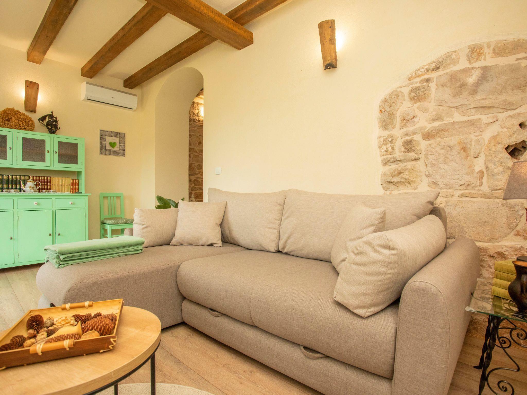 Step inside Villa Milka to find a lovingly restored century-old stone house that exudes traditional Istrian charm. With 134 square meters of space spread over two floors, the villa comfortably accommodates 4 + 2 guests. The interior boasts two cozy double bedrooms and a sizable sofa bed in the living room for additional guests. The ground floor is home to a traditional, fully equipped kitchen, a dining room, and a living room, as well as a bathroom, while the first floor houses the bedrooms and a balcony. The villa's dedication to preserving its historical integrity is evident in its faithful reconstruction, including the original roof and thick stone walls dating back to the 19th century, complemented by numerous original and traditional details.
