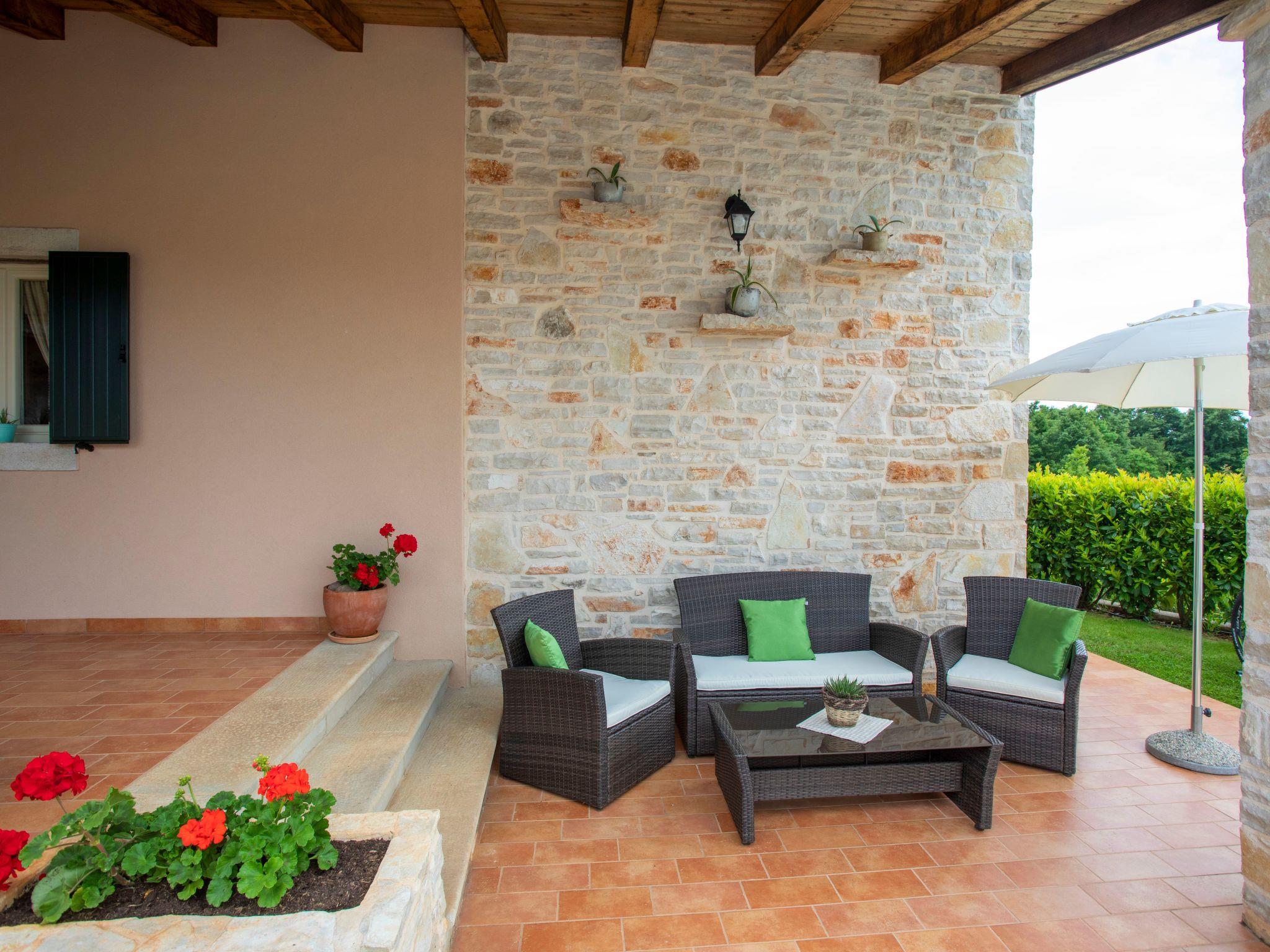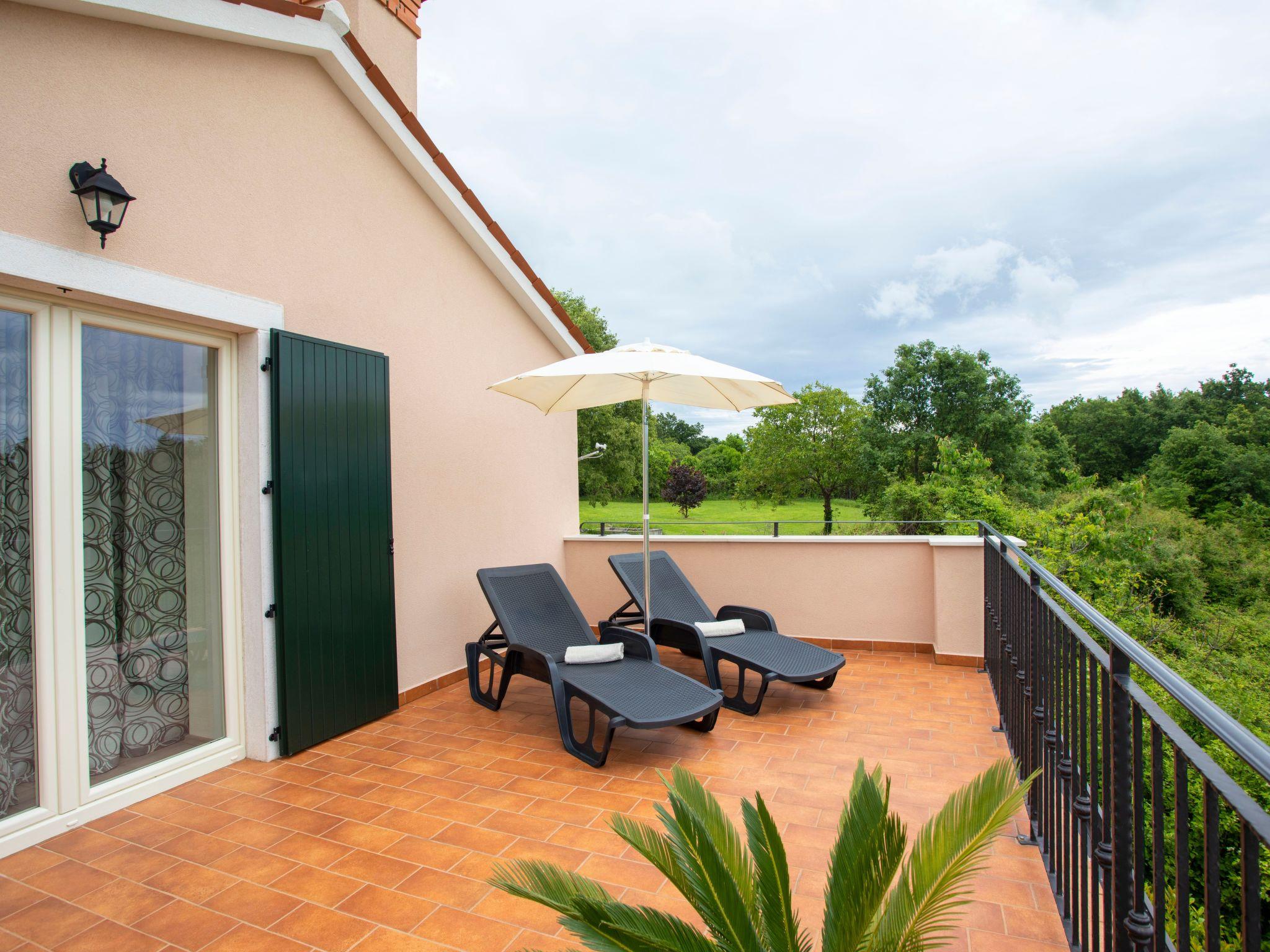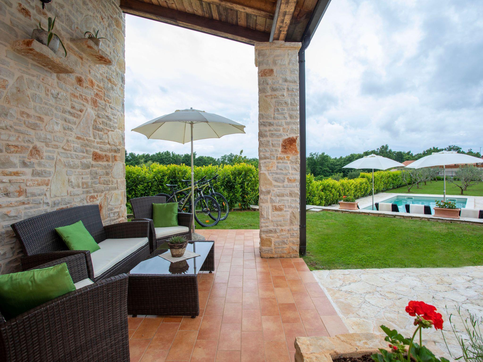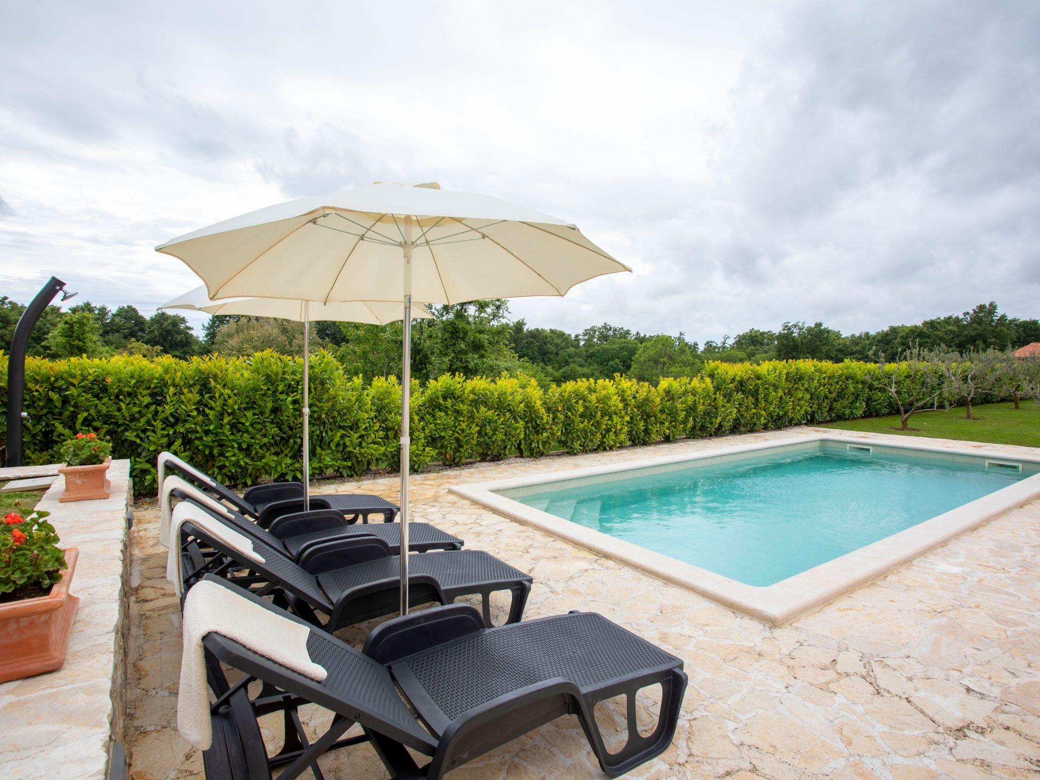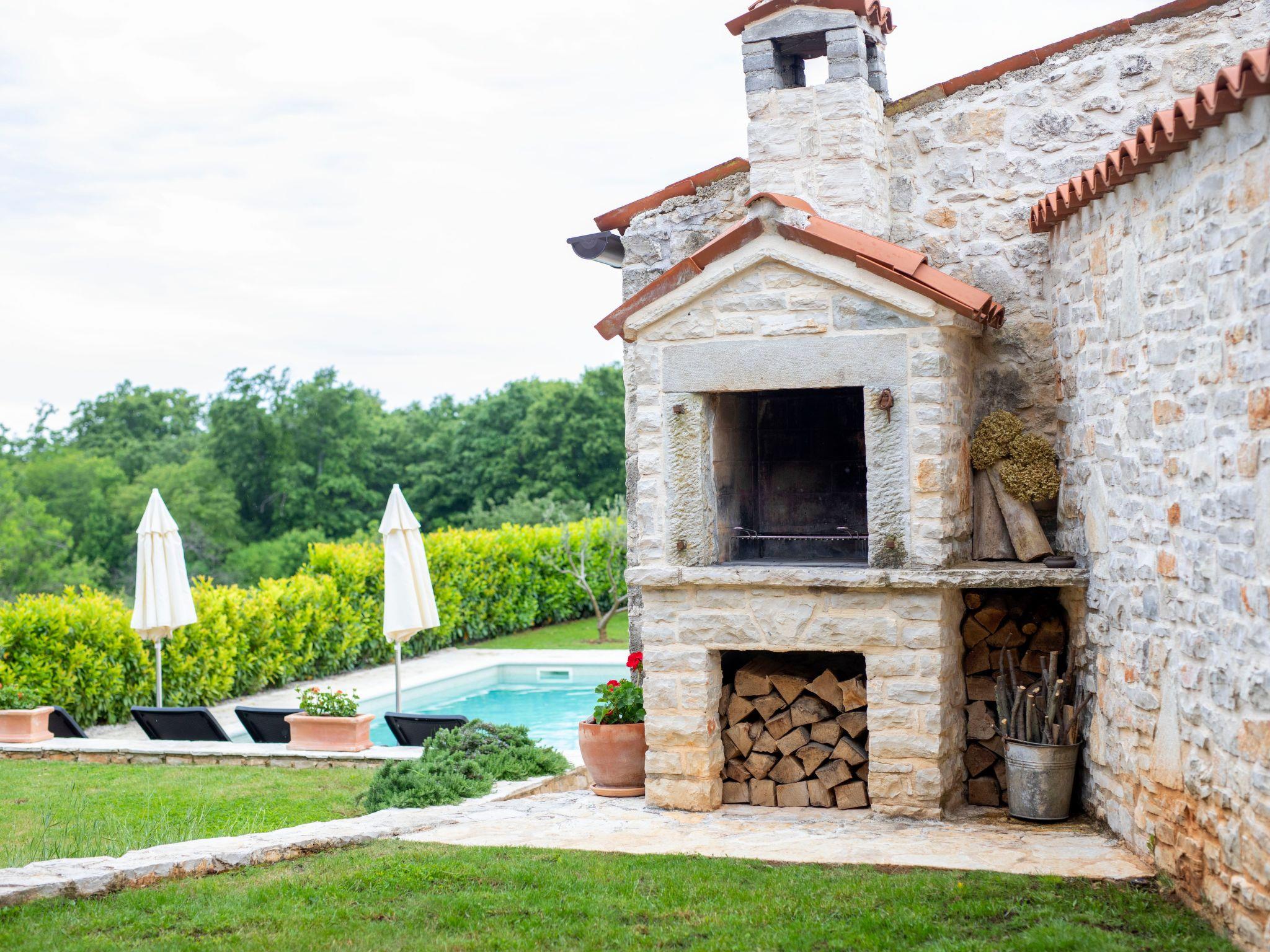 The exterior of Villa Milka is equally captivating, featuring a covered terrace with a dining area and barbecue, perfect for savoring traditional dishes accompanied by a glass of chilled Istrian Malvazija. The villa is ideally positioned next to a small olive grove, allowing guests to enjoy long walks in the vineyards and nearby forest, cycling, or simply relaxing and absorbing the beautiful views from the balcony, terrace, or poolside with a refreshing glass of wine. The swimming pool itself offers a serene oasis to cool off and unwind under the Istrian sun.