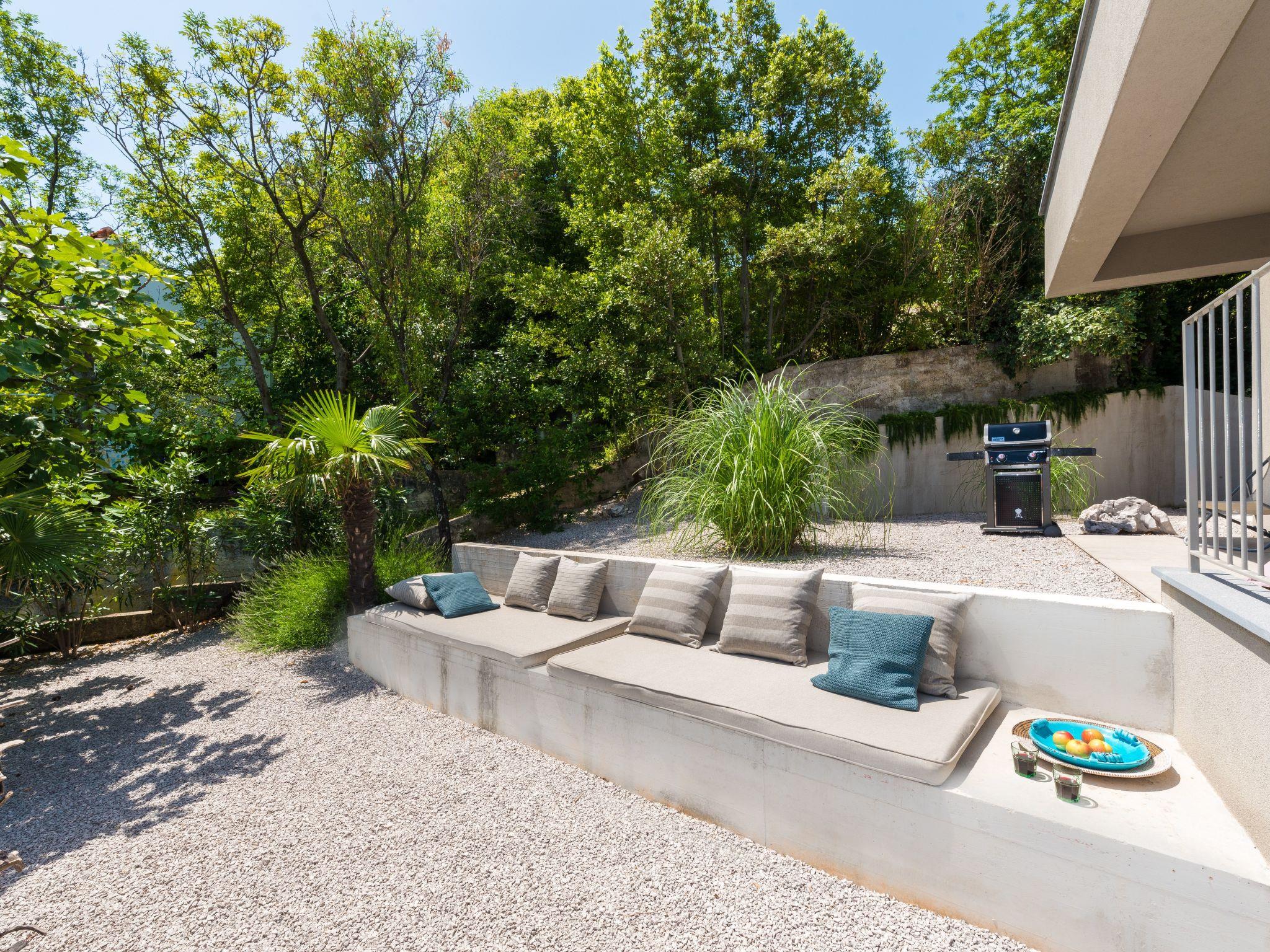 Beautiful, spacious luxury ground-floor apartment of a house newly built in 2017 in the middle of the small, Mediterranean fishing village "Sveta Marina". The region is known for its extremely clean sea water and naturalness. You will find the first swimming opportunity only 2 minutes away on foot. The apartment is very comfortable, equipped with modern, high quality interior and kitchen and offers a breathtaking view of the open sea and the quiet bay. It has a large living / dining area and 2 separate bedrooms, each with its own spacious bathroom. Private parking spaces available, a buoy for mooring boats can be provided depending on availability and prior agreement. The equipment and the location of this apartment certainly make it one of the top offers in this region. SmartTV, WiFi, SAT