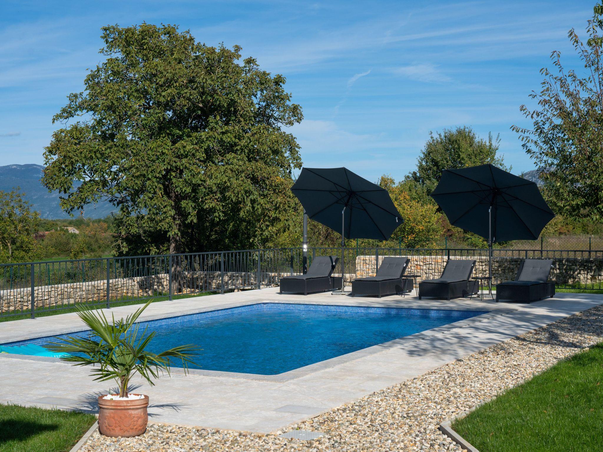 The property offers picturesque views of the mountain Ucka and surrounding countryside, enhancing the relaxing ambiance.