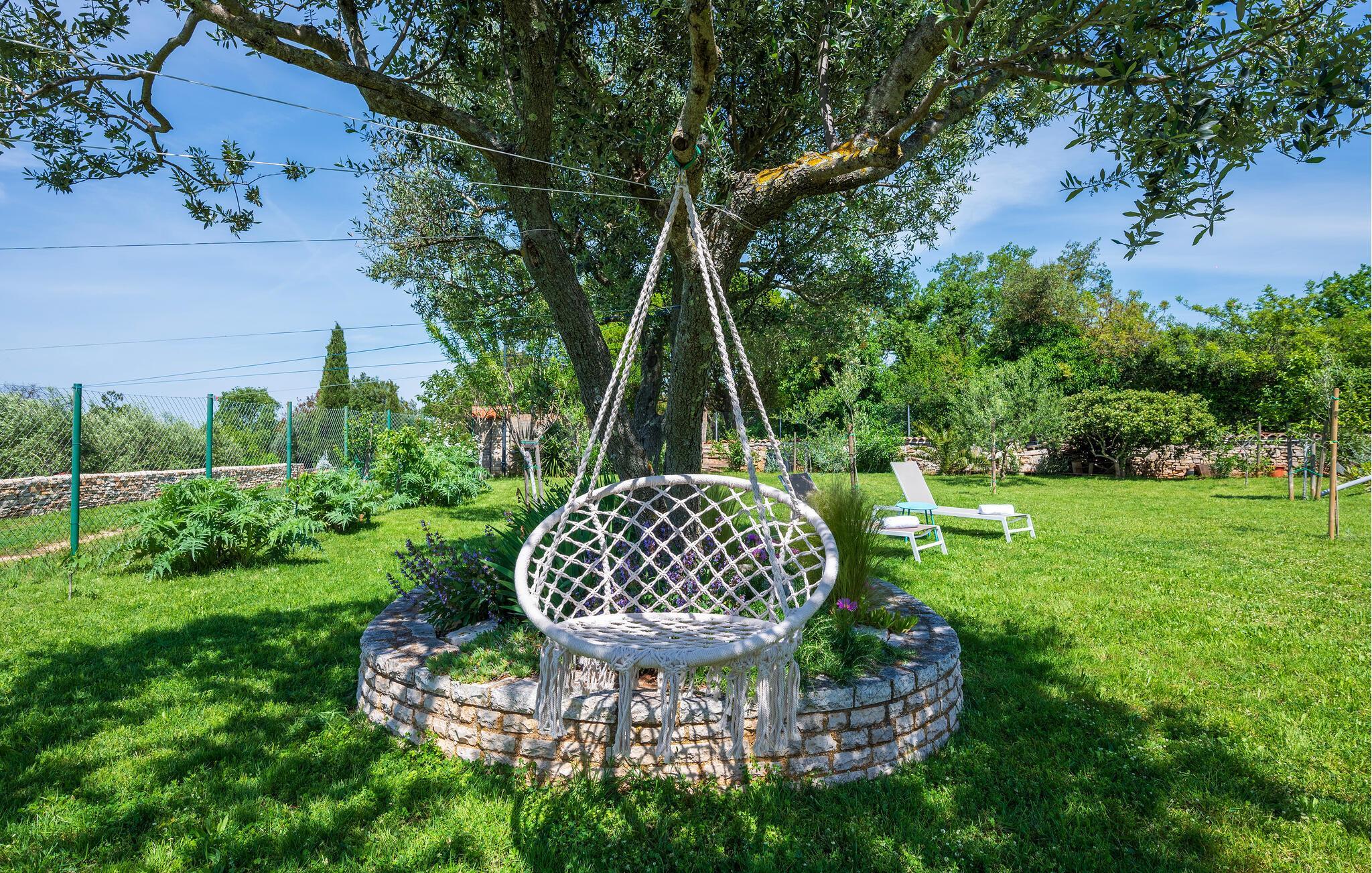 På den naturskjønne tomten er det plass til både lek og avslapning. Nyt den første kaffen eller de lune sommerkveldene med kald drikke på terrassen og sol deg i en komfortabel solstol.