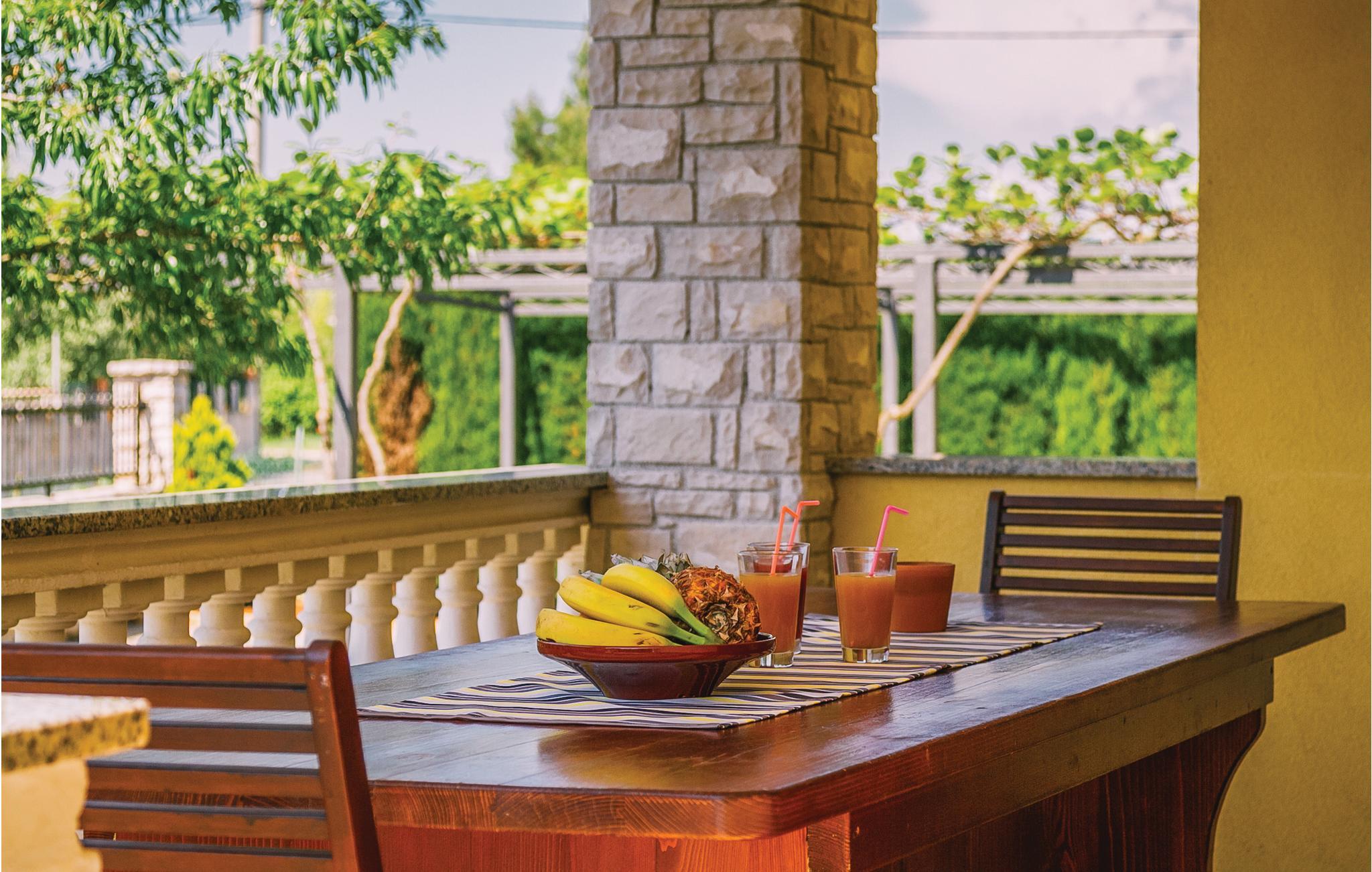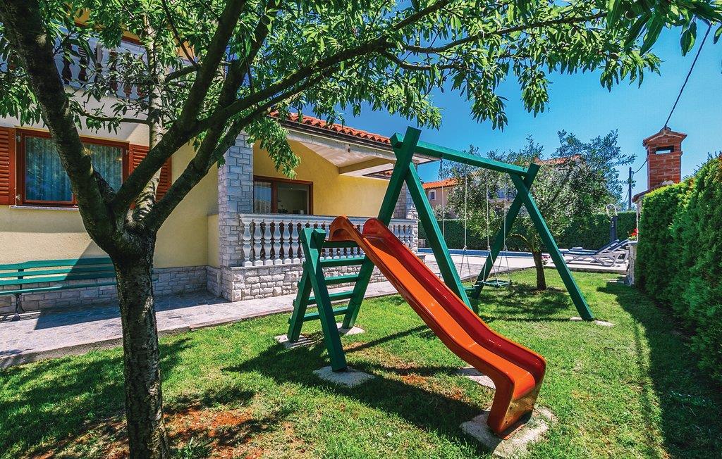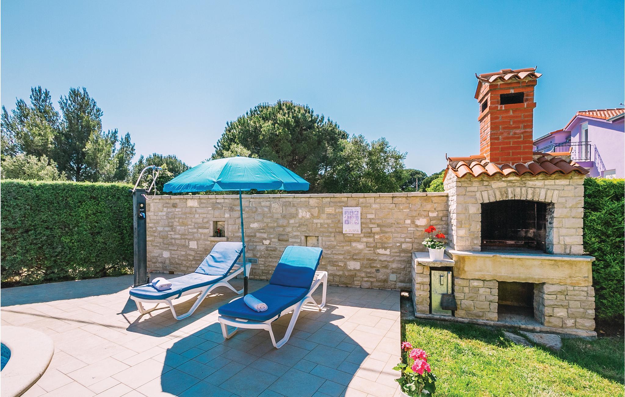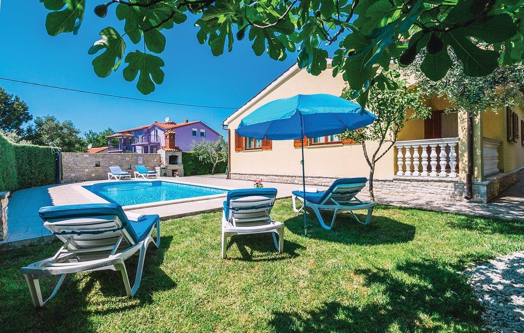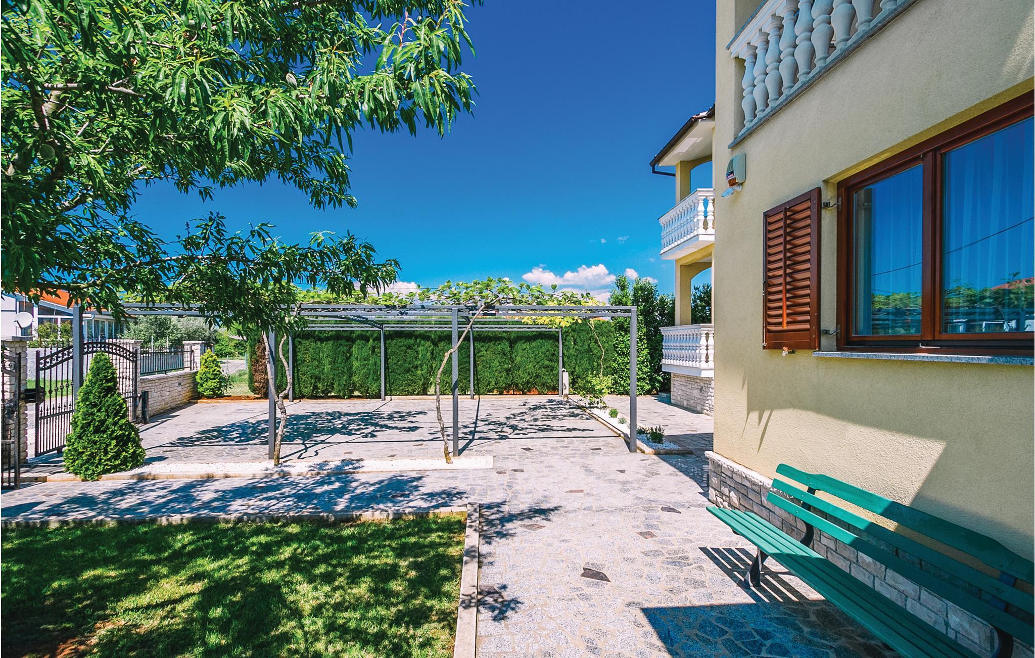 Moderne feriehus med fredelig beliggenhet i Valbandon, en liten landsby noen få minutter fra vakre strender. Feriehuset er møblert med funksjonelle møbler og består av 4 enheter forbundet med en intern trapp. Det garanterer også privatliv for flere familier som ferierer sammen. Hagen har en velholdt plen som er egnet for barna å løpe rundt. I den nærliggende fiskerlandsbyen Fazana finner du en vakker promenade med små restauranter og iskrembarer. Fra Fazana går det daglige utfluktsbåter til presidentøyene Brijuni, et populært rekreasjonsområde. Brijuni nasjonalpark tilbyr også gode golfbaner der golfelskere vil få pengene sine verdt. Bare noen få minutters kjøretur unna ligger Pula, hvor du kan besøke mange interessante monumenter fra romertiden, for eksempel berømte amfiteatre. Amfiteateret er stedet hvor det hver sommer arrangeres en filmfestival og mange konserter.
