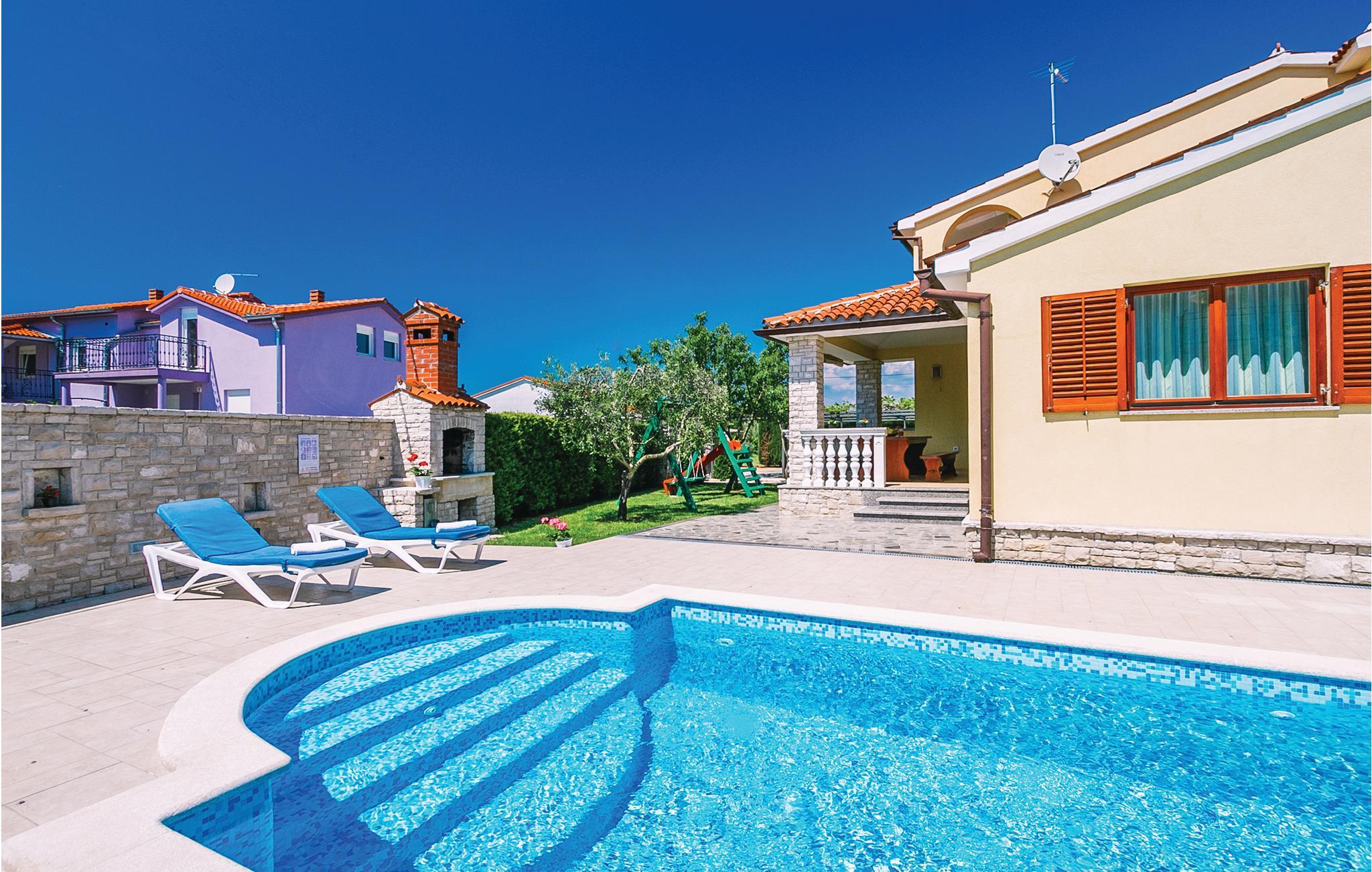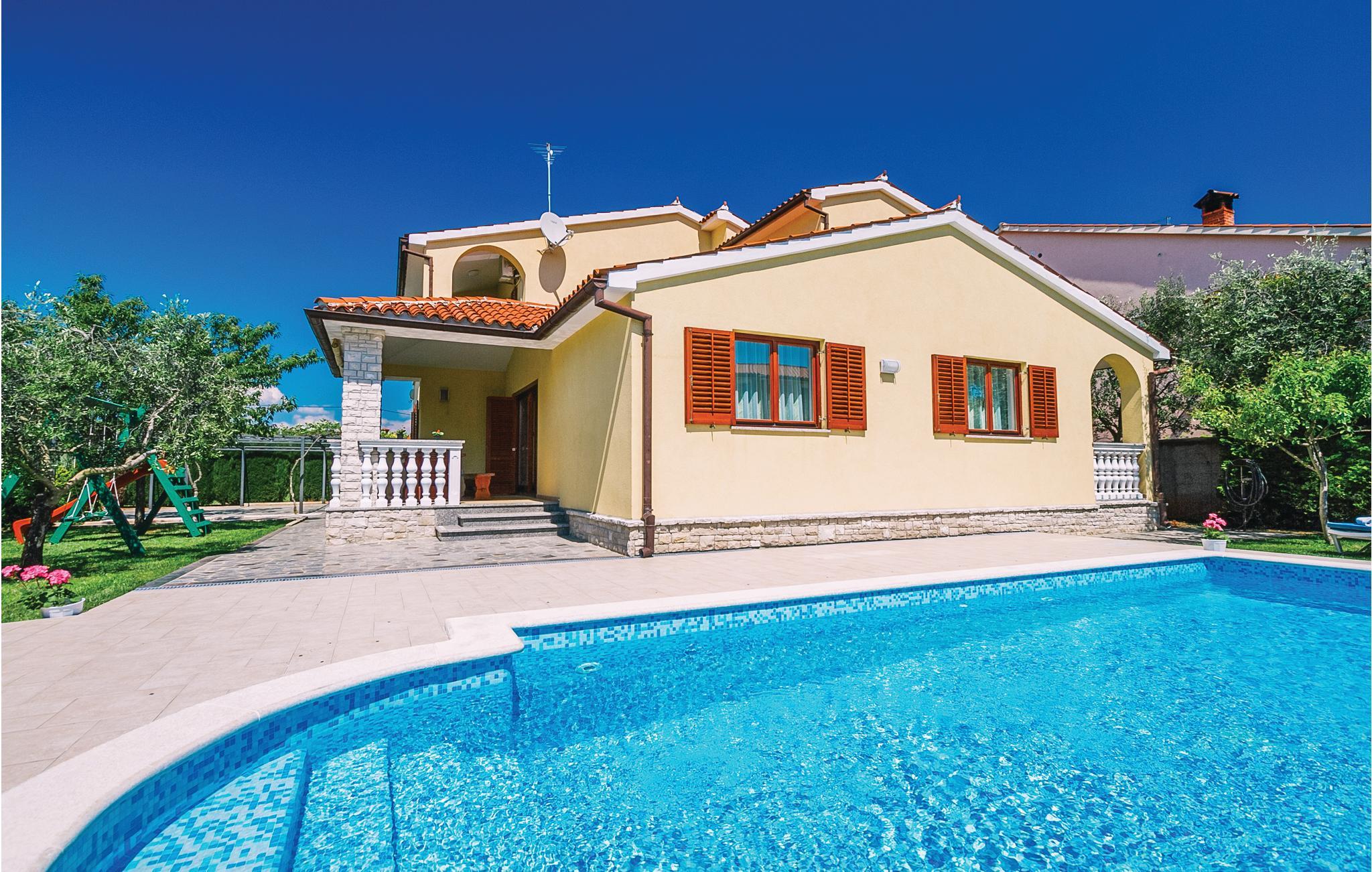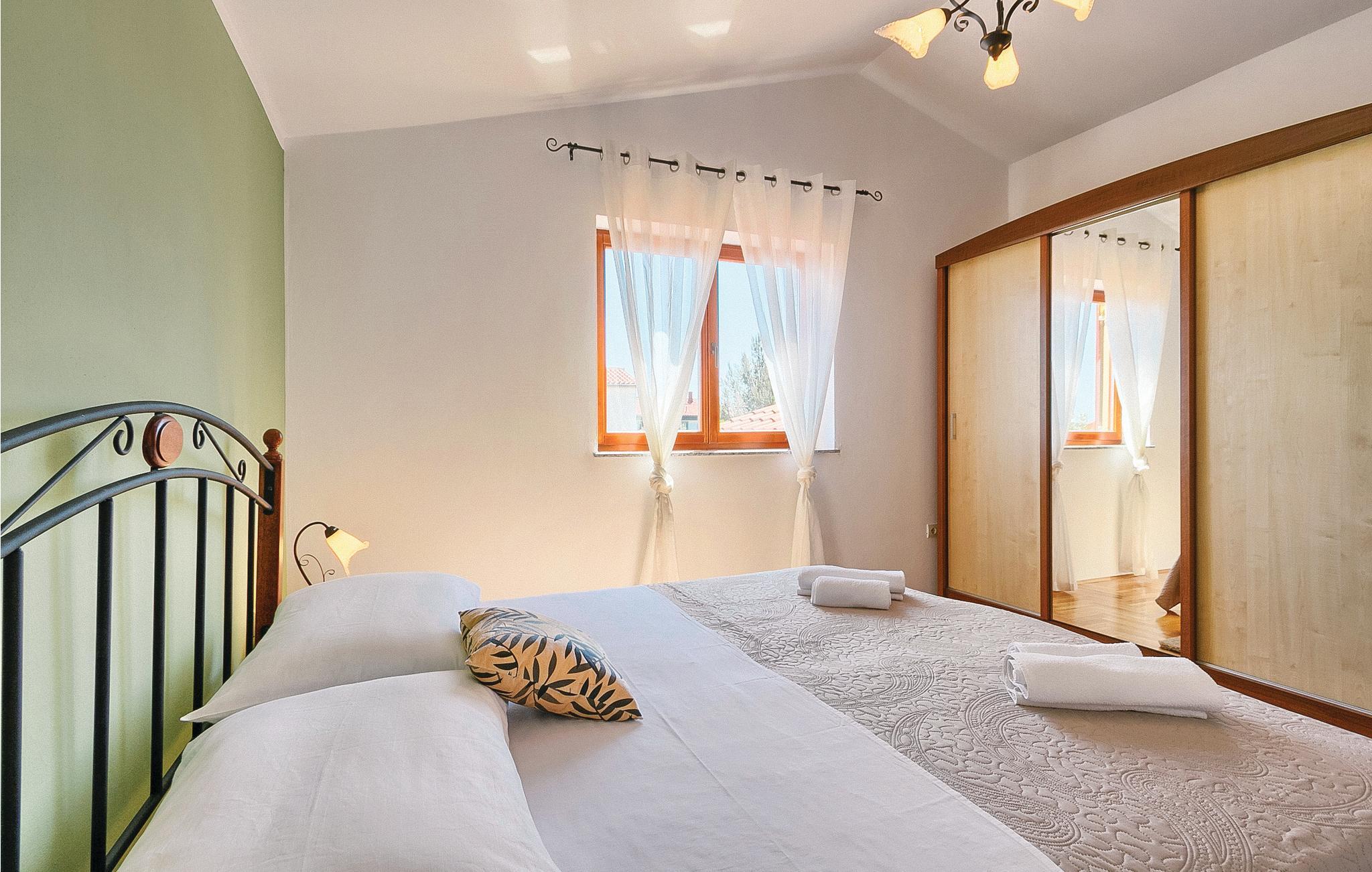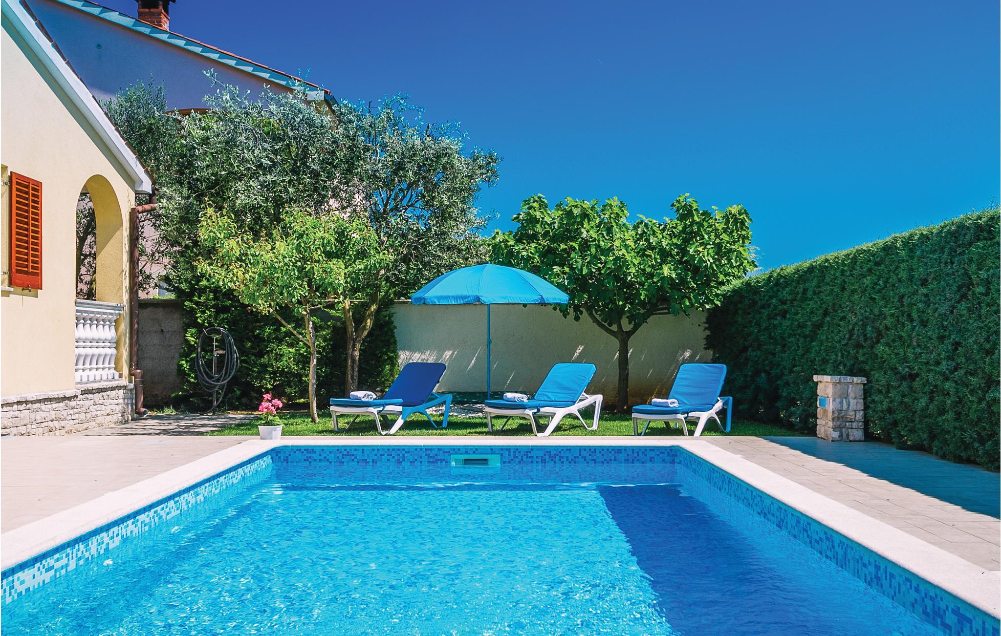 Moderne feriehus med fredelig beliggenhet i Valbandon, en liten landsby noen få minutter fra vakre strender. Feriehuset er møblert med funksjonelle møbler og består av 4 enheter forbundet med en intern trapp. Det garanterer også privatliv for flere familier som ferierer sammen. Hagen har en velholdt plen som er egnet for barna å løpe rundt. I den nærliggende fiskerlandsbyen Fazana finner du en vakker promenade med små restauranter og iskrembarer. Fra Fazana går det daglige utfluktsbåter til presidentøyene Brijuni, et populært rekreasjonsområde. Brijuni nasjonalpark tilbyr også gode golfbaner der golfelskere vil få pengene sine verdt. Bare noen få minutters kjøretur unna ligger Pula, hvor du kan besøke mange interessante monumenter fra romertiden, for eksempel berømte amfiteatre. Amfiteateret er stedet hvor det hver sommer arrangeres en filmfestival og mange konserter.