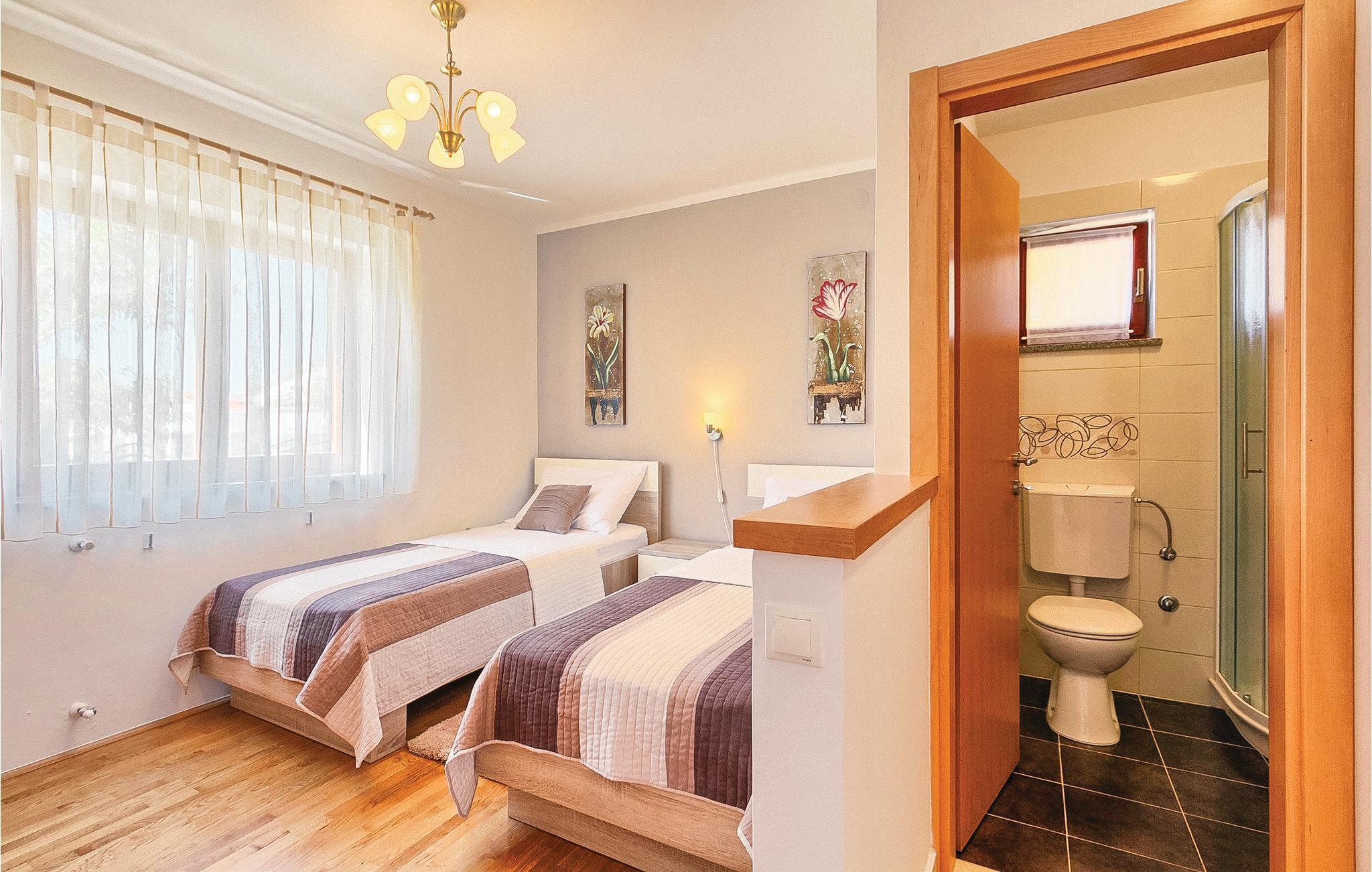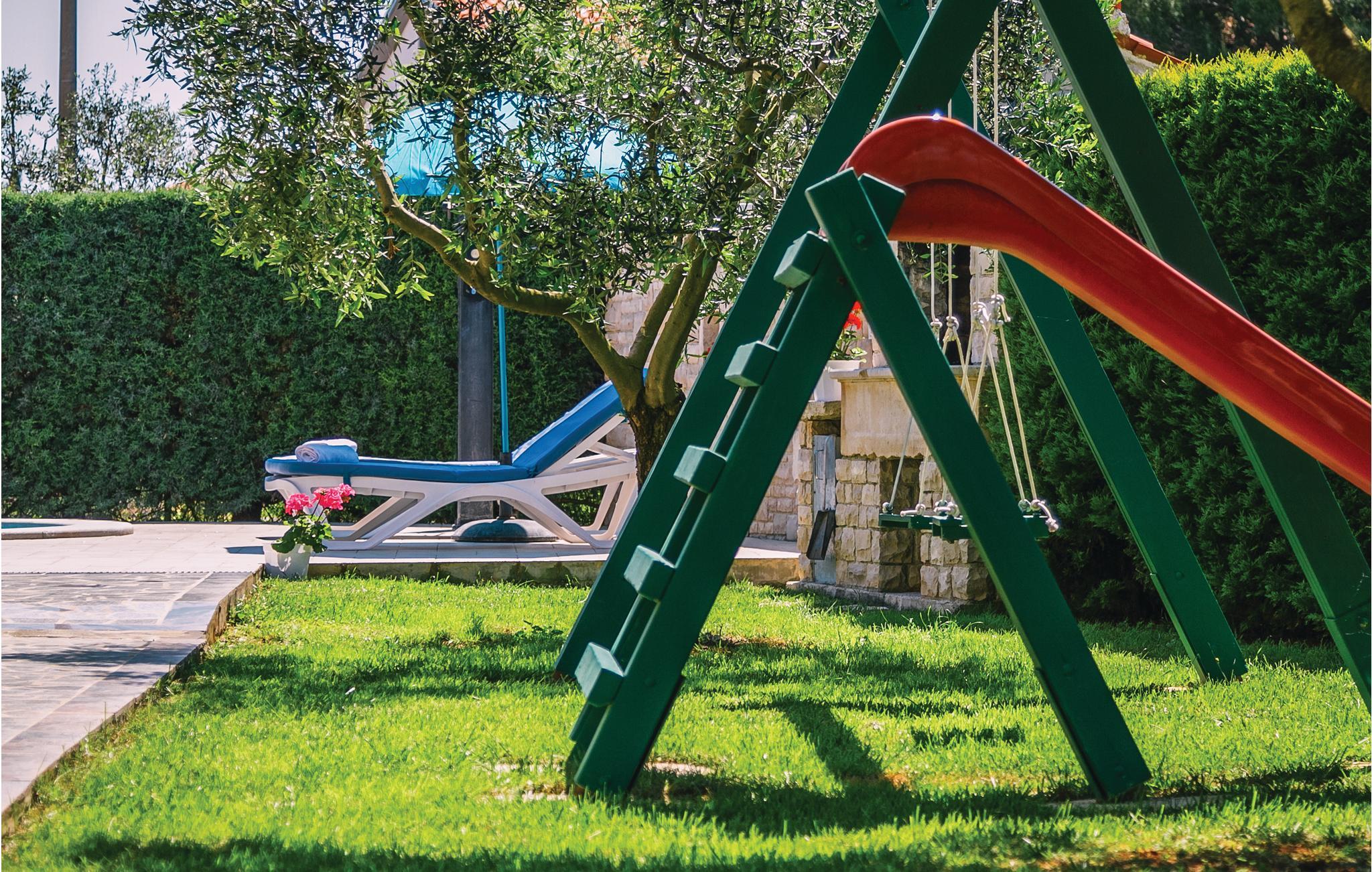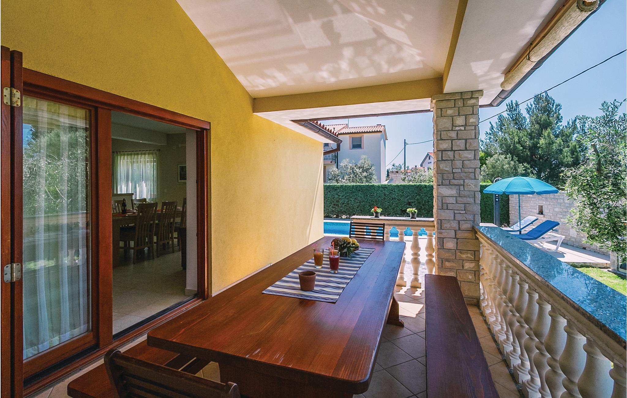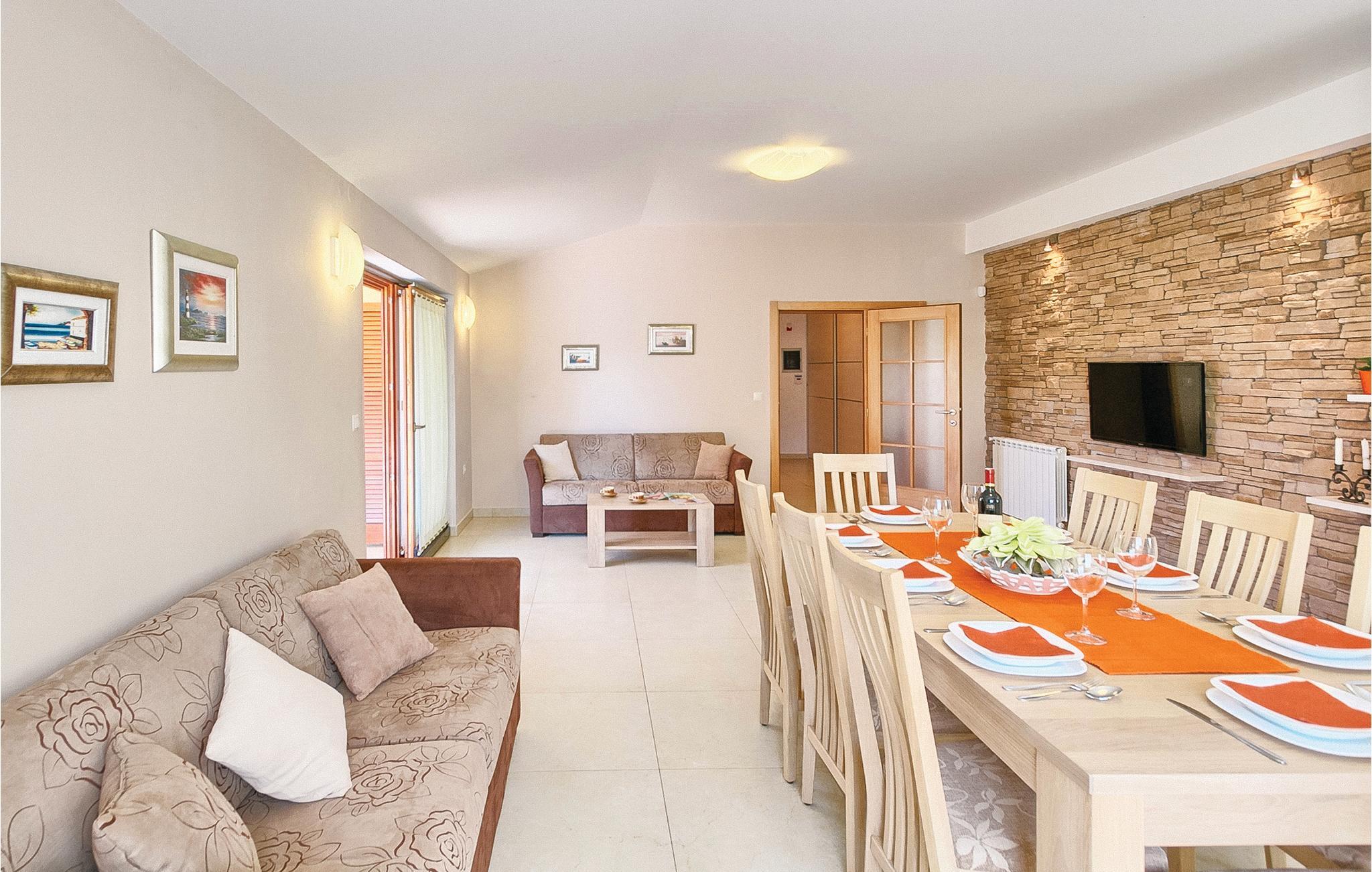 Moderne feriehus med fredelig beliggenhet i Valbandon, en liten landsby noen få minutter fra vakre strender. Feriehuset er møblert med funksjonelle møbler og består av 4 enheter forbundet med en intern trapp. Det garanterer også privatliv for flere familier som ferierer sammen. Hagen har en velholdt plen som er egnet for barna å løpe rundt. I den nærliggende fiskerlandsbyen Fazana finner du en vakker promenade med små restauranter og iskrembarer. Fra Fazana går det daglige utfluktsbåter til presidentøyene Brijuni, et populært rekreasjonsområde. Brijuni nasjonalpark tilbyr også gode golfbaner der golfelskere vil få pengene sine verdt. Bare noen få minutters kjøretur unna ligger Pula, hvor du kan besøke mange interessante monumenter fra romertiden, for eksempel berømte amfiteatre. Amfiteateret er stedet hvor det hver sommer arrangeres en filmfestival og mange konserter.