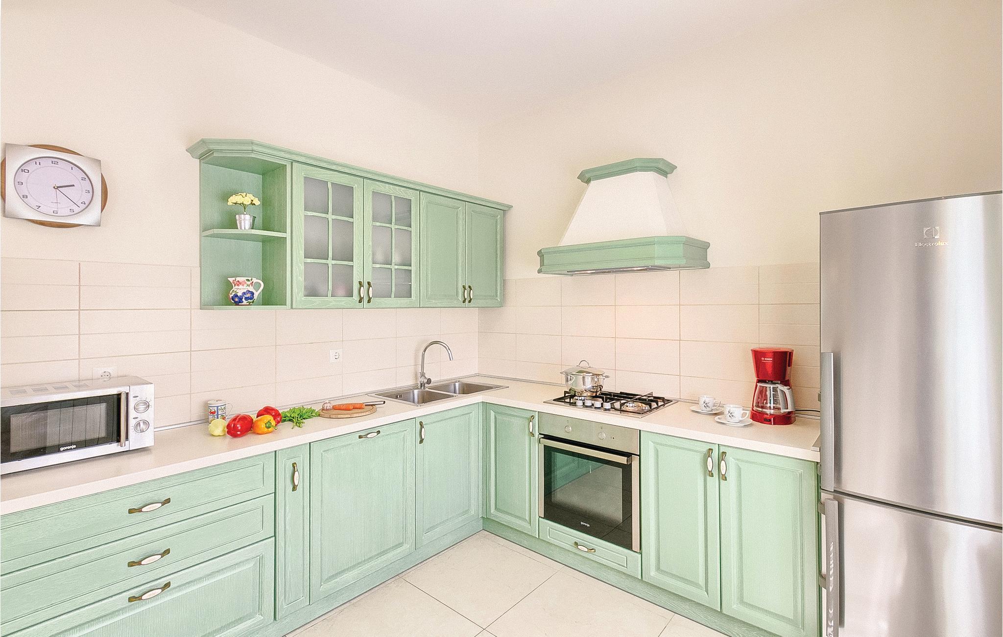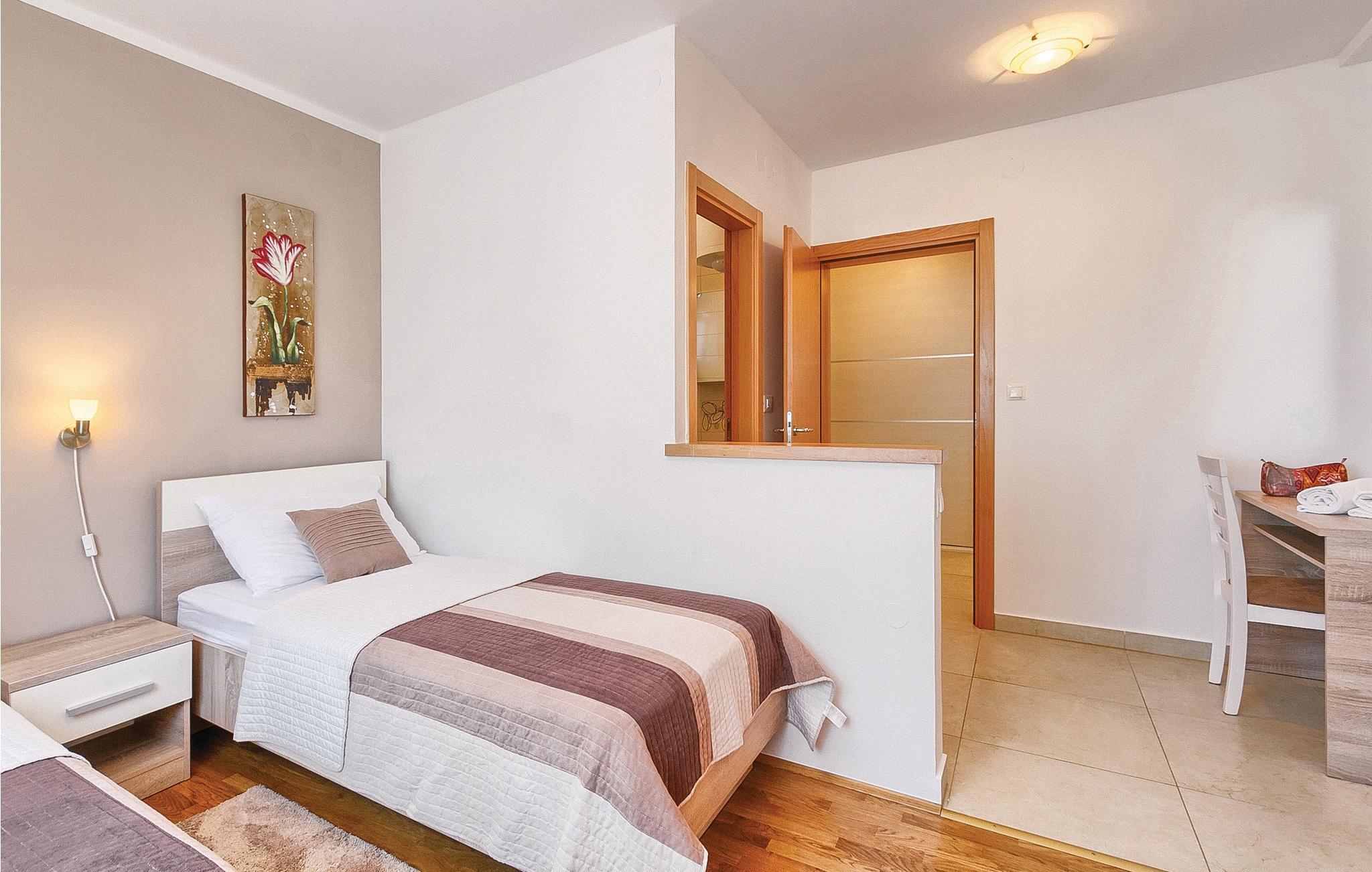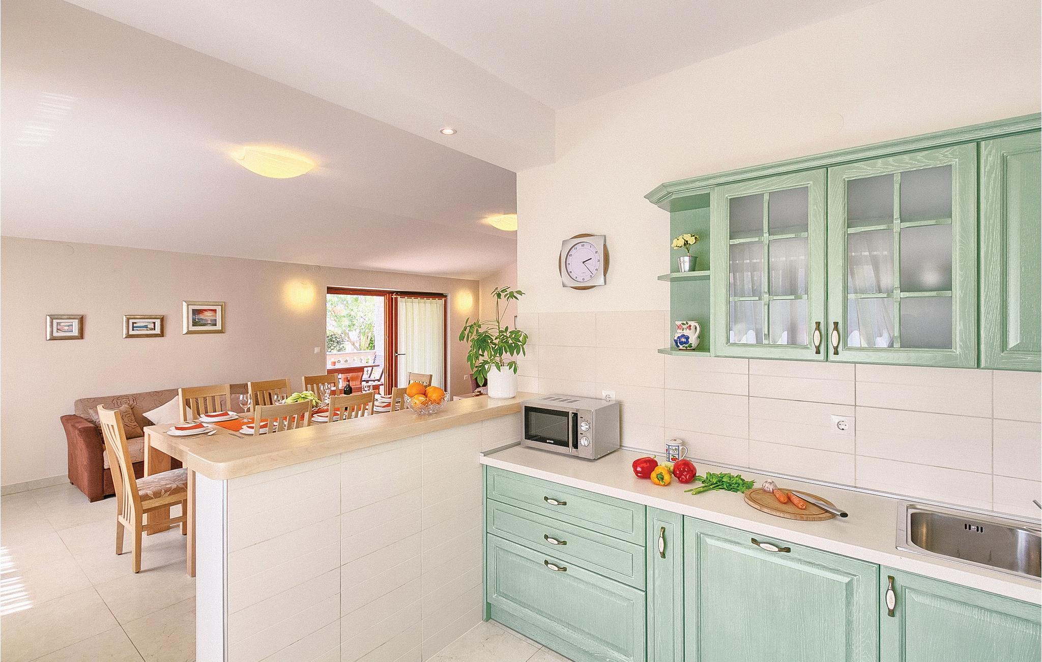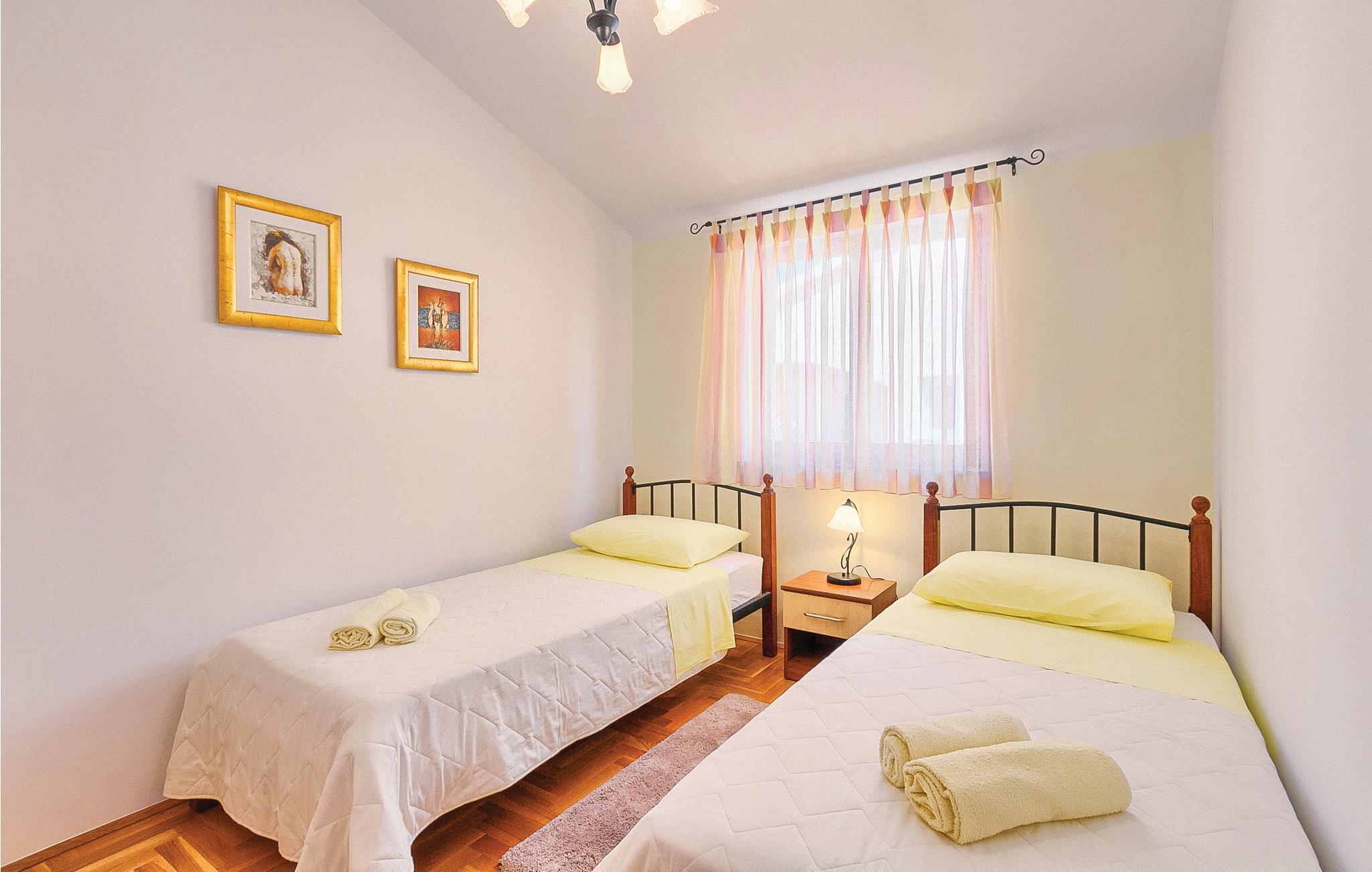 Moderne feriehus med fredelig beliggenhet i Valbandon, en liten landsby noen få minutter fra vakre strender. Feriehuset er møblert med funksjonelle møbler og består av 4 enheter forbundet med en intern trapp. Det garanterer også privatliv for flere familier som ferierer sammen. Hagen har en velholdt plen som er egnet for barna å løpe rundt. I den nærliggende fiskerlandsbyen Fazana finner du en vakker promenade med små restauranter og iskrembarer. Fra Fazana går det daglige utfluktsbåter til presidentøyene Brijuni, et populært rekreasjonsområde. Brijuni nasjonalpark tilbyr også gode golfbaner der golfelskere vil få pengene sine verdt. Bare noen få minutters kjøretur unna ligger Pula, hvor du kan besøke mange interessante monumenter fra romertiden, for eksempel berømte amfiteatre. Amfiteateret er stedet hvor det hver sommer arrangeres en filmfestival og mange konserter.