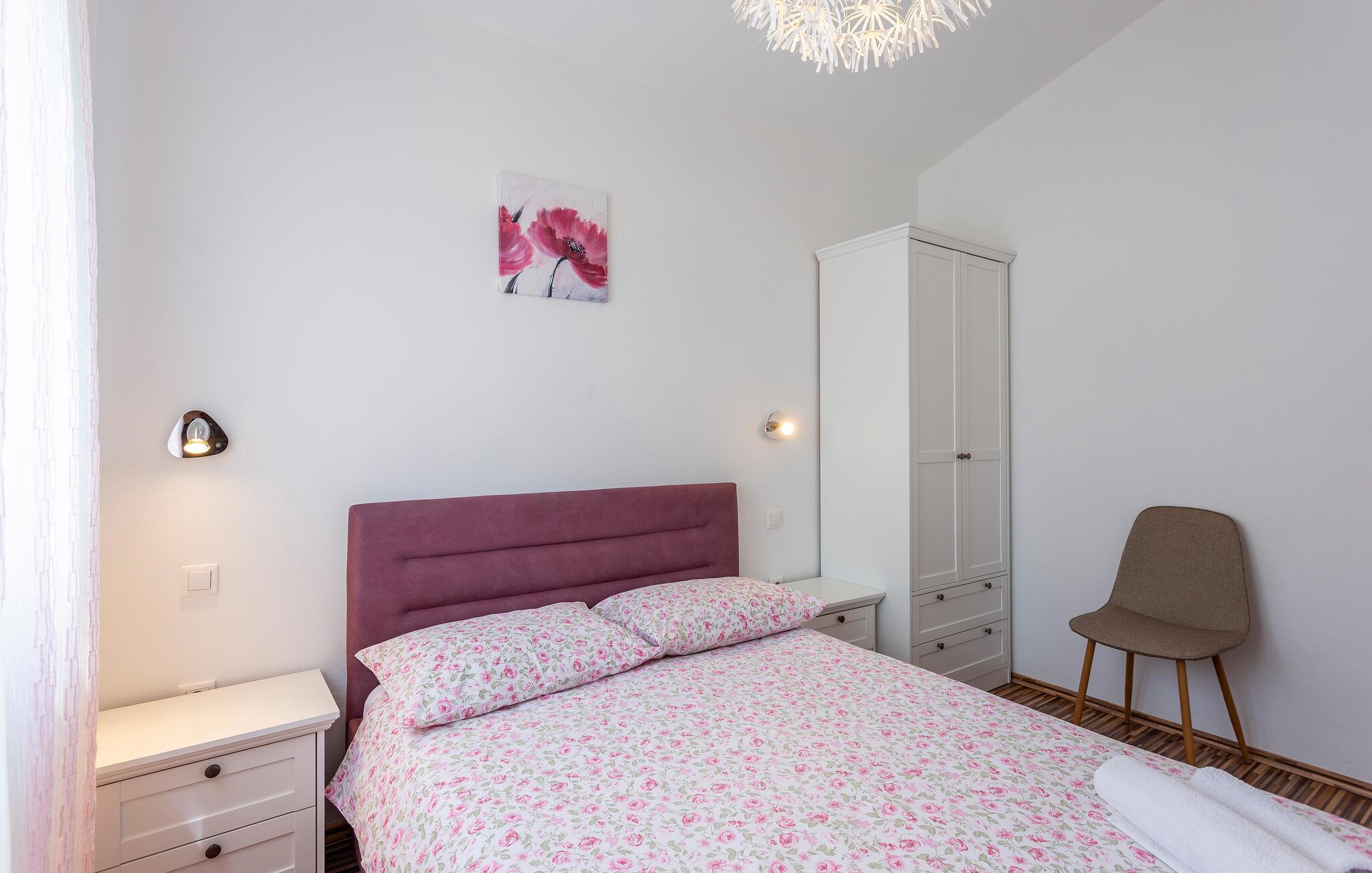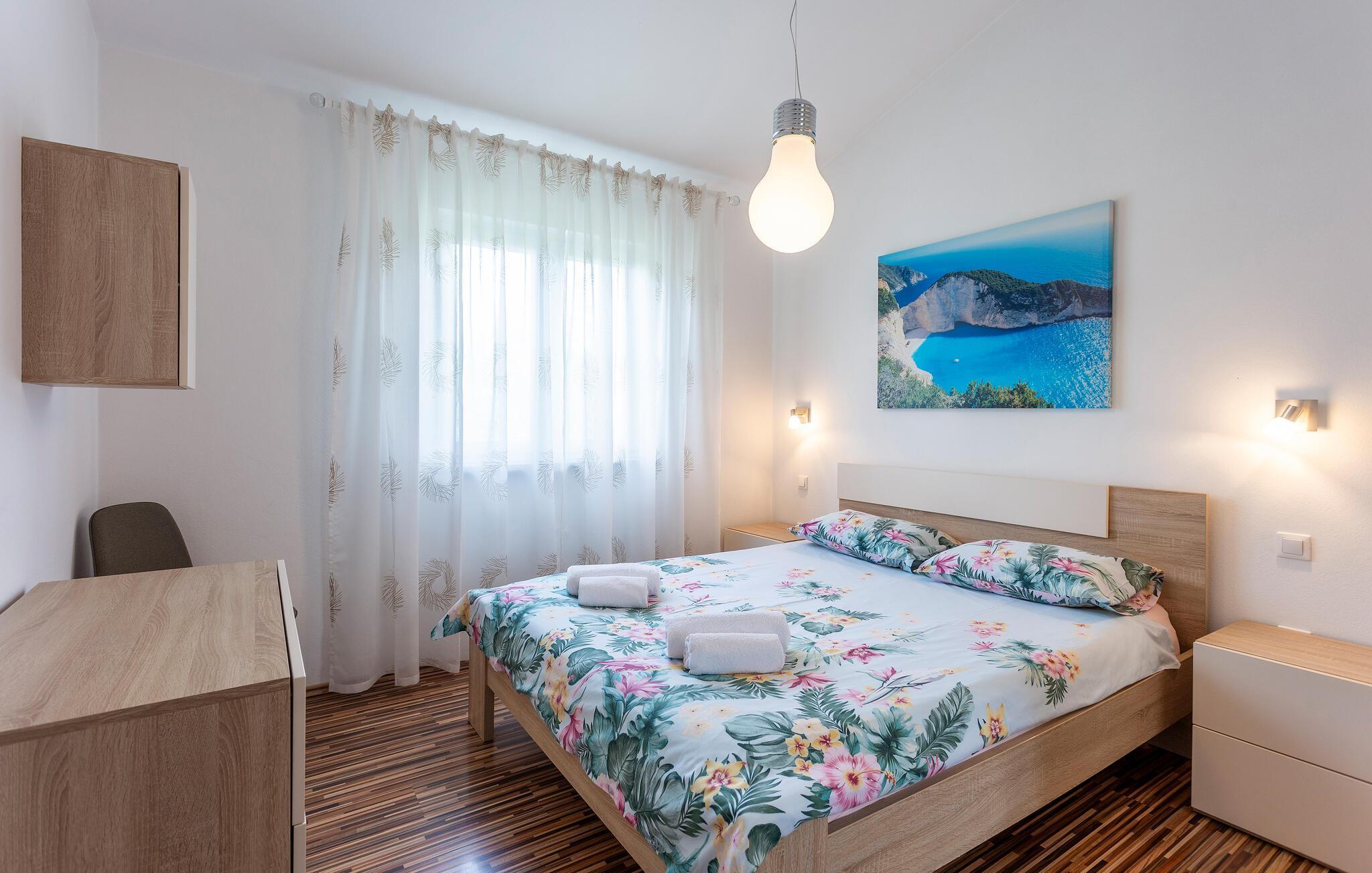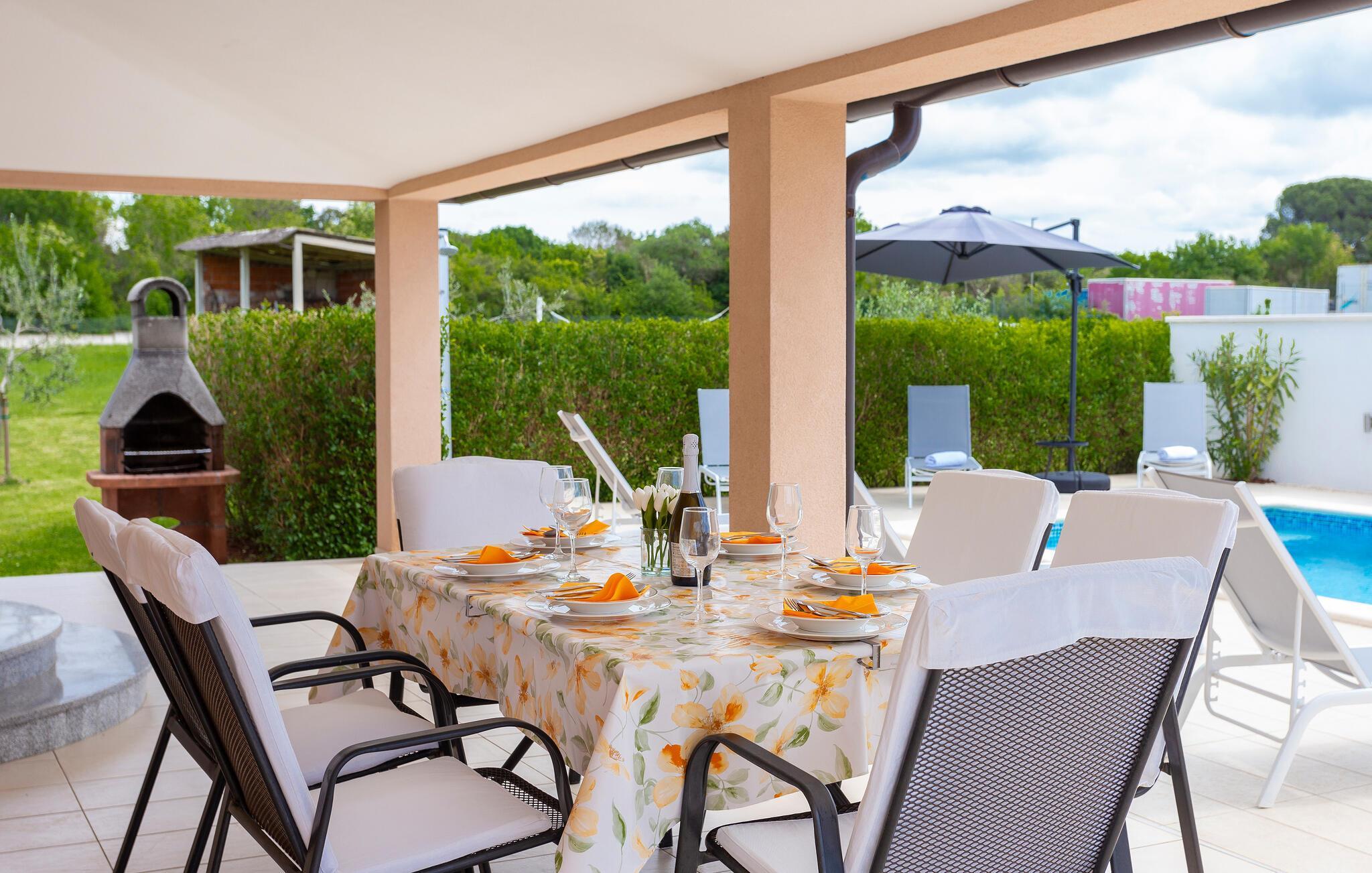 Tilbring ferien i denne vakre feriehusbungalowen omgitt av grøntområder. Det stilfullt møblerte oppholdsrommet har klimaanlegg, kjøkkenet er fullt utstyrt og med tre soverom har det den nødvendige komforten for seks personer. Opplev sommerfølelsen på den store overbygde terrassen med grill og nyt de lune sommerkveldene. Besøk de vakre badestrendene i nærheten med krystallklart hav. Ta båtturer til nasjonalparken på Brijuni-øyene, som vil fortrylle deg med sin rike flora. Tilgang til huset (ca. 100 m) er ikke asfaltert.
