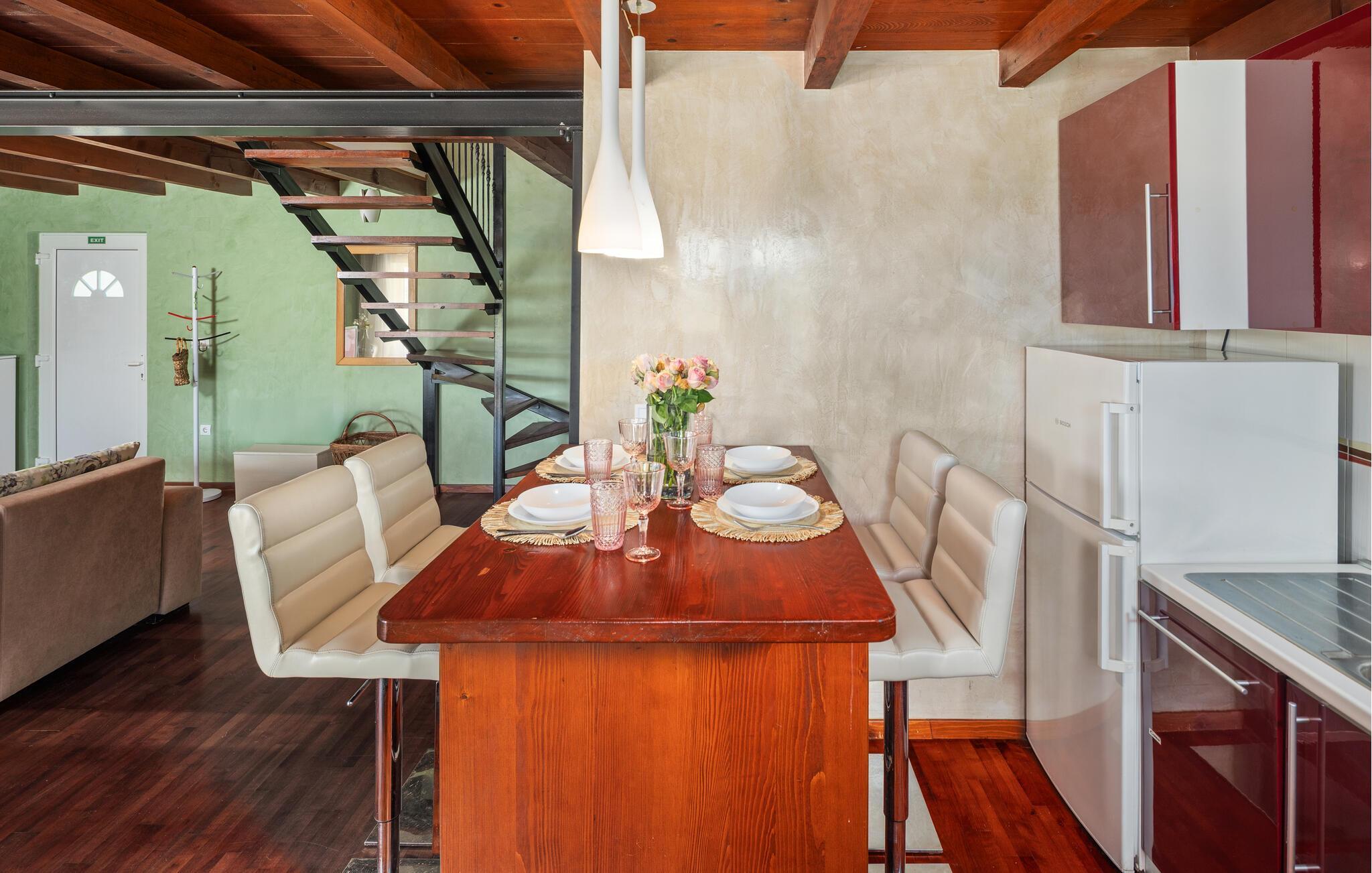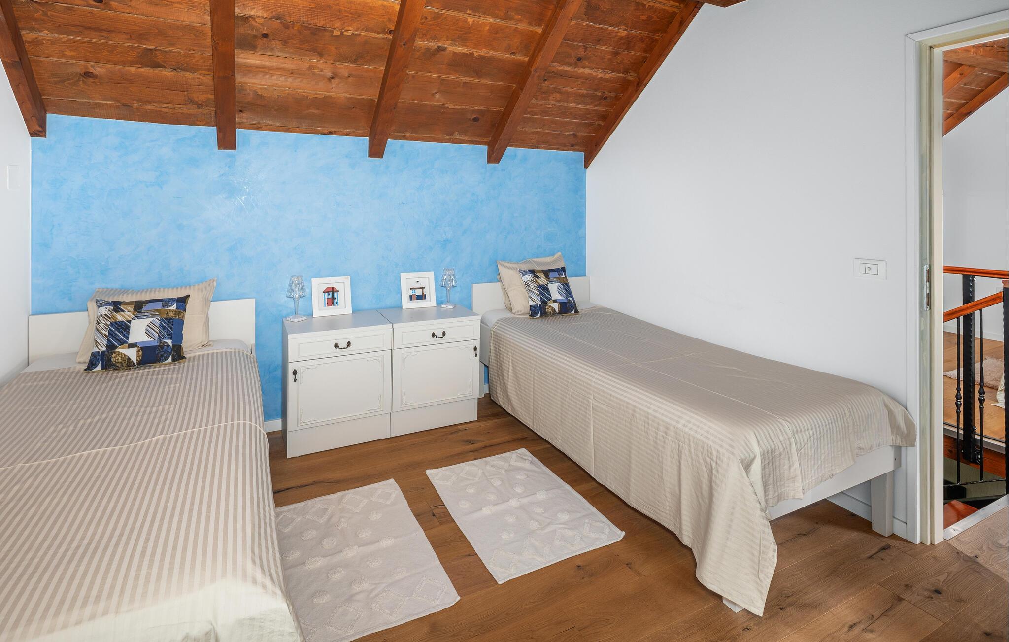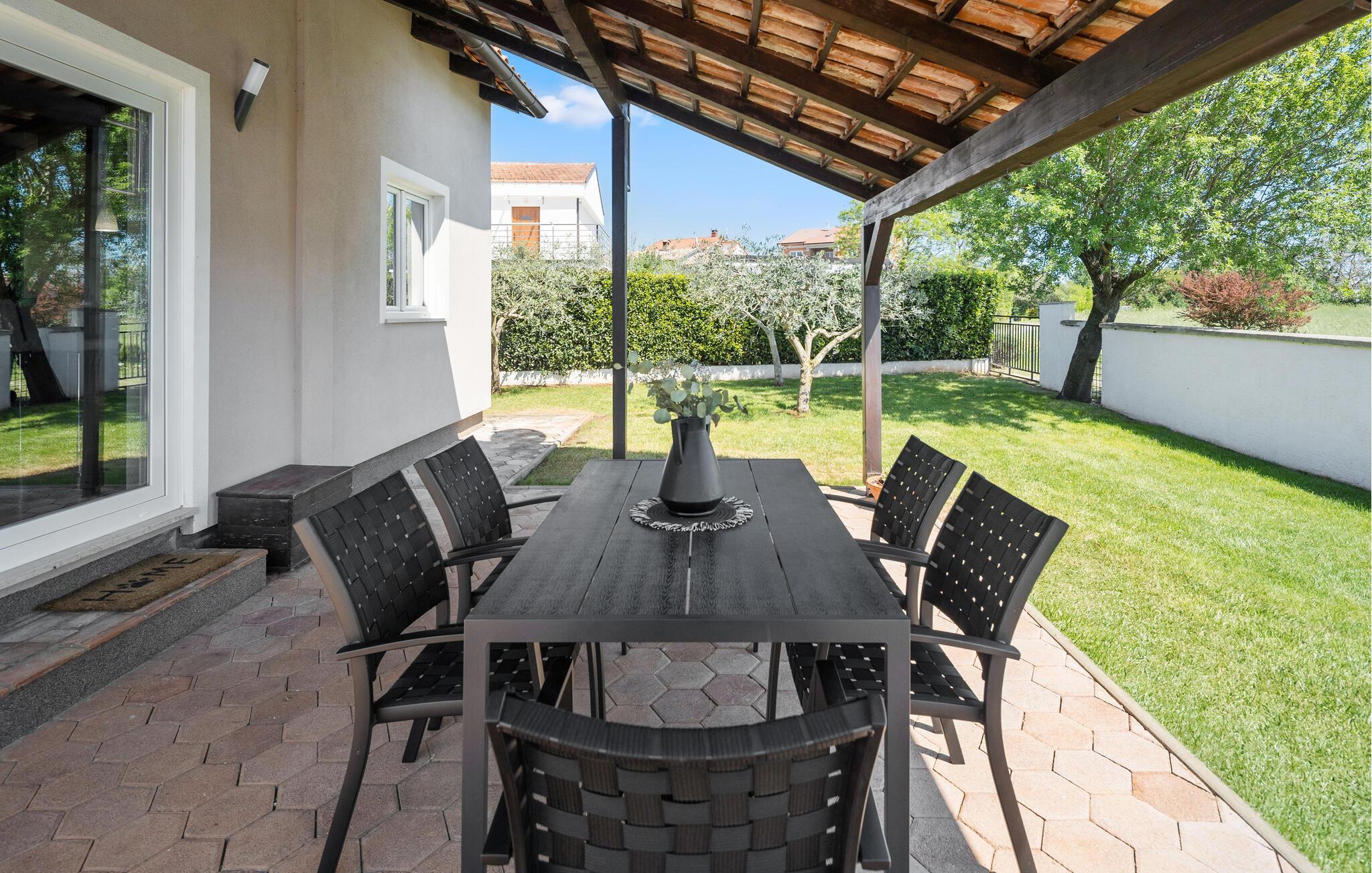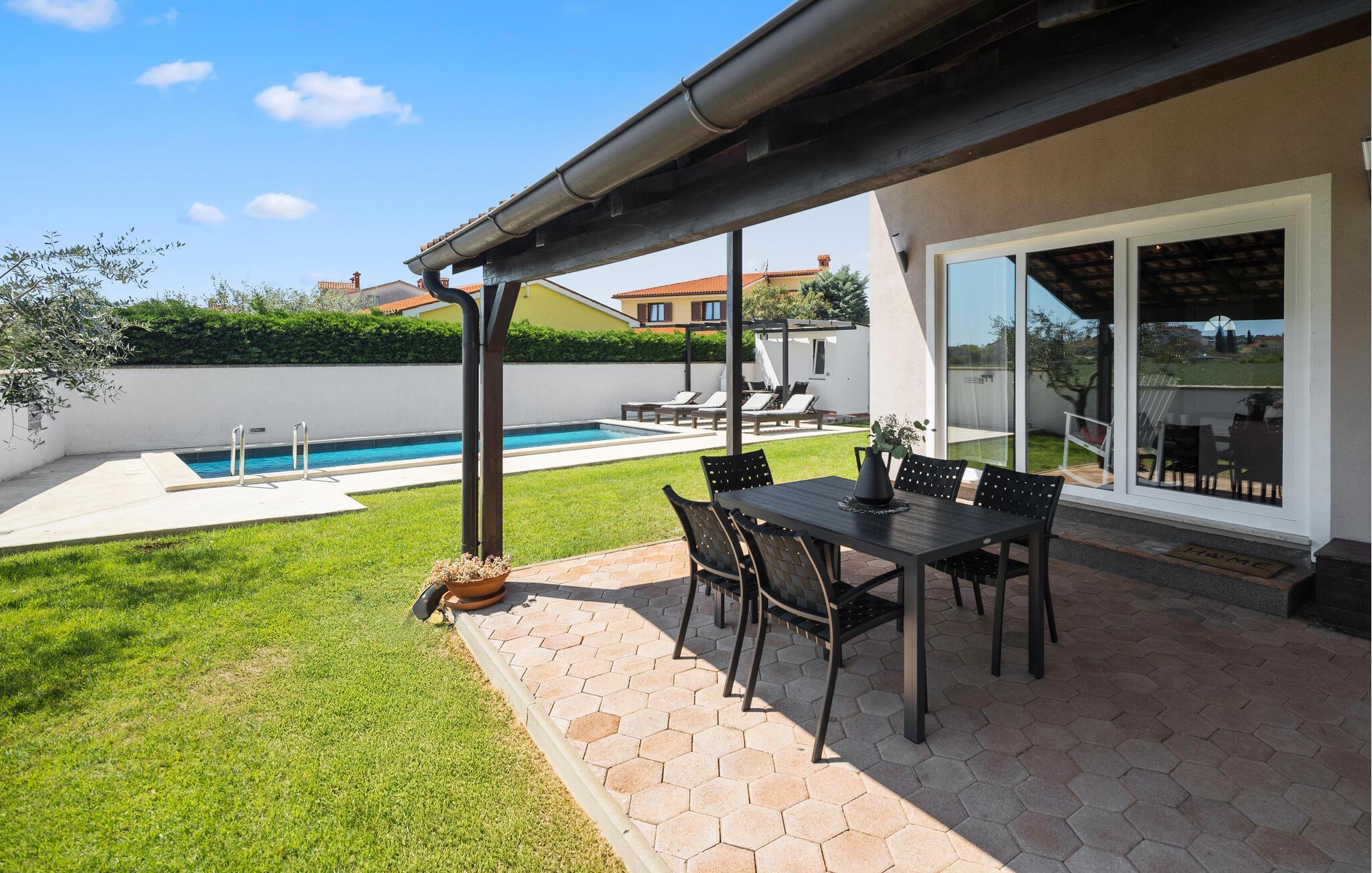 Dette feriehuset med basseng ligger i Valbandon, i nærheten av Faana. Det er vakkert og harmonisk innredet og tilbyr deg all den komforten du trenger for en behagelig ferie. I øverste etasje, med en minimum takhøyde på ca. 140 cm, er det to soverom, hvorav det ene er et gjennomgangsrom, mens det i første etasje er en stue med kjøkken og et bad. Fra stuen har du tilgang til en overbygd terrasse hvor du kan spise ute med familien og slappe av med et godt glass vin om kvelden. I mellomtiden kan barna leke uforstyrret i den inngjerdede hagen. Verten tilbyr utflukter med egen båt til de nærliggende øyene mot en ekstra kostnad. Det er to parkeringsplasser på naboeiendommen. Besøk den sjarmerende lille byen Faana, som er kjent for sin vakre strandpromenade med barer og restauranter samt interessante arrangementer som finner sted i sommermånedene.