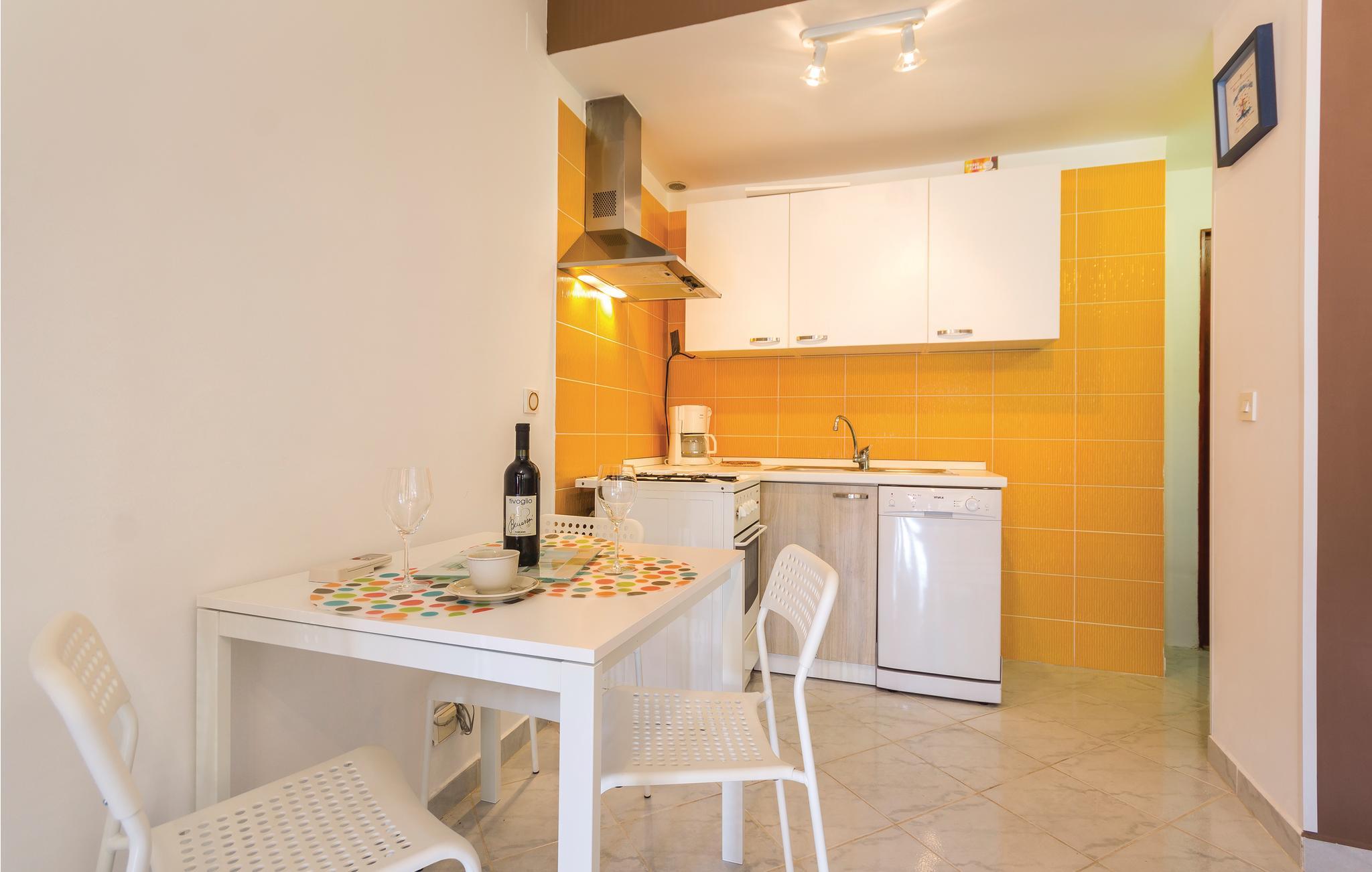 Denne ferieleiligheten ligger i et familiehus i Valbandon, i nærheten av Faana. Den funksjonelt innredede ferieboligen består av et kjøkken med stue, et soverom og et bad, og er ideell for mindre familier. Det er en liten terrasse utenfor. Spaser til vakre strender og besøk den tidligere fiskerlandsbyen Faana med mange restauranter, strandbarer og sportsfasiliteter for hele familien. Ta en romantisk spasertur langs strandpromenaden, som også fører til Faana, sentrum for sommerarrangementer med mange gastronomiske, kulturelle og underholdende arrangementer. Fra havnen i Faana kan du ta en båttur til Brijuni nasjonalpark, som absolutt er verdt et besøk.