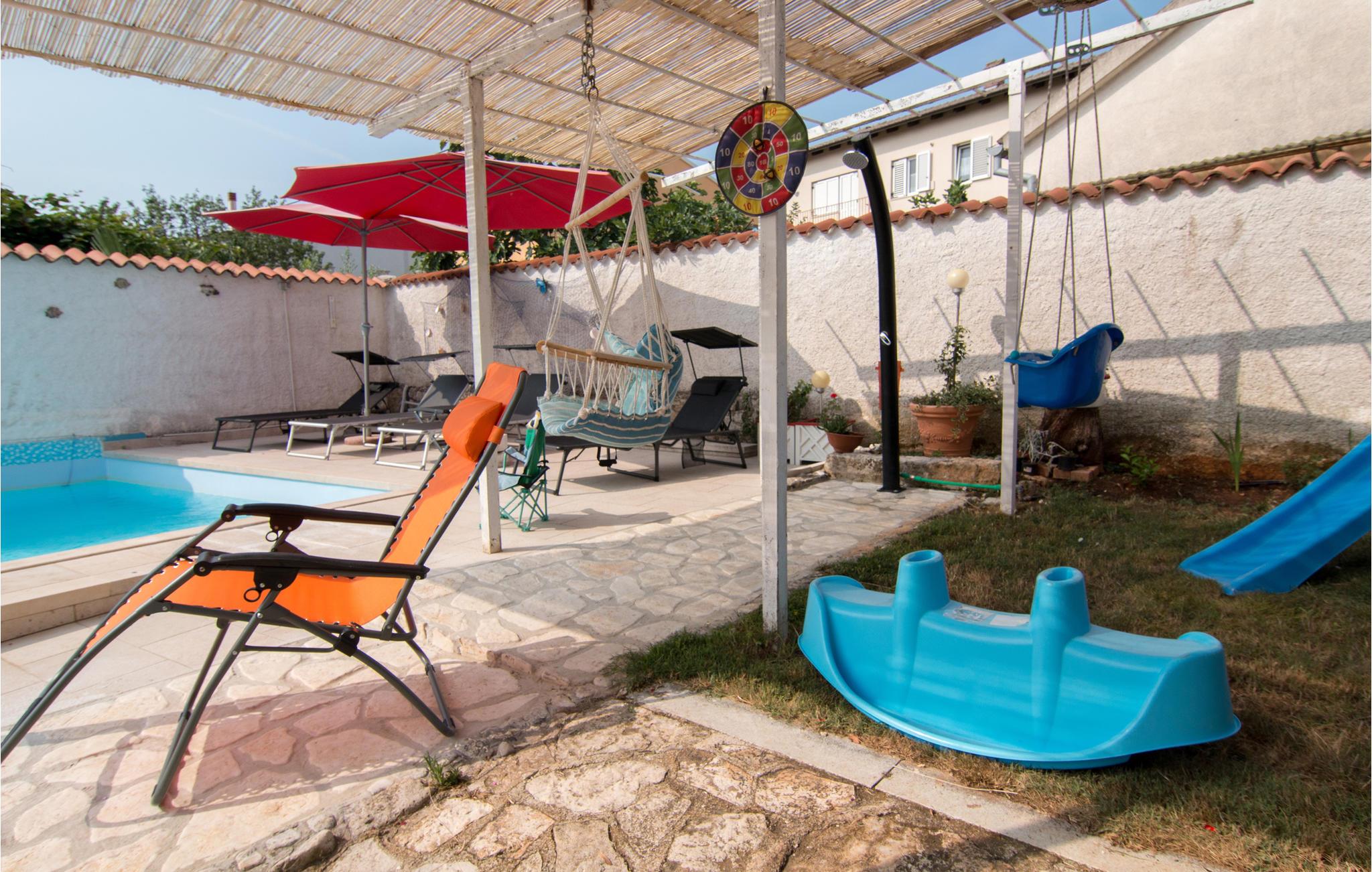 Planlegg noen utflukter til de fantastiske omgivelsene på halvøya, da denne innkvarteringen er den perfekte basen for det. Du er i nærheten av den pittoreske byen Fazana med en liten havn, fargerike byhus og flotte restauranter. Nyt den unike feriestemningen som den tidligere fiskerlandsbyen sprer. Spaser langs den livlige strandpromenaden eller ta en kort sykkeltur til de fine sandstrendene. Med båt kan du nå den berømte Brijuni nasjonalpark med sine 14 øyer like utenfor kysten.