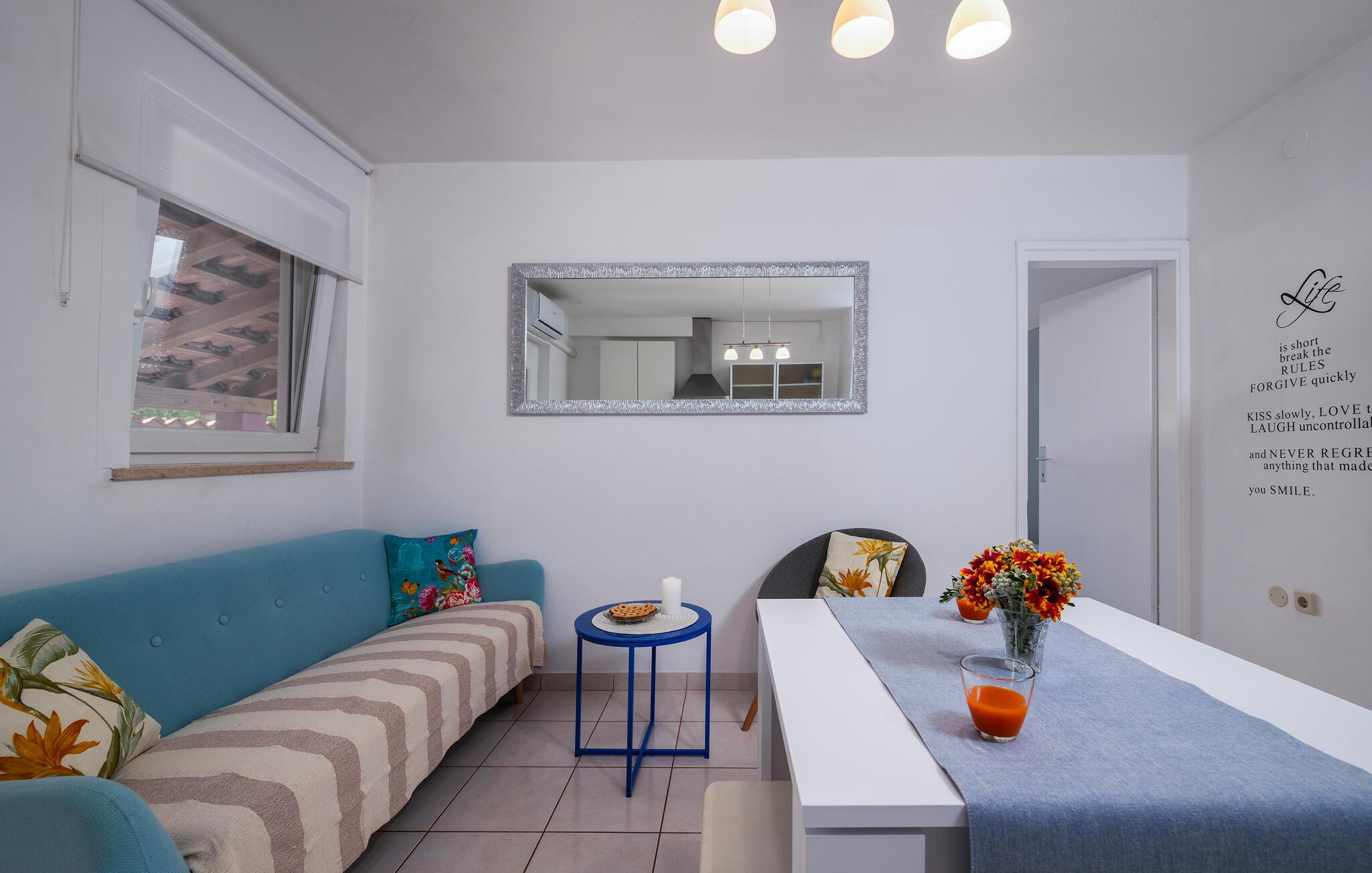 Dette hyggelige tomannsboligen inviterer deg til en hyggelig ferie. Alle rommene ligger i første etasje og er smakfullt innredet. I den felles hagen kan du tilbringe vakre og uforglemmelige øyeblikk med dine kjære og også grille. En tur til Brijuni nasjonalpark anbefales, som vil fortrylle deg med uberørt natur. Langs kysten foran Fazana er det gode restauranter med tradisjonell mat og fantastisk utsikt over havet. Byen Pula tilbyr underholdning med forskjellige arrangementer i sommermånedene.