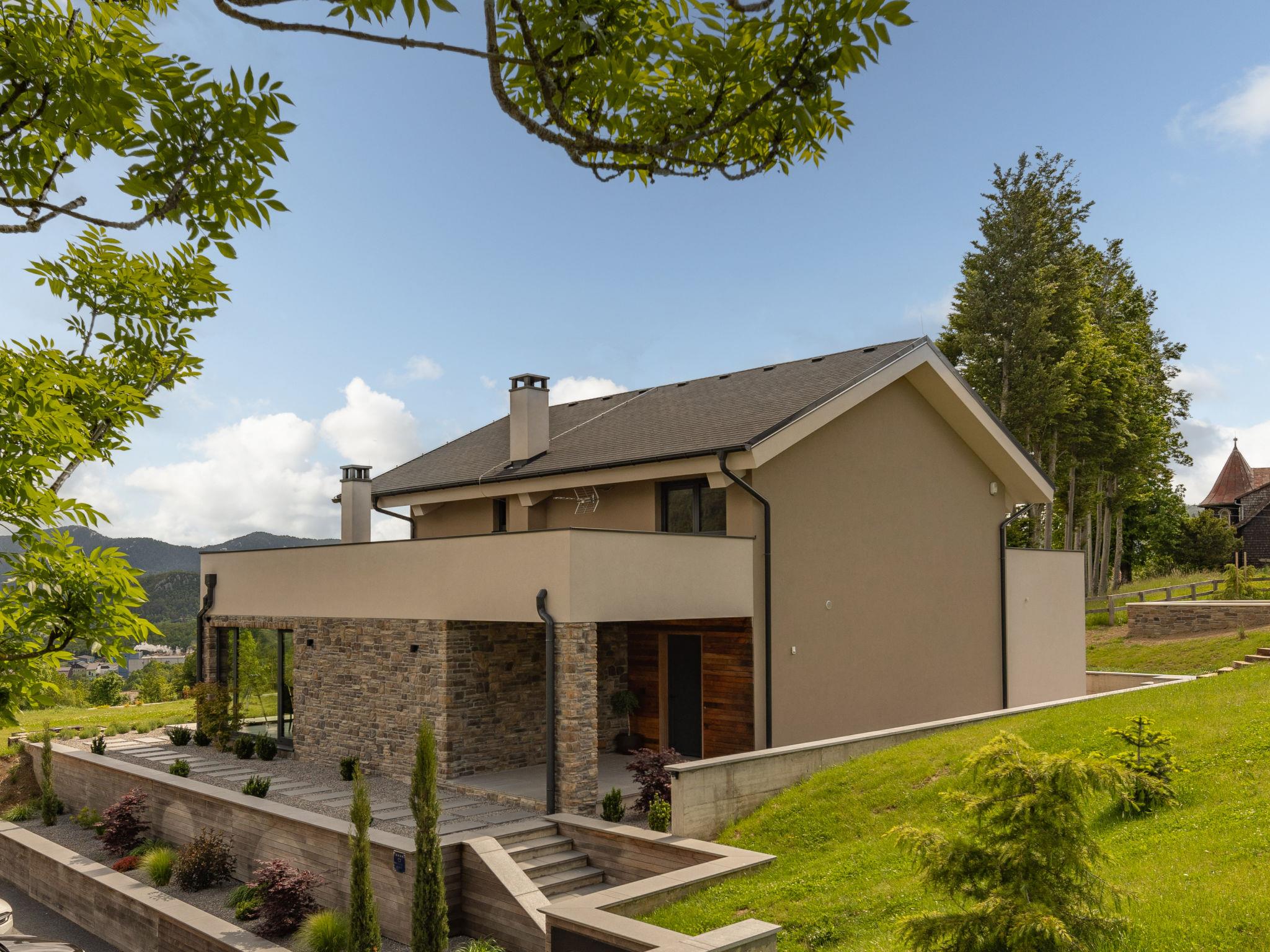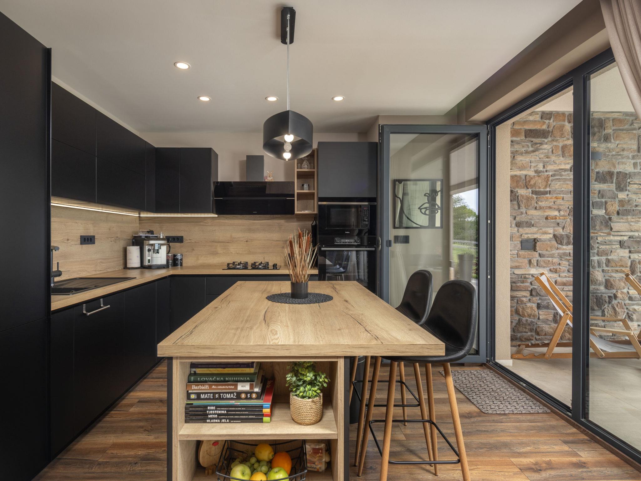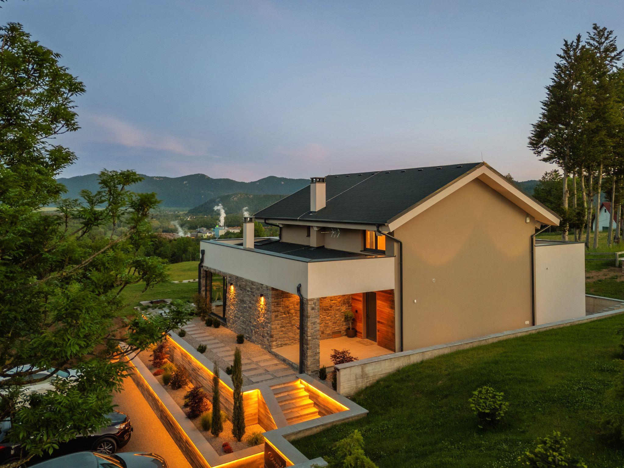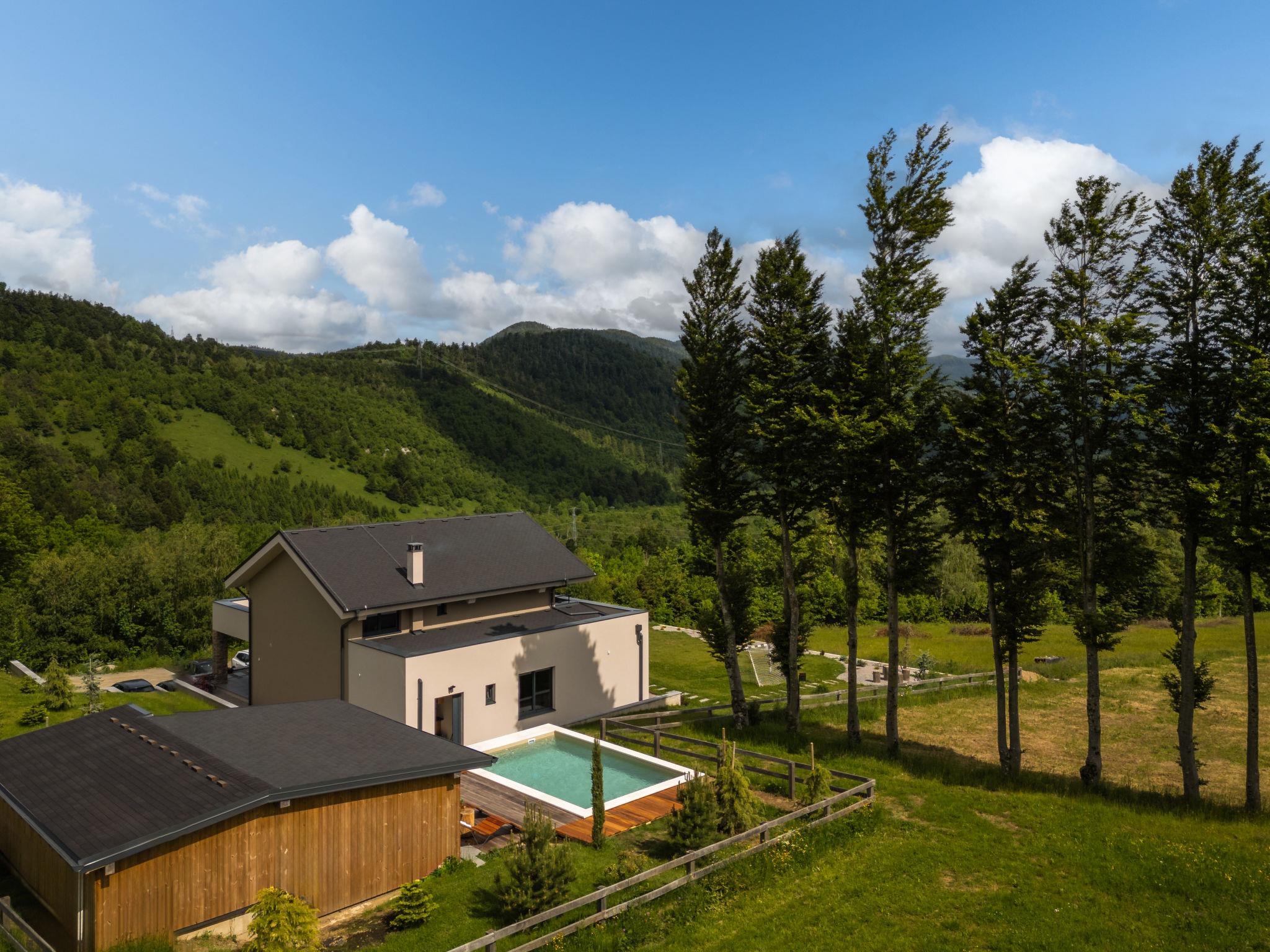 Situated just moments from Lakes Bajer and Lepenica, this villa is an ideal choice for guests seeking an active holiday in nature as well as those looking for complete peace and a break from everyday life. It features four elegant bedrooms, each with its own private bathroom and offers stunning panoramic views of Lic, the Licko Polje valley, Lake Potkoš and the surrounding peaks of Viševica and Kobinjak. Modern, beautiful villa "Propuh", 2 storeys, built in 2024. 800 m from the centre of Fužine, in a quiet, sunny, elevated position, 27 km from the sea, 1 km from the lake, 27 km from the beach. Private: property 1'900 m2, swimming pool angular, heated (6 x 4 m, depth 150 cm, seasonal availability: 01.Jun. - 30.Sep.). Shower/WC in the pool area. In the house: sauna, hot tub (all included), washing machine, tumble dryer. Shop, restaurant, bakery 1 m, bus stop 1.9 km. Walking paths from the house, cycle lane 200 m.