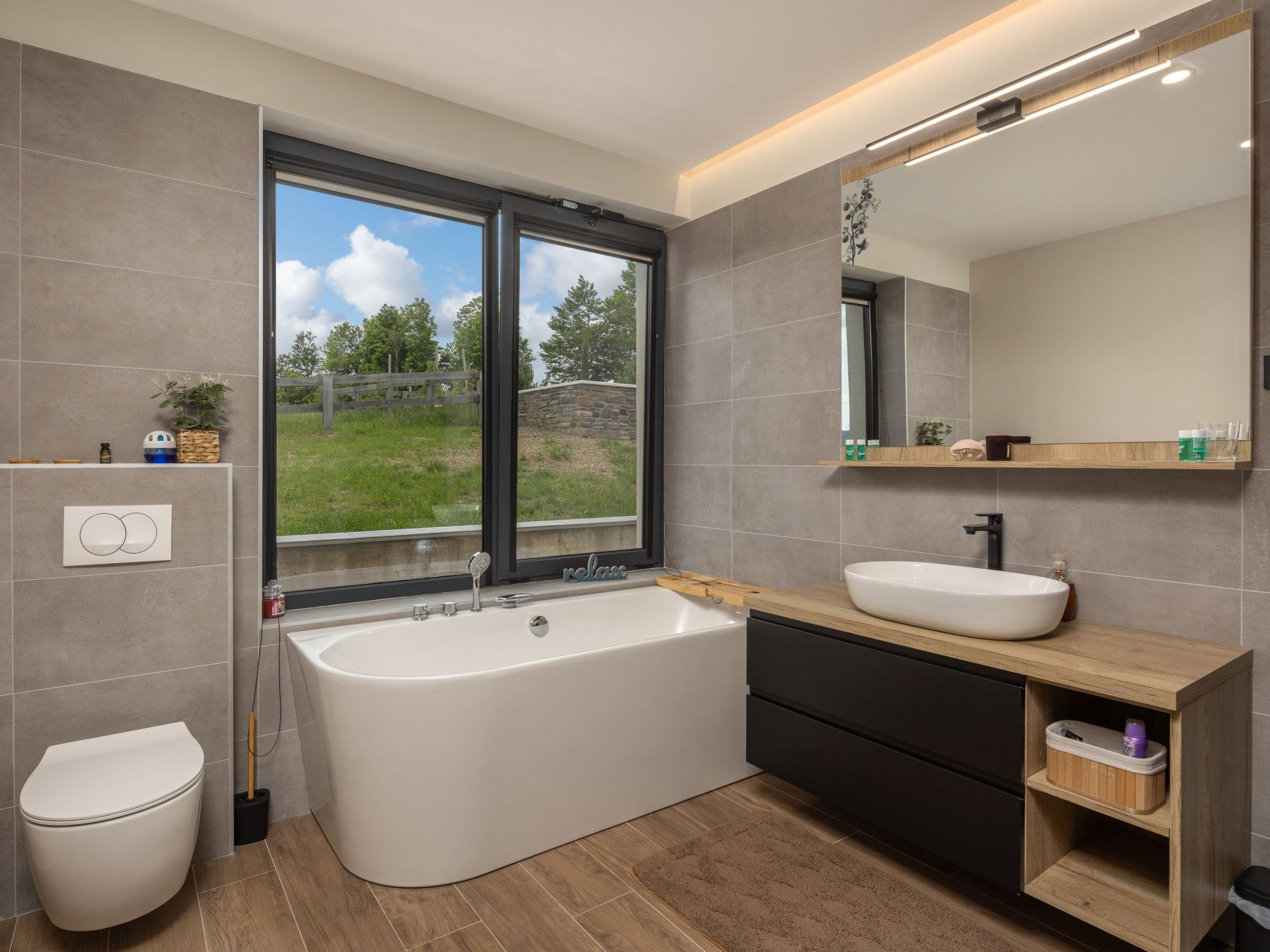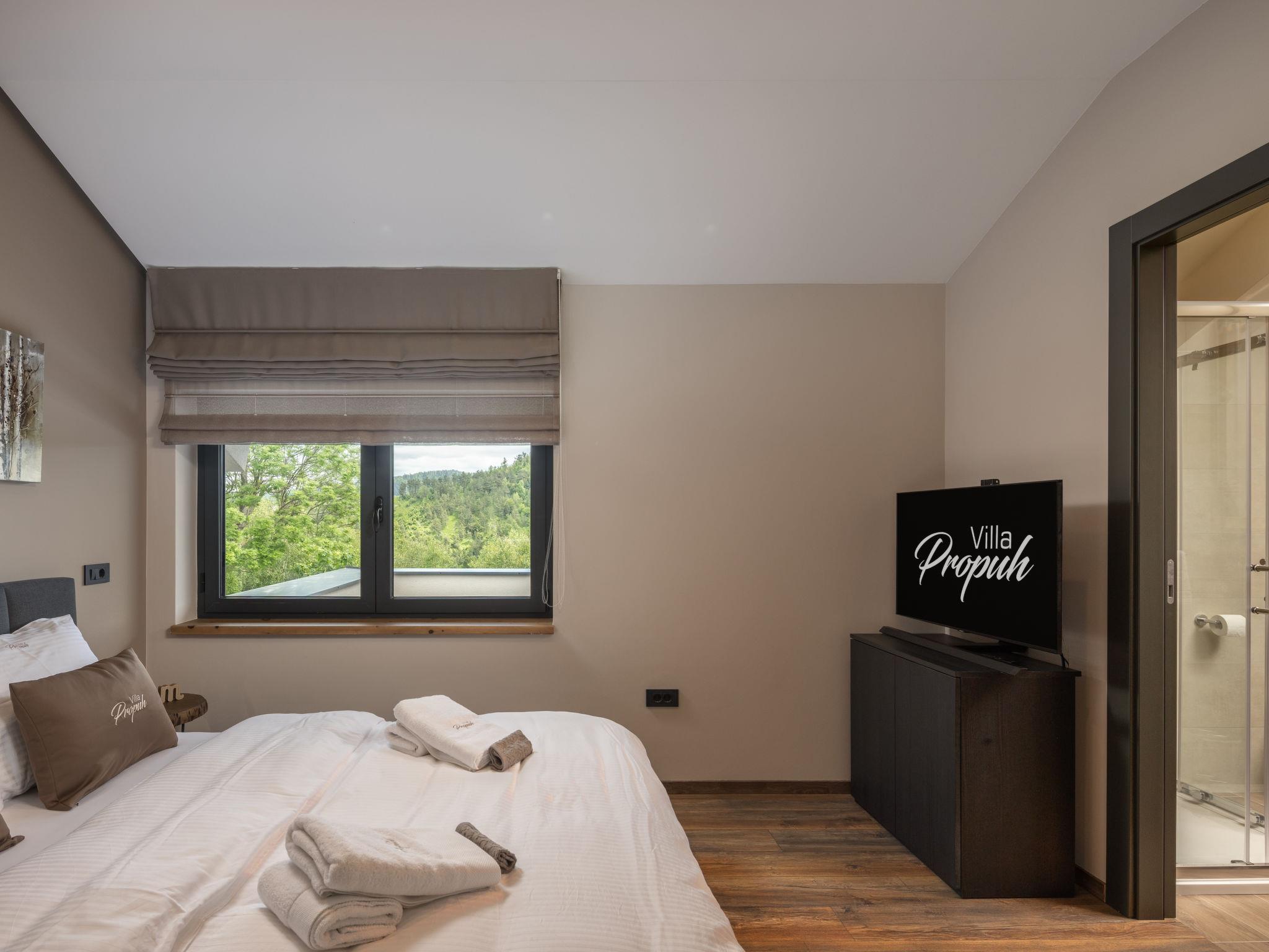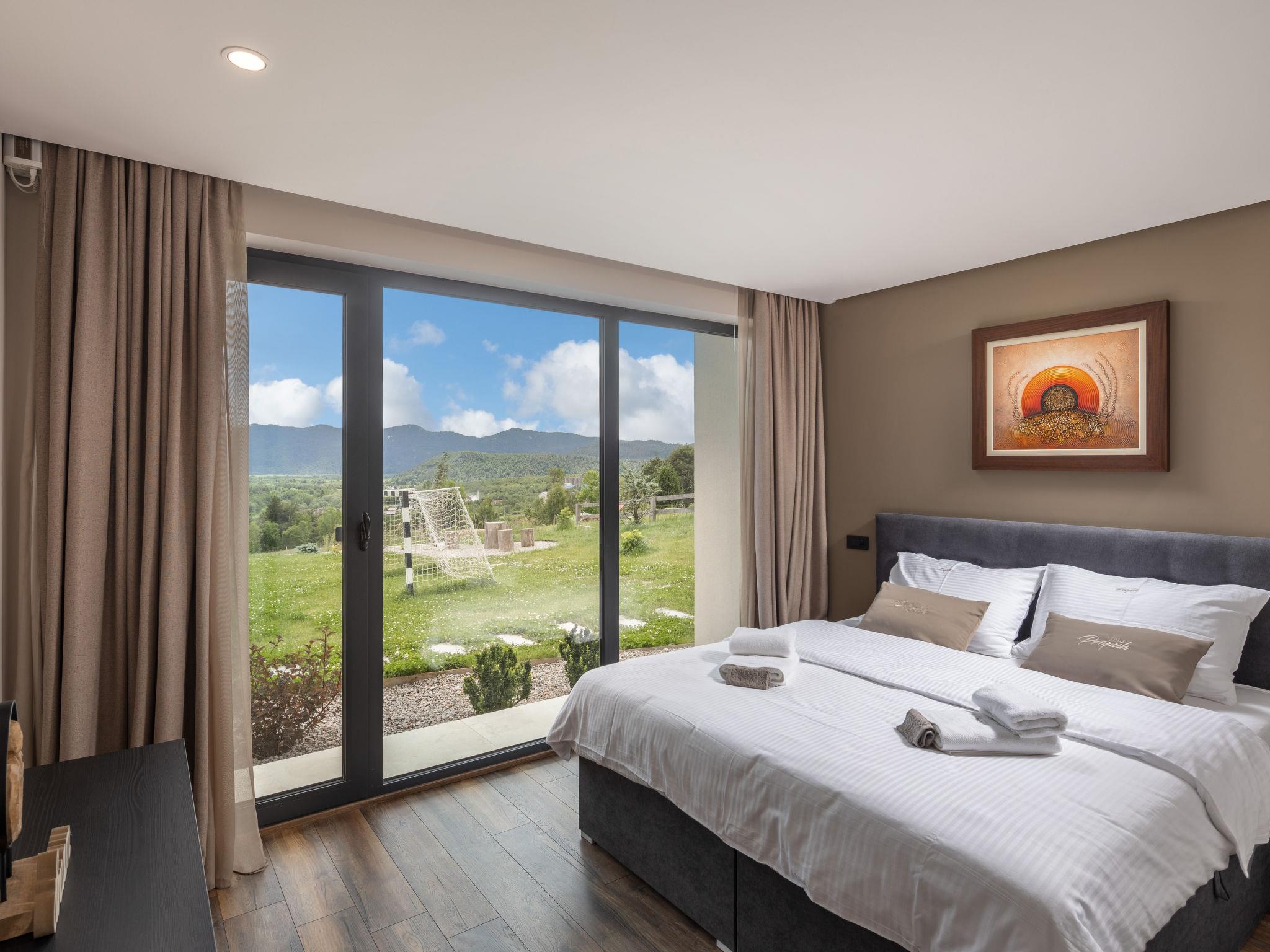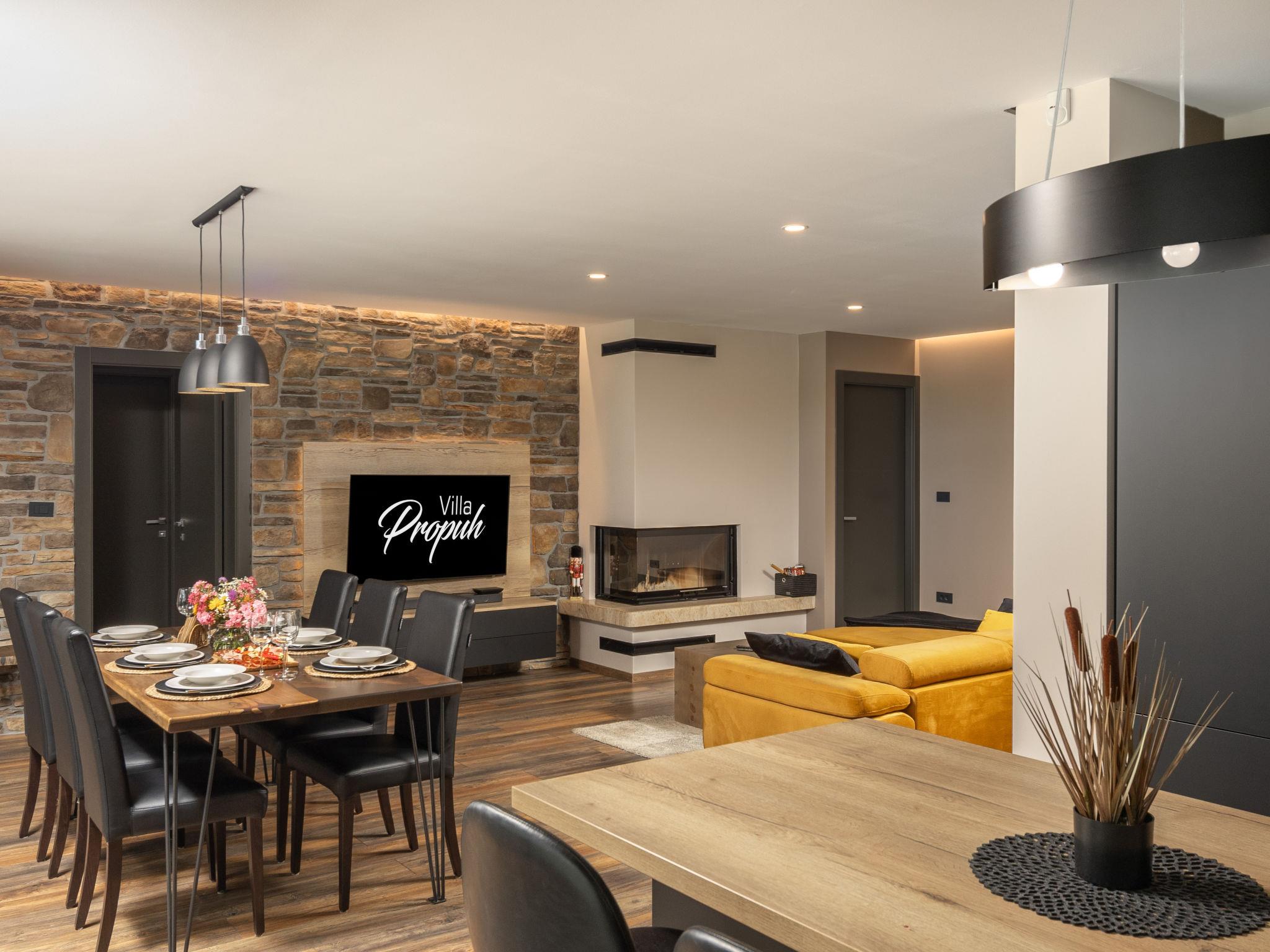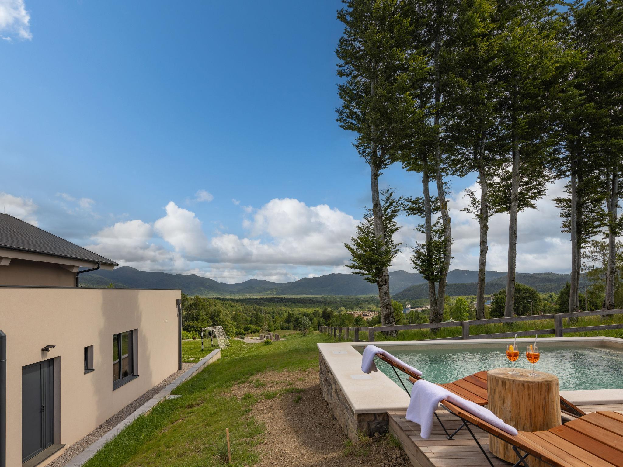 Situated just moments from Lakes Bajer and Lepenica, this villa is an ideal choice for guests seeking an active holiday in nature as well as those looking for complete peace and a break from everyday life. It features four elegant bedrooms, each with its own private bathroom and offers stunning panoramic views of Lic, the Licko Polje valley, Lake Potkoš and the surrounding peaks of Viševica and Kobinjak. Modern, beautiful villa "Propuh", 2 storeys, built in 2024. 800 m from the centre of Fužine, in a quiet, sunny, elevated position, 27 km from the sea, 1 km from the lake, 27 km from the beach. Private: property 1'900 m2, swimming pool angular, heated (6 x 4 m, depth 150 cm, seasonal availability: 01.Jun. - 30.Sep.). Shower/WC in the pool area. In the house: sauna, hot tub (all included), washing machine, tumble dryer. Shop, restaurant, bakery 1 m, bus stop 1.9 km. Walking paths from the house, cycle lane 200 m.