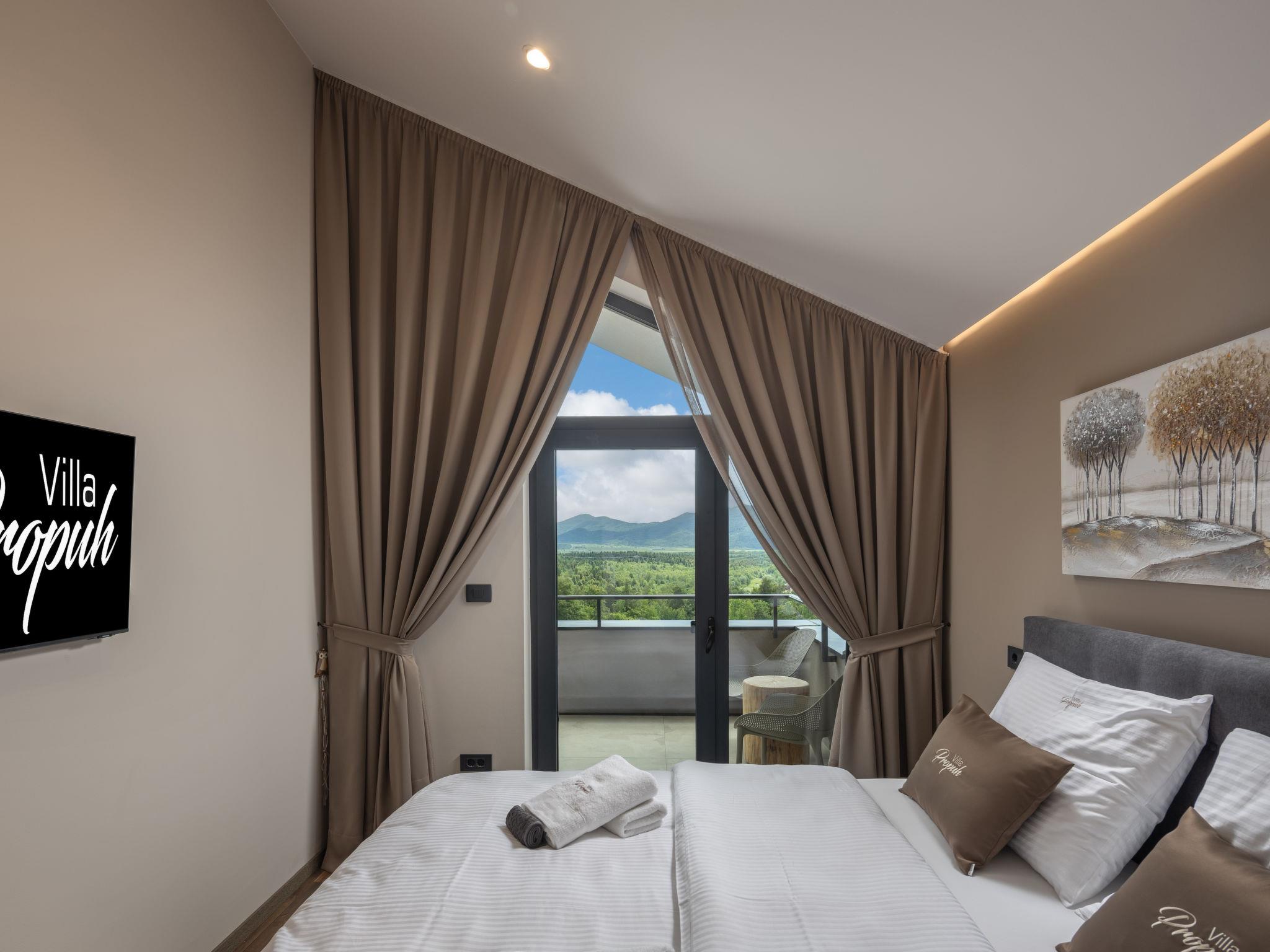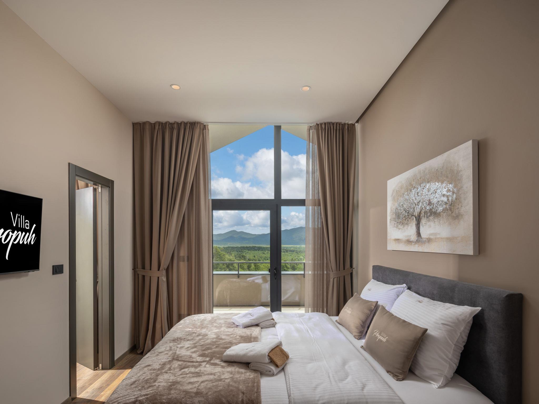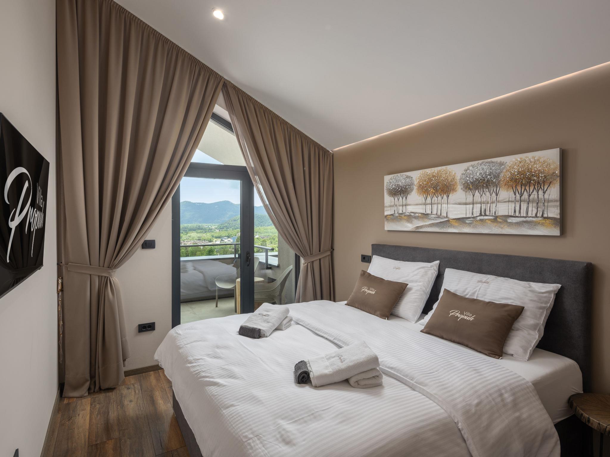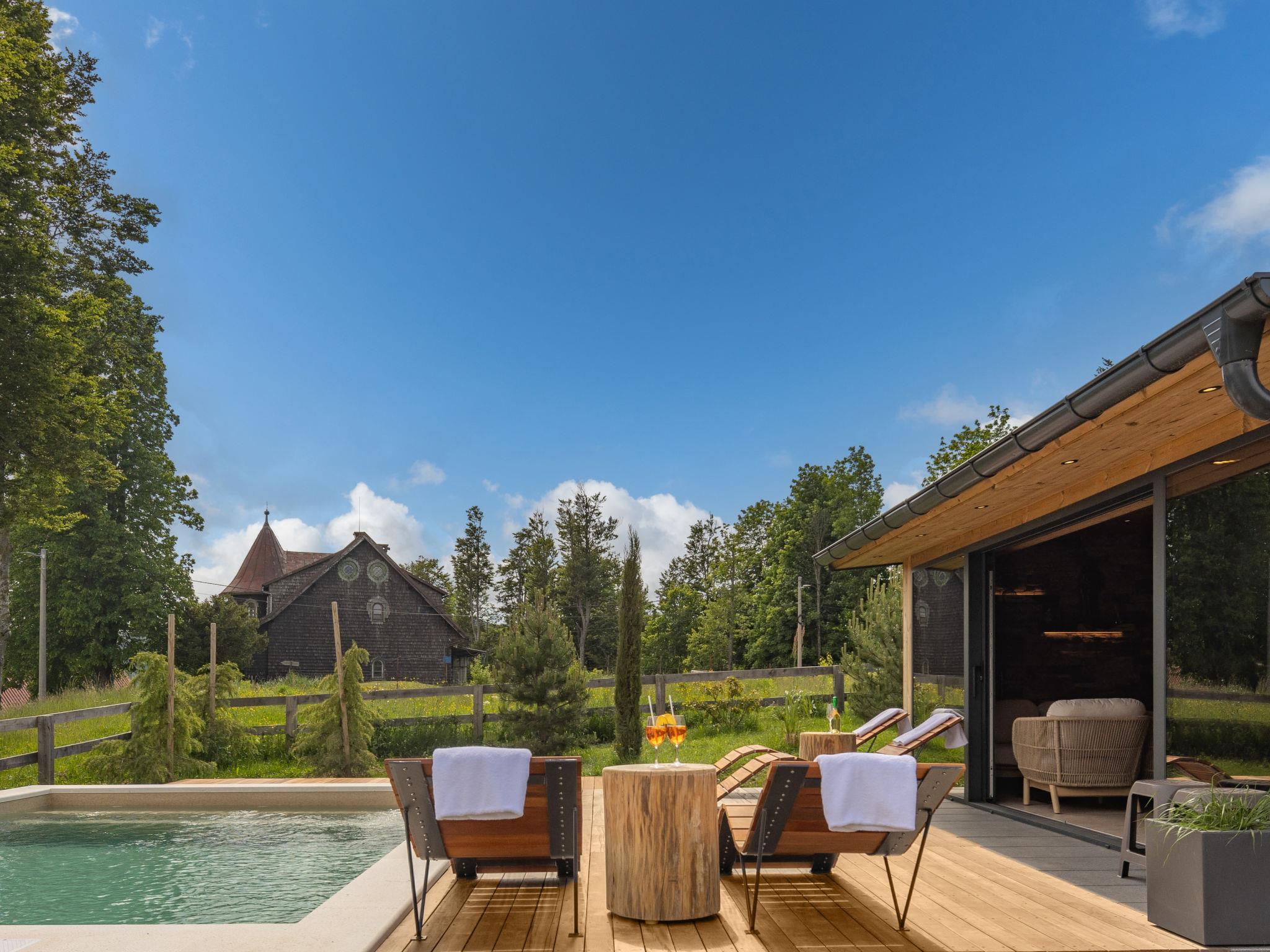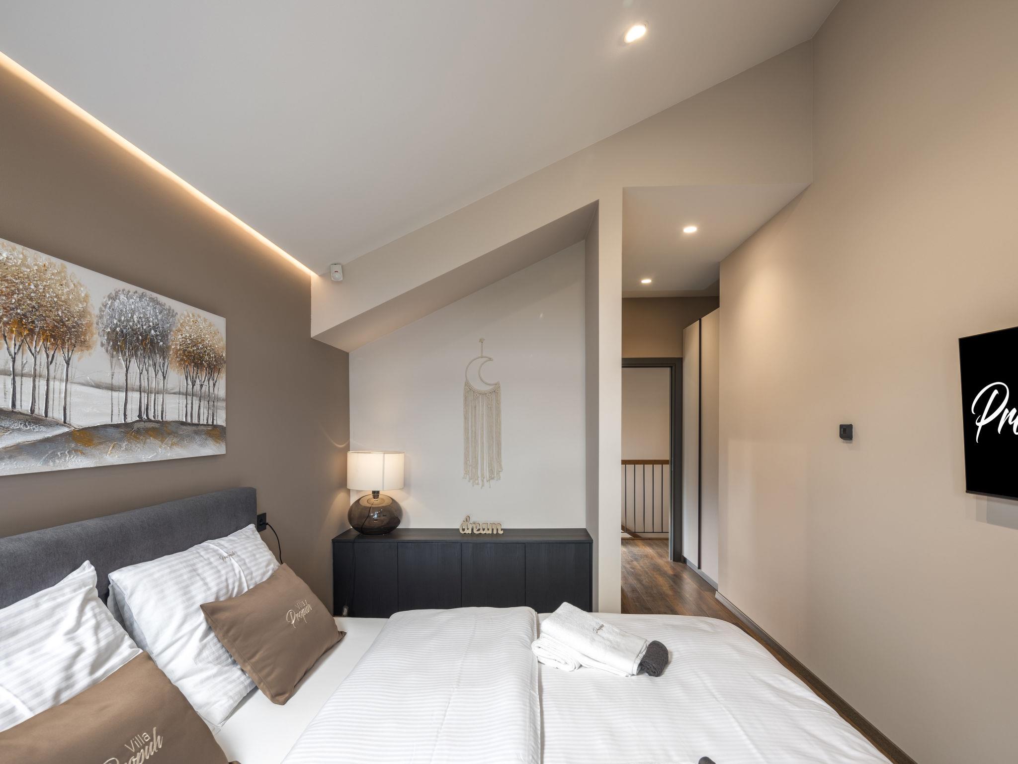 Situated just moments from Lakes Bajer and Lepenica, this villa is an ideal choice for guests seeking an active holiday in nature as well as those looking for complete peace and a break from everyday life. It features four elegant bedrooms, each with its own private bathroom and offers stunning panoramic views of Lic, the Licko Polje valley, Lake Potkoš and the surrounding peaks of Viševica and Kobinjak. Modern, beautiful villa "Propuh", 2 storeys, built in 2024. 800 m from the centre of Fužine, in a quiet, sunny, elevated position, 27 km from the sea, 1 km from the lake, 27 km from the beach. Private: property 1'900 m2, swimming pool angular, heated (6 x 4 m, depth 150 cm, seasonal availability: 01.Jun. - 30.Sep.). Shower/WC in the pool area. In the house: sauna, hot tub (all included), washing machine, tumble dryer. Shop, restaurant, bakery 1 m, bus stop 1.9 km. Walking paths from the house, cycle lane 200 m.
