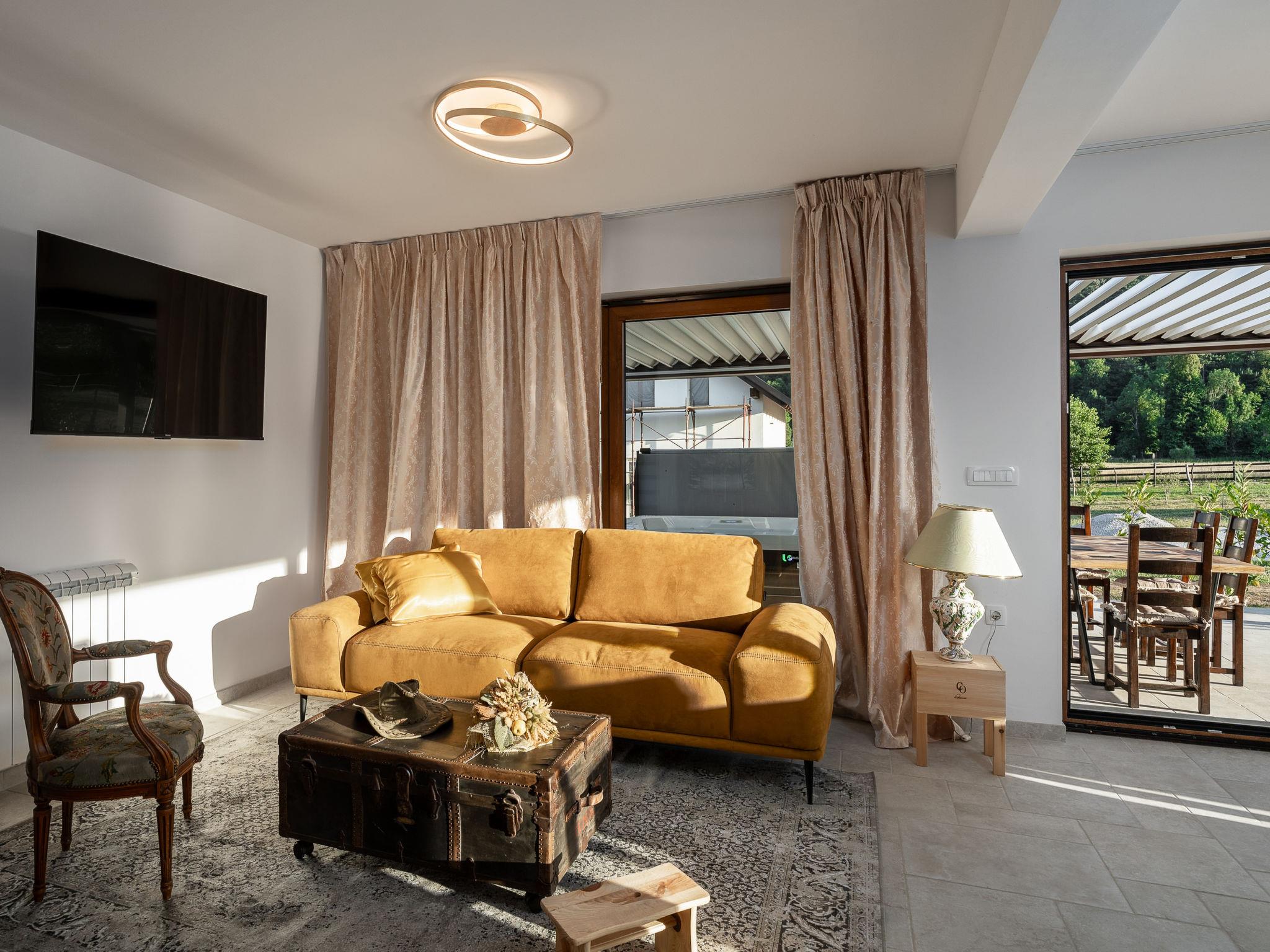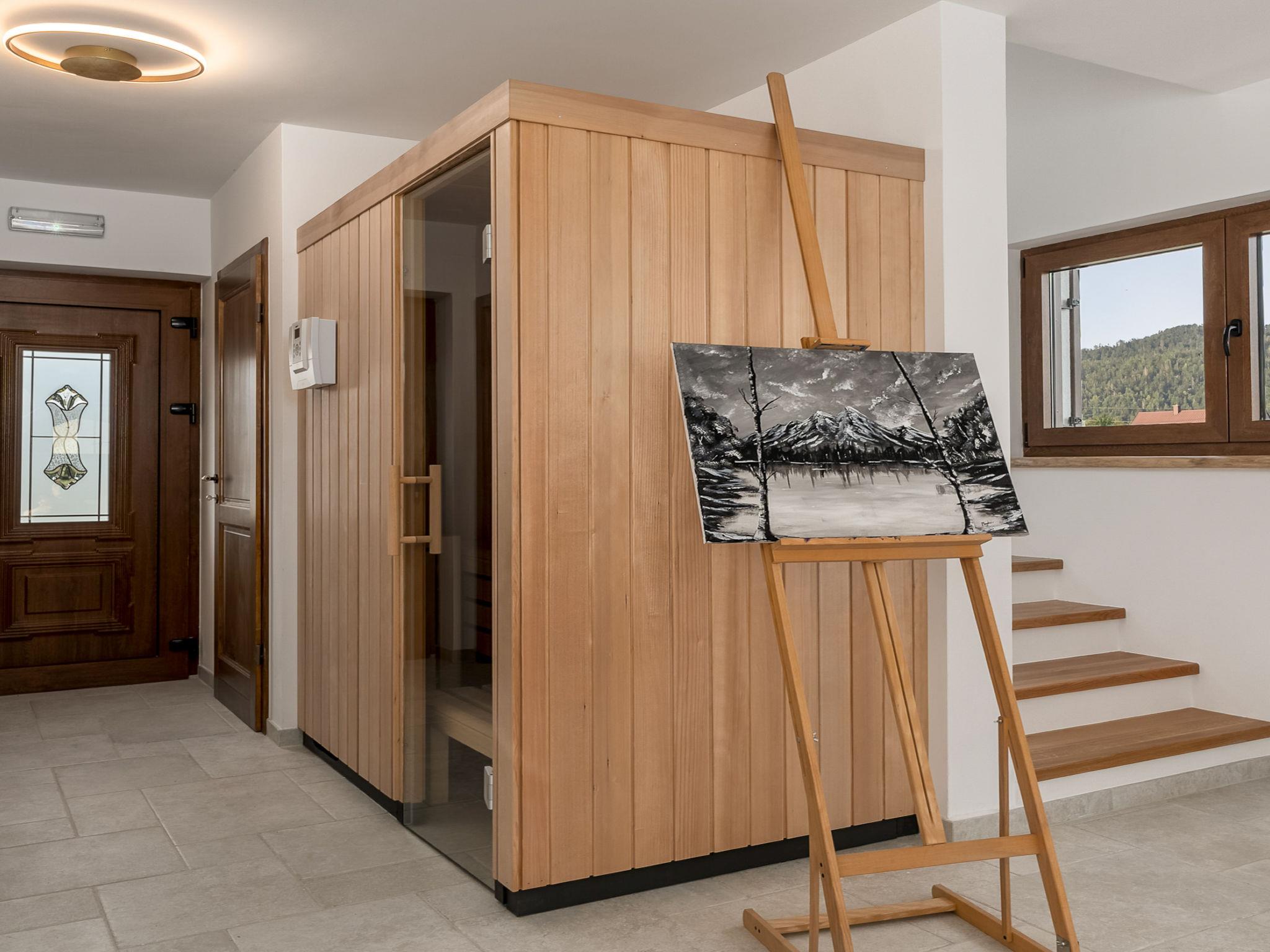 Lic 4 km from Fužine: Single-family house "Mountain House Volta 2", 2 storeys, built in 2024. 800 m from the centre of Lic, in a quiet, sunny position, 27 km from the sea, 4 km from the lake, in the countryside. For shared use: property 3'000 m2 with lawn and plants. Private: hot tub. In the house: internet access, sauna, central heating system. Motor access to the house (500 m via unmade road). Parking (for 2 cars) at the house on the premises. Shop 700 m, restaurant 4.2 km, bus stop 4 km, railway station 4 km, pebble beach 27 km, concrete beach 27 km. Walking paths from the house 500 m, cycle lane 550 m, ice rink 17 km. Nearby attractions: Cave Vrelo 6 km. Well-known lakes can easily be reached: Bajer 3 km. Please note: Additional accommodations can be booked. Property ref. HR2938.303.1 is situated on the same property.