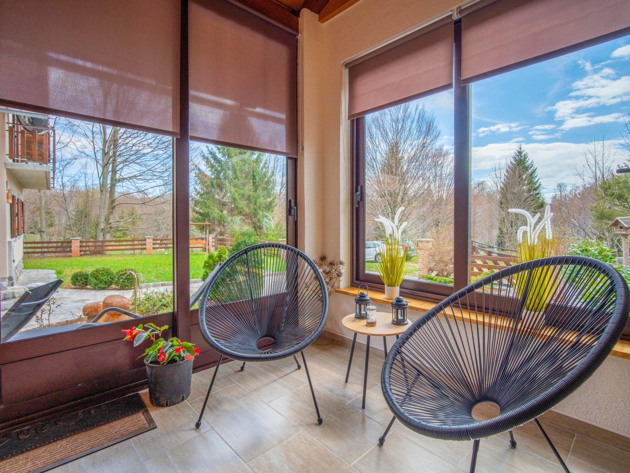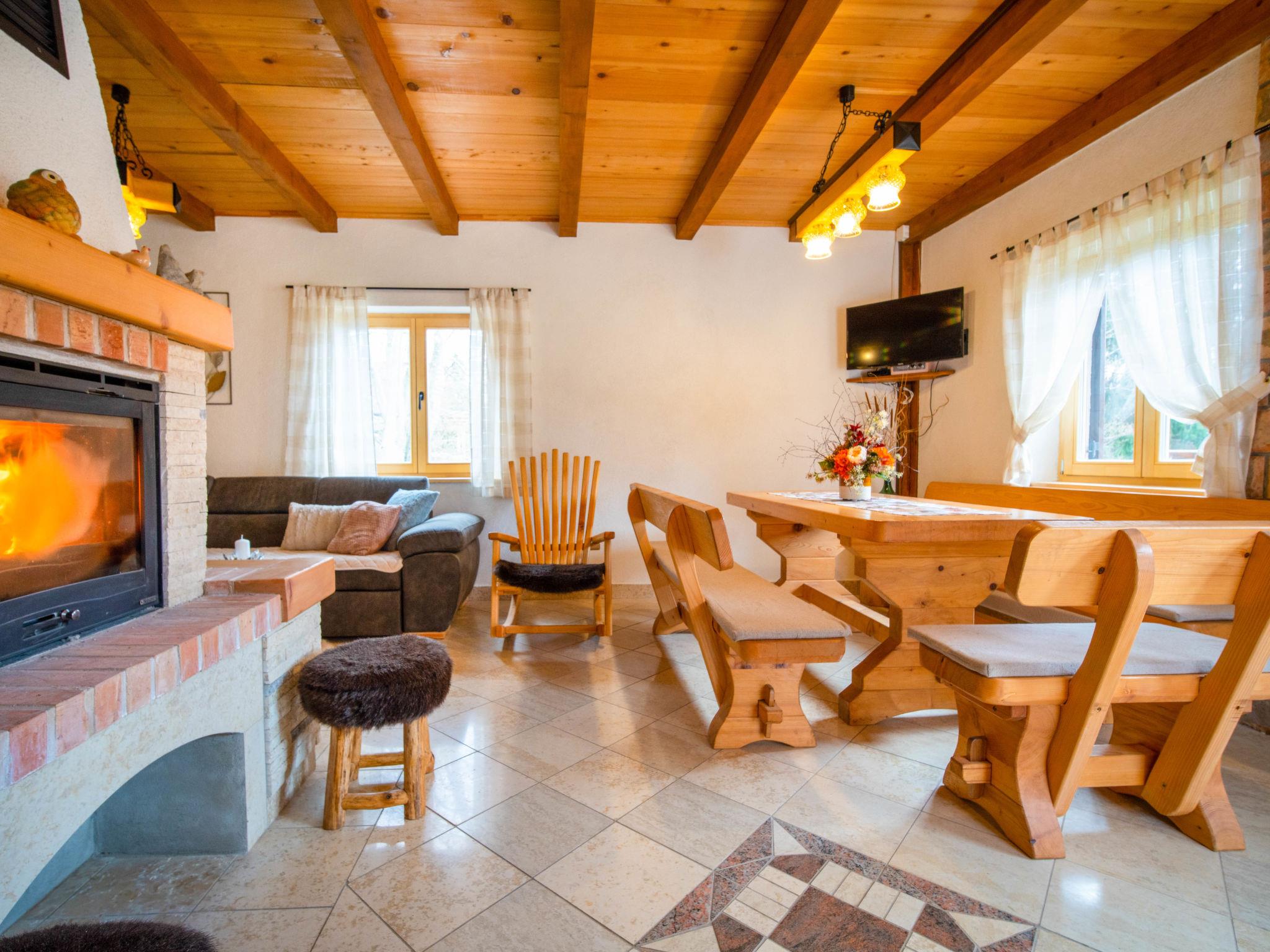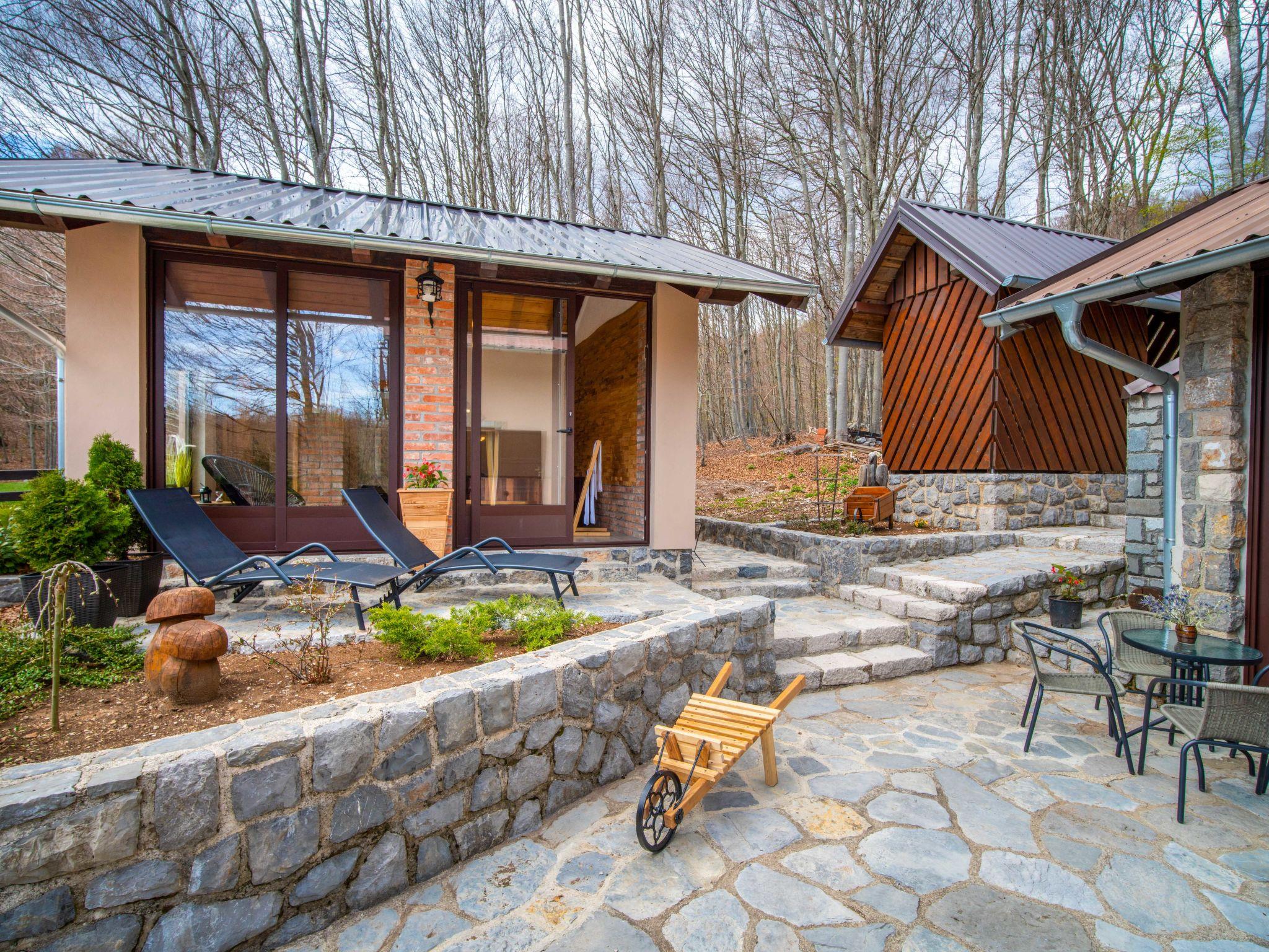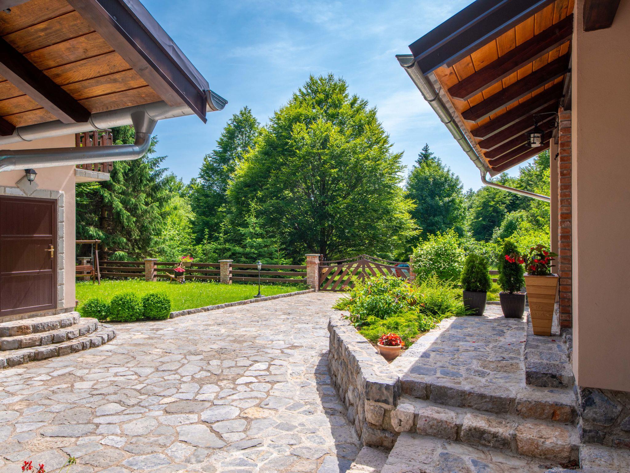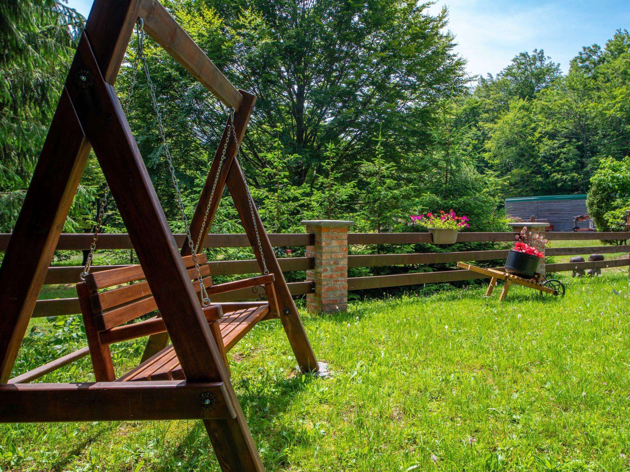 Lukovo 13 km from Fužine: Single-family house "Bazak", 2 storeys, surrounded by trees. In the hamlet Ravno, in a quiet, sunny position, 24 km from the sea, 14 km from the lake. Private: property 2'000 m2 with lawn 130 m2. Hot tub, barbecue house (swing). In the house: internet access, infrared sauna. Motor access (800 m via unmade road). Parking (for 3 cars) at the house on the premises. Shop 11 km, restaurant 1 km, bus stop 14.1 km, pebble beach 24 km, public bathing area 24 km. Riding stable 17 km, walking paths from the house 600 m, cycle lane 650 m. Well-known lakes can easily be reached: Bajer 14 km. The tap water has no drinking water quality.
