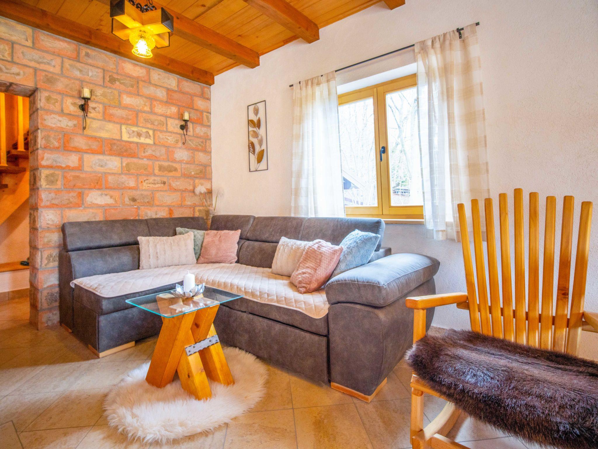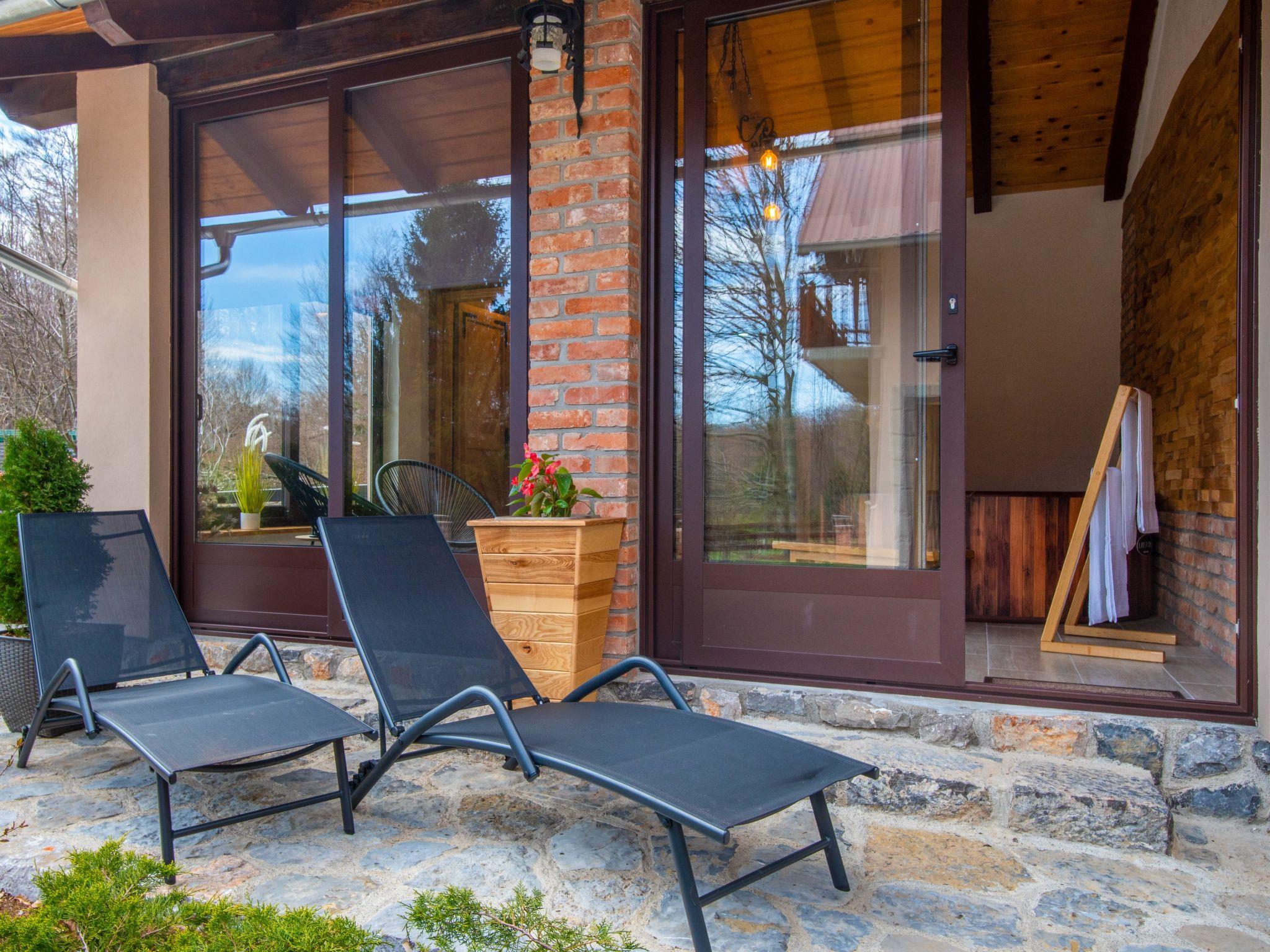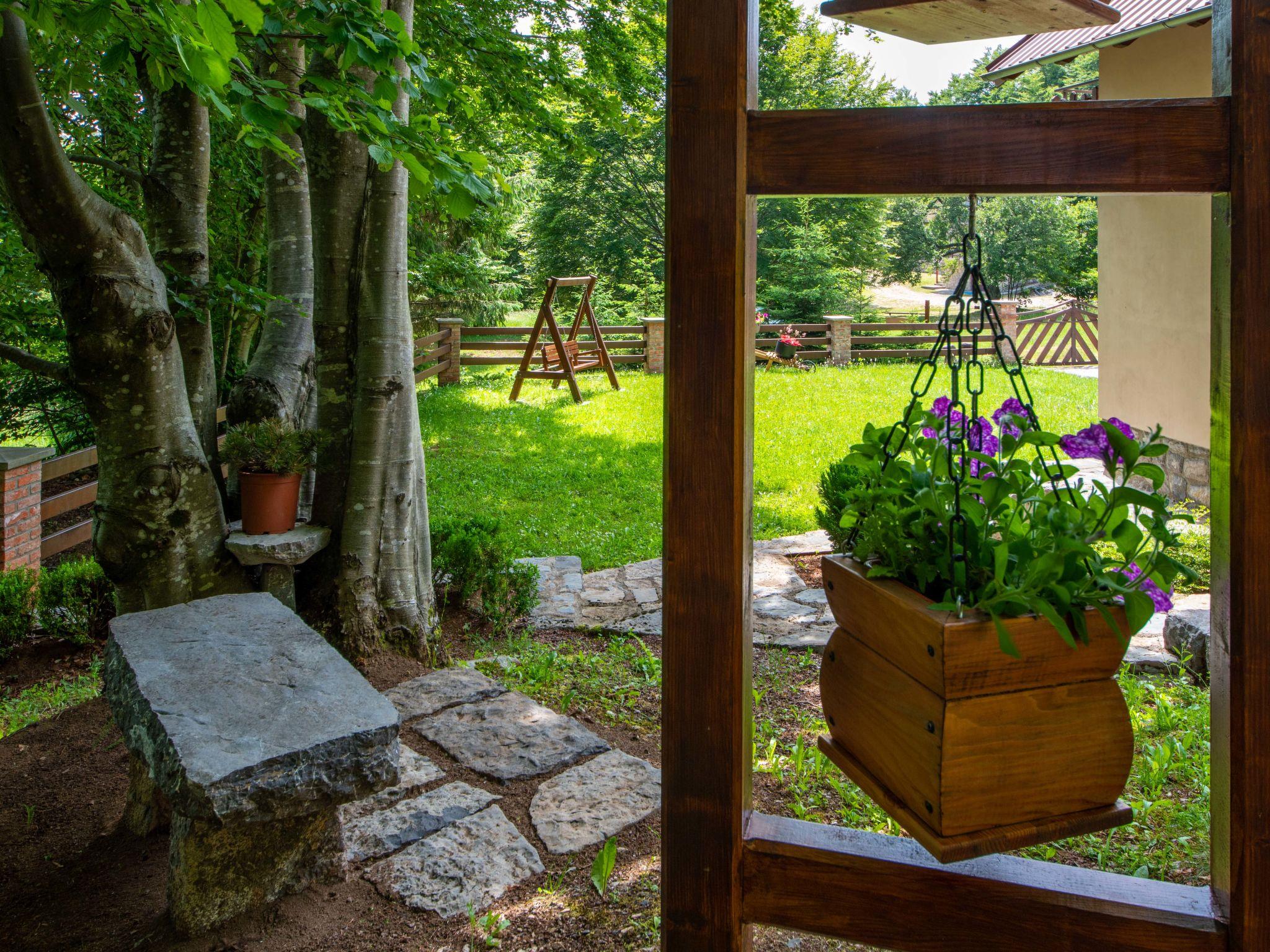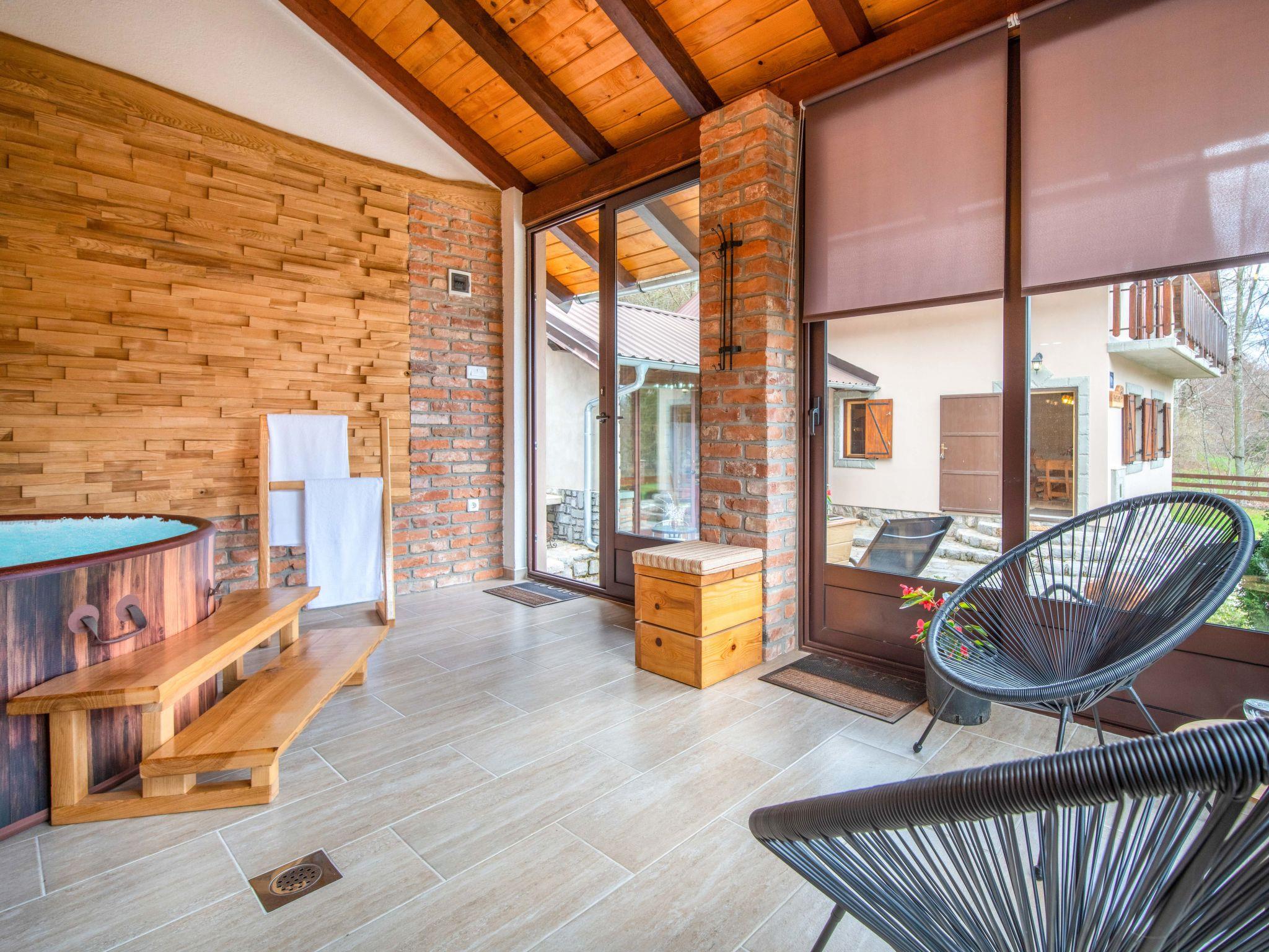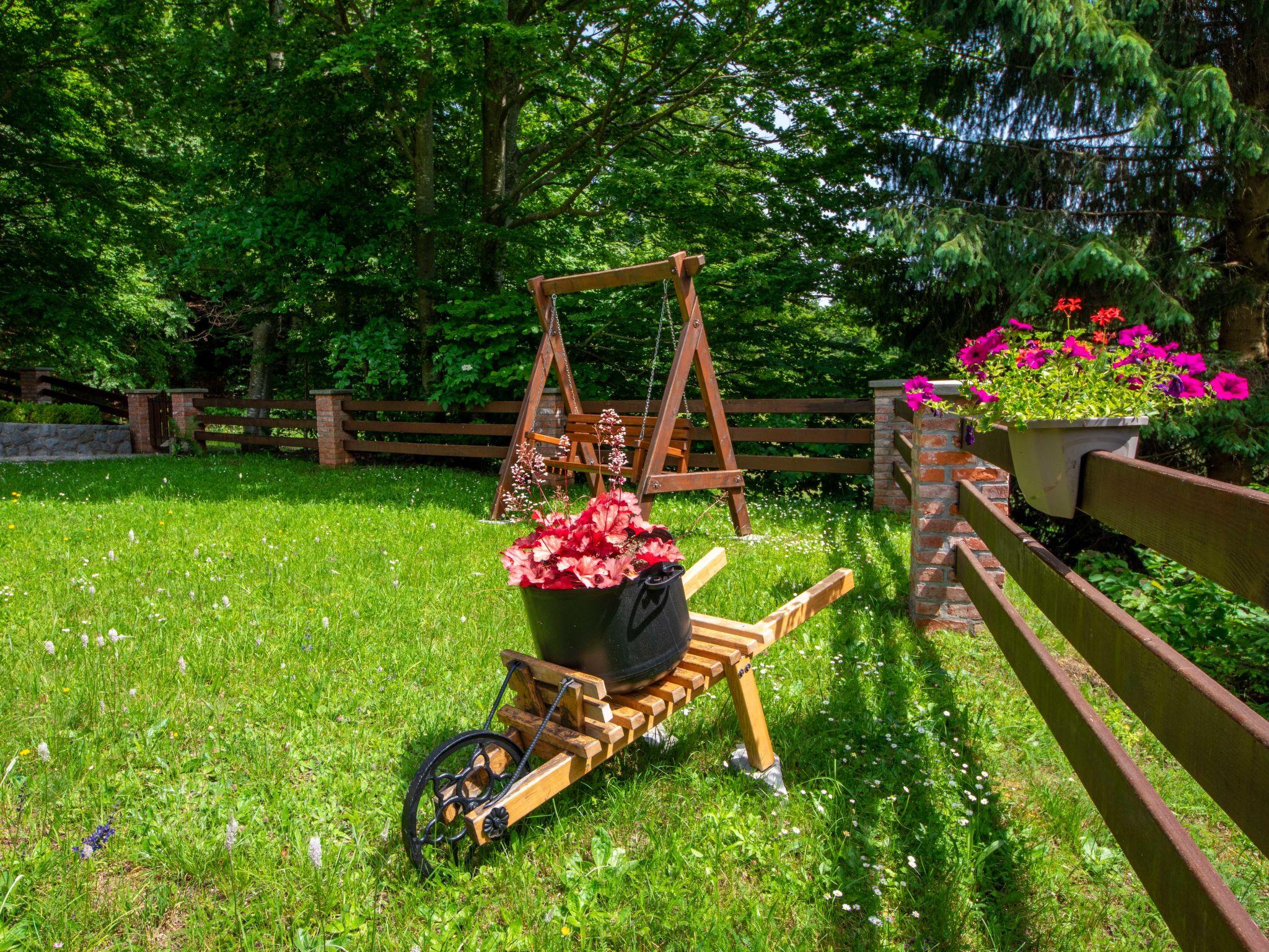 Lukovo 13 km from Fužine: Single-family house "Bazak", 2 storeys, surrounded by trees. In the hamlet Ravno, in a quiet, sunny position, 24 km from the sea, 14 km from the lake. Private: property 2'000 m2 with lawn 130 m2. Hot tub, barbecue house (swing). In the house: internet access, infrared sauna. Motor access (800 m via unmade road). Parking (for 3 cars) at the house on the premises. Shop 11 km, restaurant 1 km, bus stop 14.1 km, pebble beach 24 km, public bathing area 24 km. Riding stable 17 km, walking paths from the house 600 m, cycle lane 650 m. Well-known lakes can easily be reached: Bajer 14 km. The tap water has no drinking water quality.