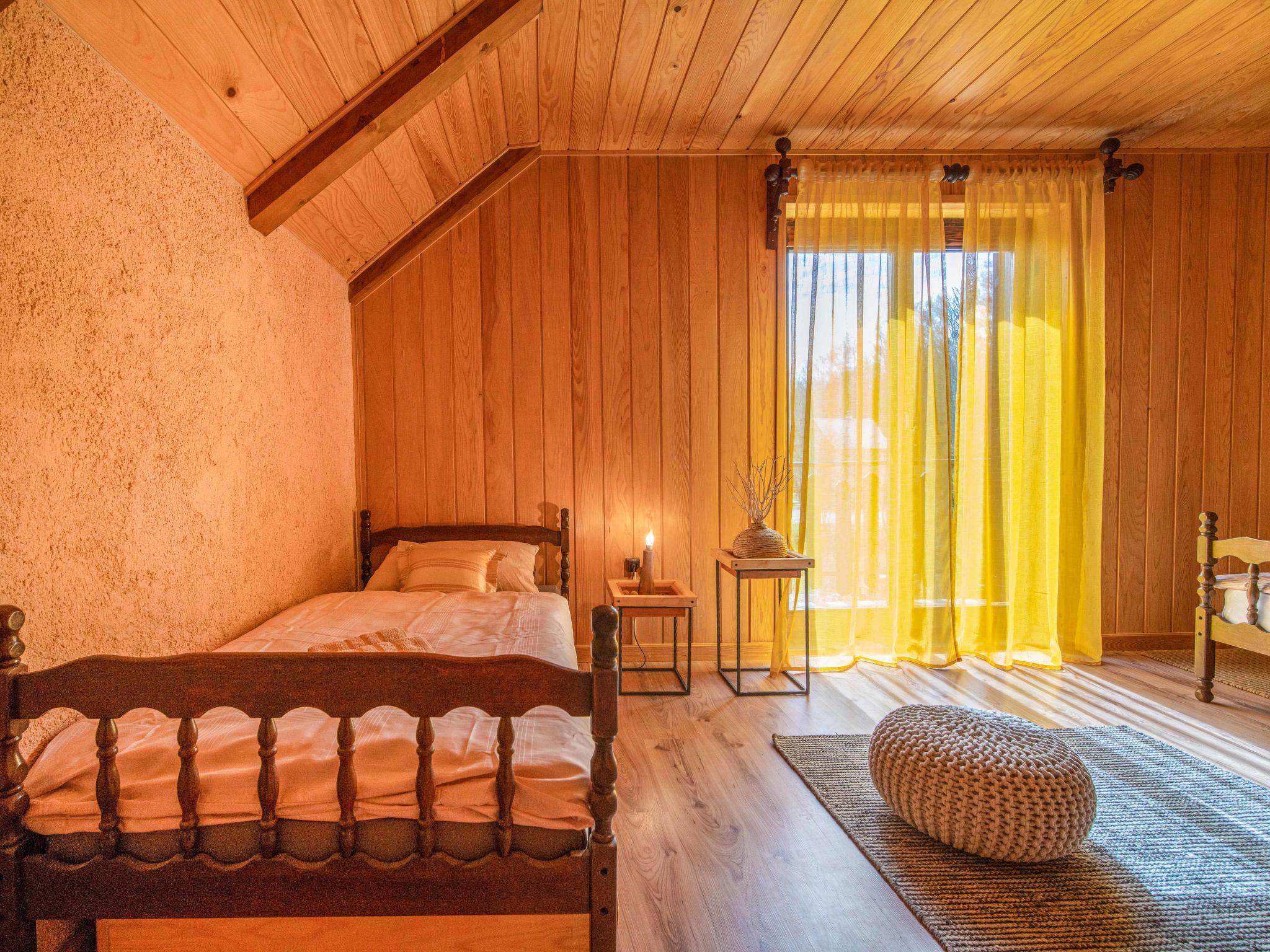 3-room house 83 m2. Living/dining room with open-hearth fireplace and satellite TV. Open kitchen (1 hot plate, oven, dishwasher, 3 gas rings, kettle, freezer, electric coffee machine). 2 showers/WC. Upper floor: 1 room with 1 bed (90 cm, length 190 cm), 1 double bed (2 x 90 cm, length 190 cm). Exit to the balcony. 1 room with 2 beds (90 cm, length 190 cm). Wood heating. Balcony 4 m2. Deck chairs. Facilities: baby cot, hair dryer, logs (free). Internet (WiFi, free). Maximum 1 small pet/ dog allowed. One shower/WC on the ground floor is located outside the house.
