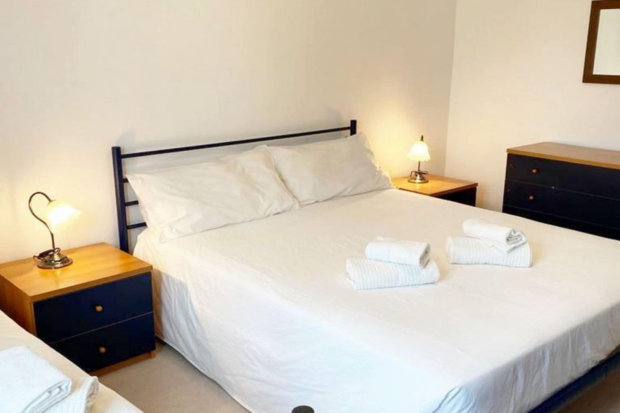 Første etasje: (åpent kjøkken(vannkoker, kaffetrakter, stekovn, oppvaskmaskin, kjøleskap, fryser, ()), Stue/spisestue(TV(satellitt), spisebord, balkon), soveværelse(dobbeltseng), soveværelse(enkeltseng, dobbeltseng), bad(dusj, håndvask, toalett, Hårtørker), Internett-tilgang) vaskemaskin, balkon, klimaanlegg, hage(inngjerdet), grill, parkering, strykejern, Hårtørker