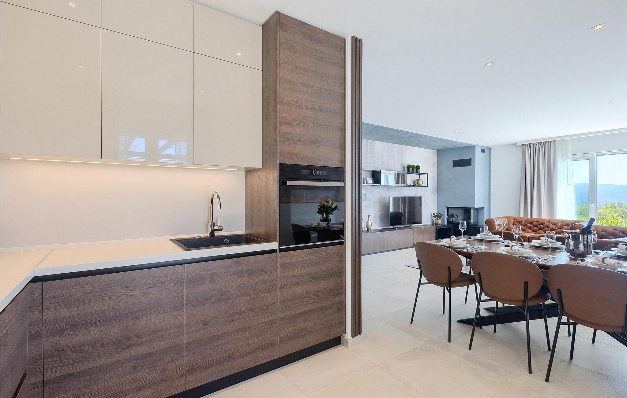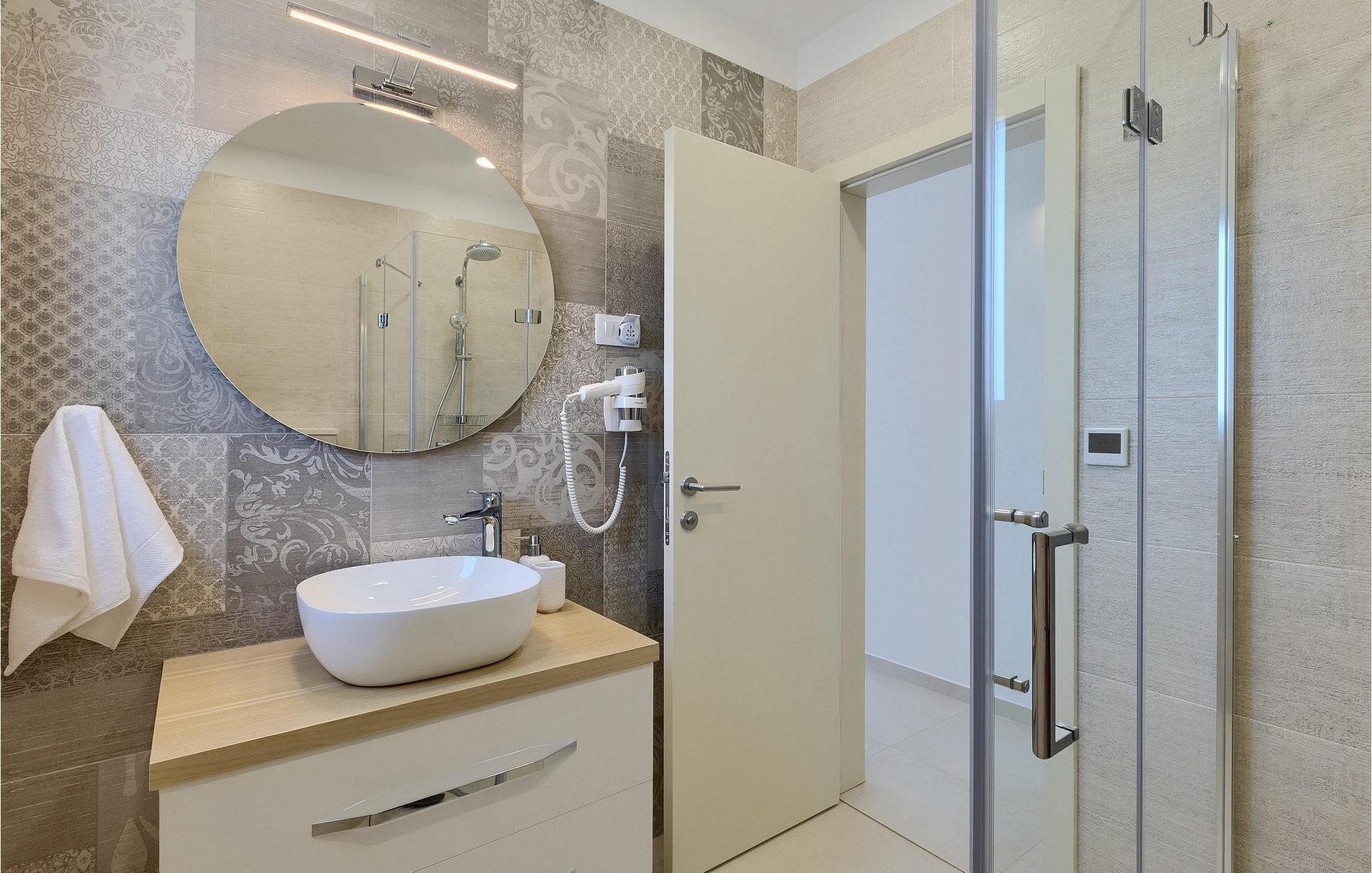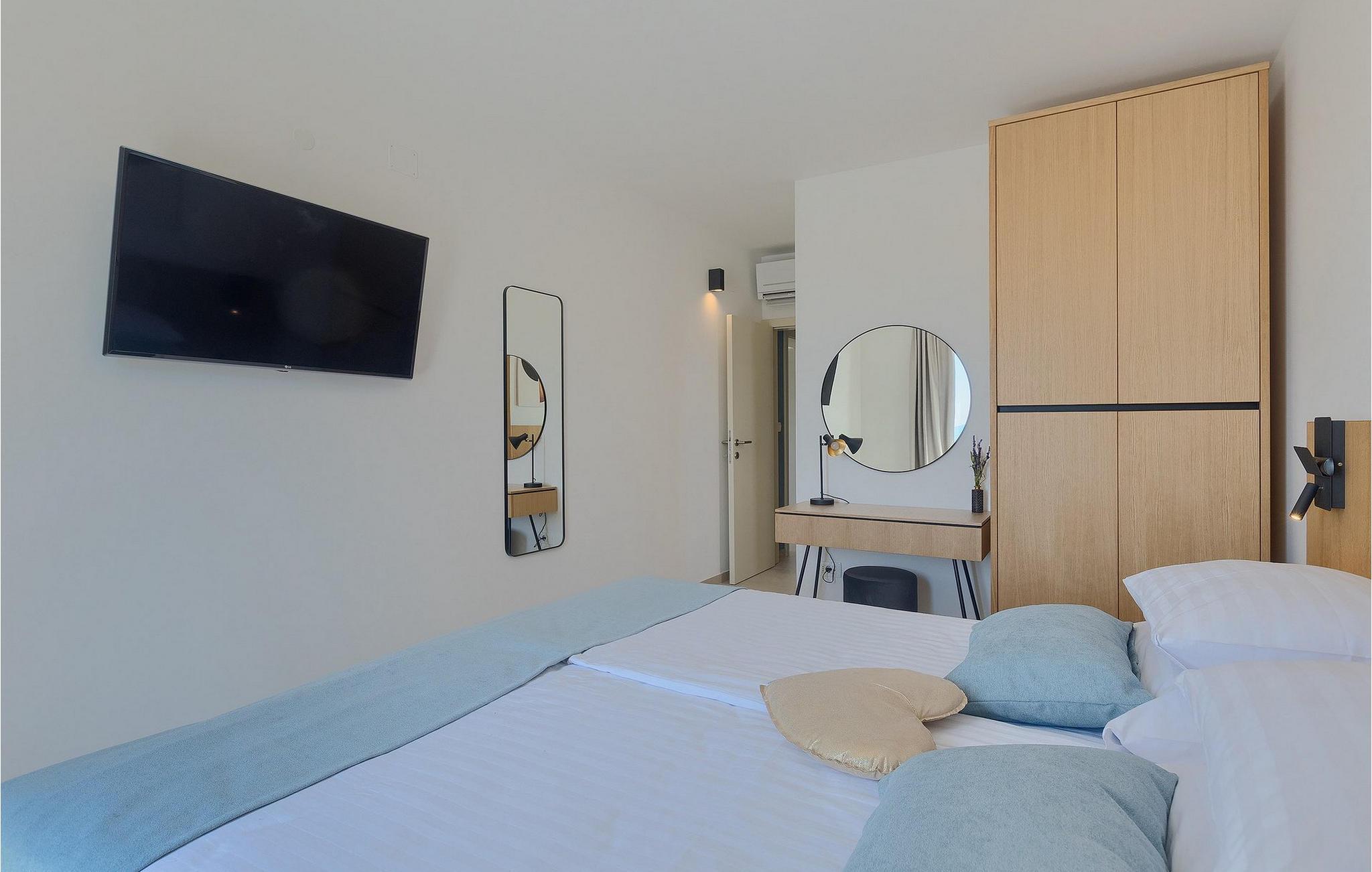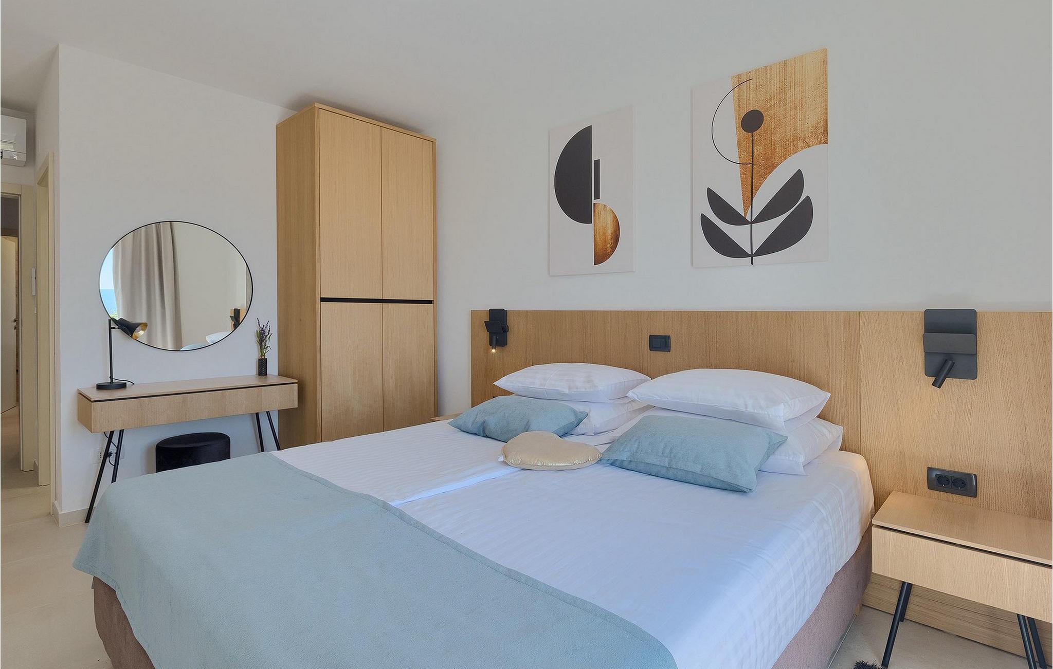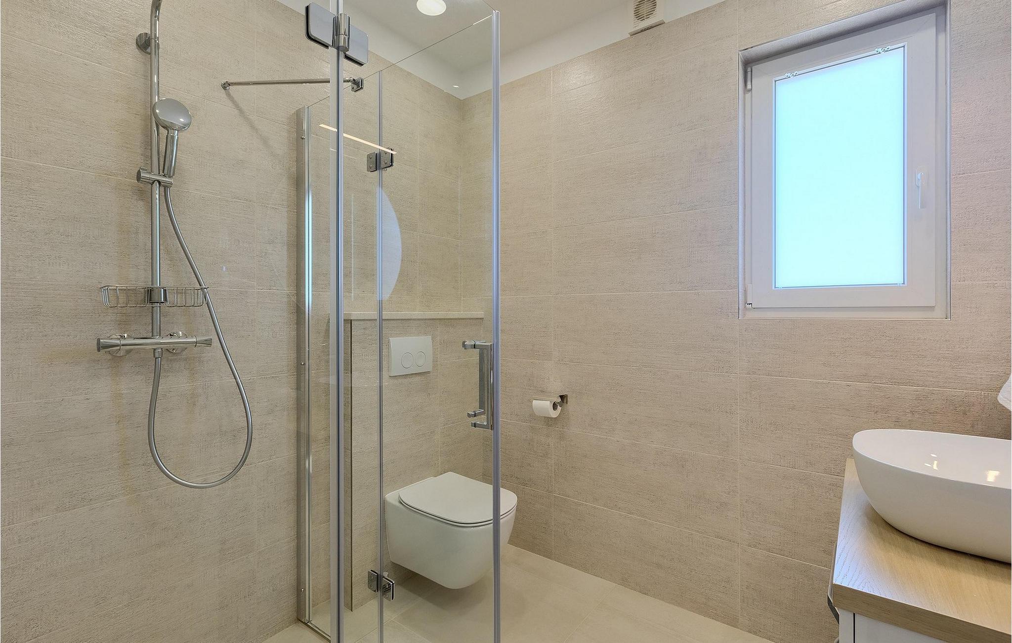 De resterende 3 soverommene, alle med eget bad, ligger i første etasje. Bestill Villa Arietta og begynn å planlegge ferien! Den vakre Villa Arietta ligger i den lille landsbyen Garica på øya Krk. Garica er en typisk øylandsby - rolig og omgitt av vakker natur. I sentrum av landsbyen ligger Peterskirken, landsbyens skytshelgen. Det finnes også noen interessante turstier i området rundt. Ikke langt fra Garica ligger Vrbnik, en by som er kjent for sin sjarm. Med sin beliggenhet på en bratt høyde, 28 kilometer fra Krk-broen, og med sine middelalderske bymurer er Vrbnik det ideelle stedet for å nyte en fantastisk utsikt over omgivelsene og havet. Byen har nesten 900 års historie bak seg - ta en tidsreise og besøk det glagolitiske og sakrale senteret eller Frankopan-festningen. Vrbnik er også kjent for Zlahtina - nyt den fine, karakteristiske smaken av den stedegne druesorten. Strendene er også verdt å nevne. Finn en som oppfyller dine kriterier og slapp av!