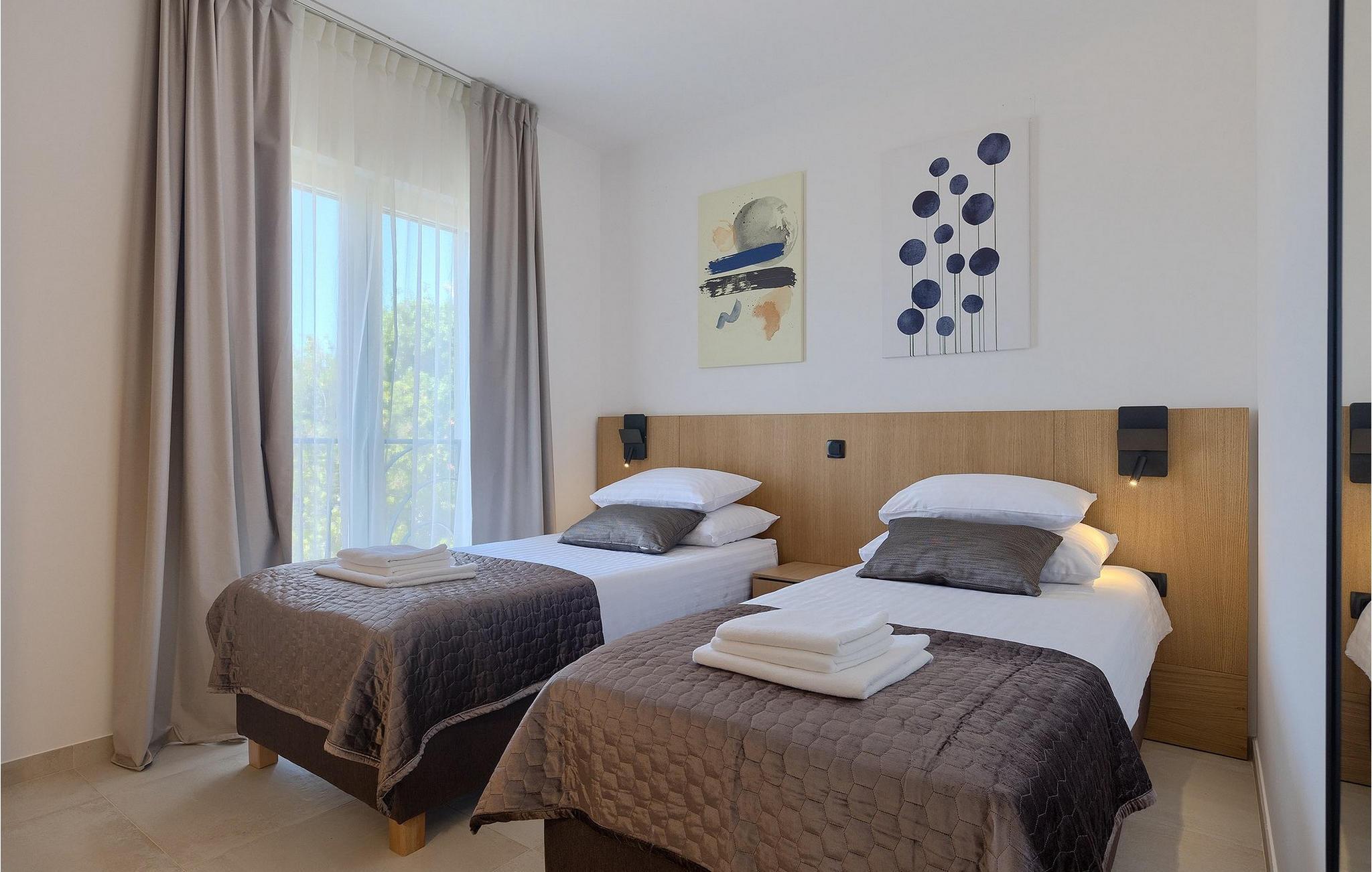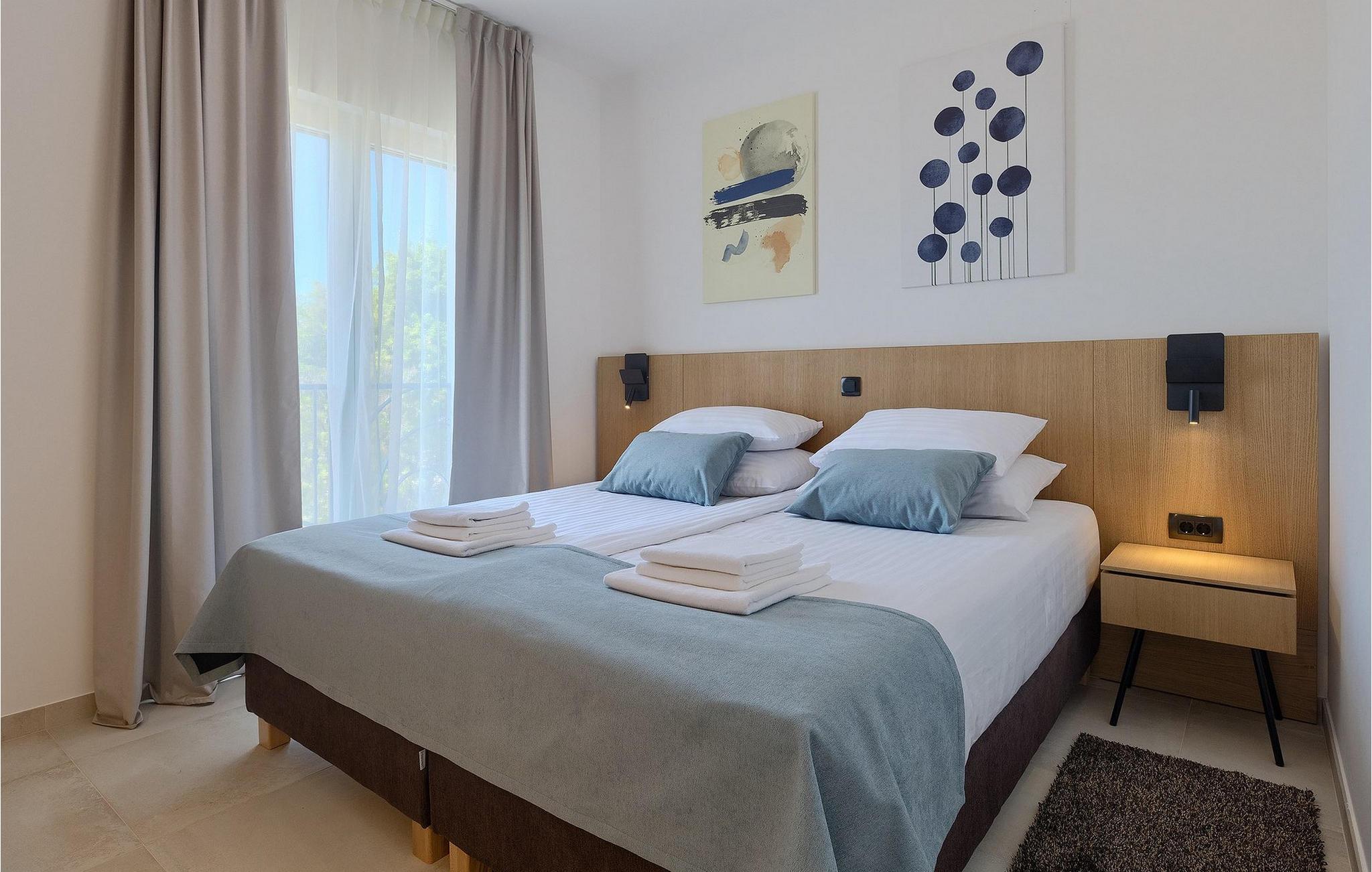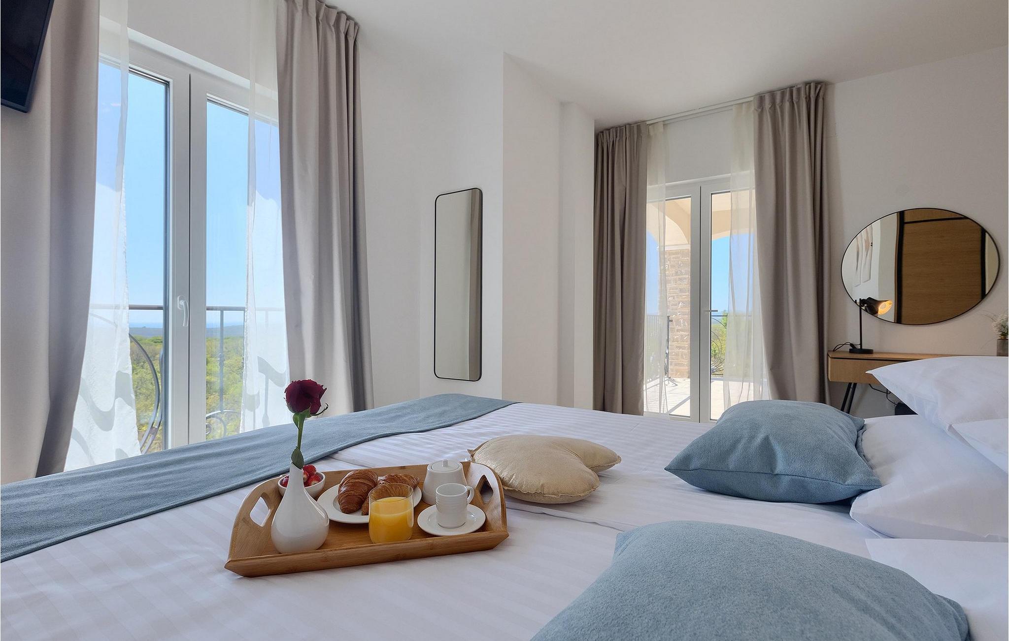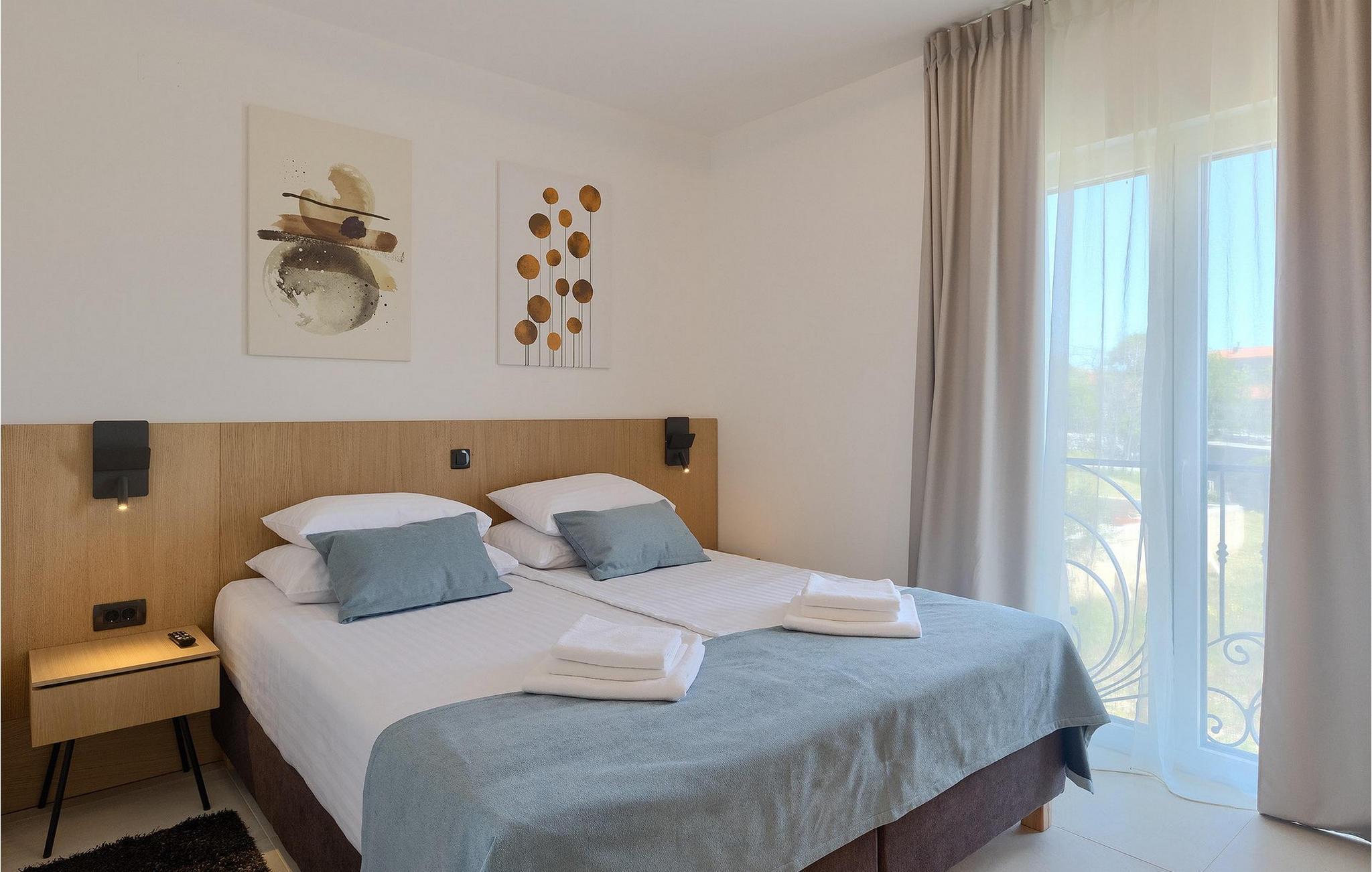 De resterende 3 soverommene, alle med eget bad, ligger i første etasje. Bestill Villa Arietta og begynn å planlegge ferien! Den vakre Villa Arietta ligger i den lille landsbyen Garica på øya Krk. Garica er en typisk øylandsby - rolig og omgitt av vakker natur. I sentrum av landsbyen ligger Peterskirken, landsbyens skytshelgen. Det finnes også noen interessante turstier i området rundt. Ikke langt fra Garica ligger Vrbnik, en by som er kjent for sin sjarm. Med sin beliggenhet på en bratt høyde, 28 kilometer fra Krk-broen, og med sine middelalderske bymurer er Vrbnik det ideelle stedet for å nyte en fantastisk utsikt over omgivelsene og havet. Byen har nesten 900 års historie bak seg - ta en tidsreise og besøk det glagolitiske og sakrale senteret eller Frankopan-festningen. Vrbnik er også kjent for Zlahtina - nyt den fine, karakteristiske smaken av den stedegne druesorten. Strendene er også verdt å nevne. Finn en som oppfyller dine kriterier og slapp av!