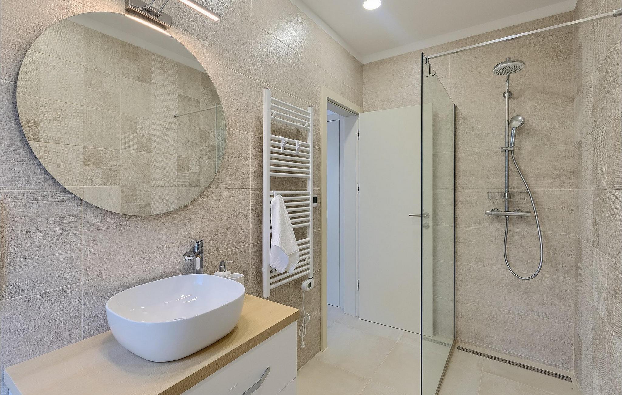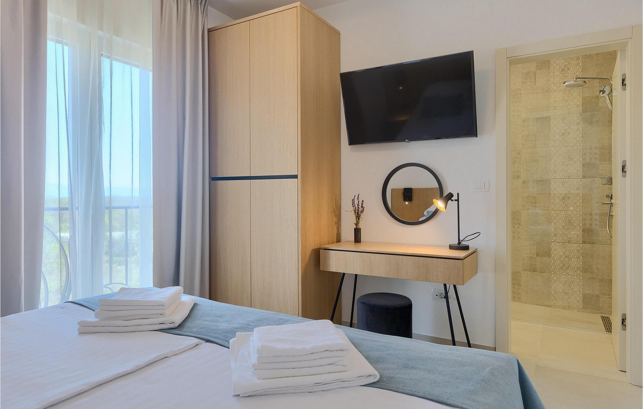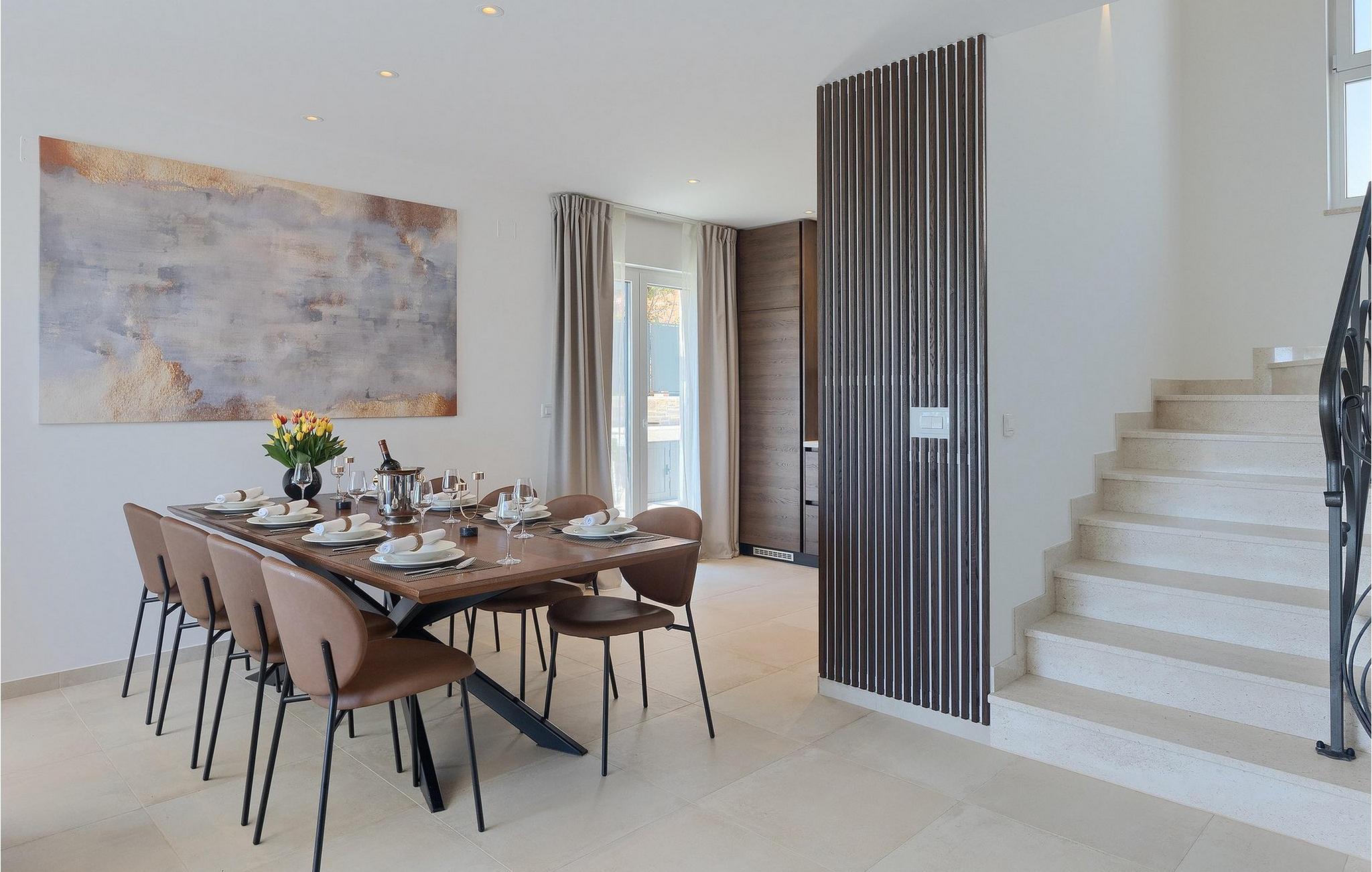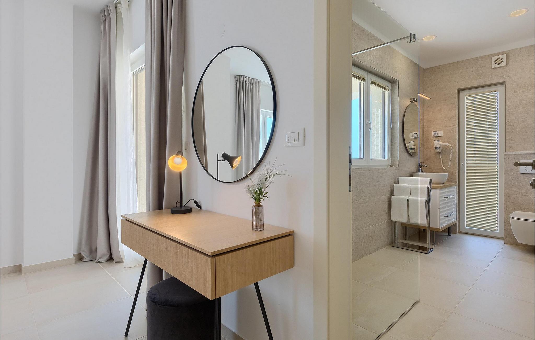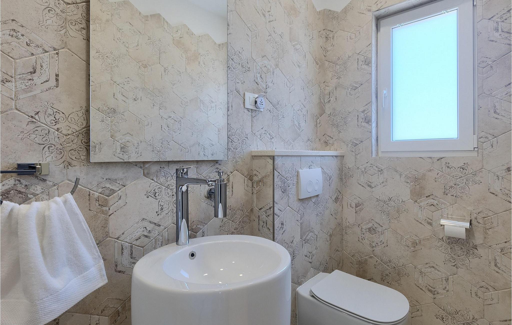 De resterende 3 soverommene, alle med eget bad, ligger i første etasje. Bestill Villa Arietta og begynn å planlegge ferien! Den vakre Villa Arietta ligger i den lille landsbyen Garica på øya Krk. Garica er en typisk øylandsby - rolig og omgitt av vakker natur. I sentrum av landsbyen ligger Peterskirken, landsbyens skytshelgen. Det finnes også noen interessante turstier i området rundt. Ikke langt fra Garica ligger Vrbnik, en by som er kjent for sin sjarm. Med sin beliggenhet på en bratt høyde, 28 kilometer fra Krk-broen, og med sine middelalderske bymurer er Vrbnik det ideelle stedet for å nyte en fantastisk utsikt over omgivelsene og havet. Byen har nesten 900 års historie bak seg - ta en tidsreise og besøk det glagolitiske og sakrale senteret eller Frankopan-festningen. Vrbnik er også kjent for Zlahtina - nyt den fine, karakteristiske smaken av den stedegne druesorten. Strendene er også verdt å nevne. Finn en som oppfyller dine kriterier og slapp av!