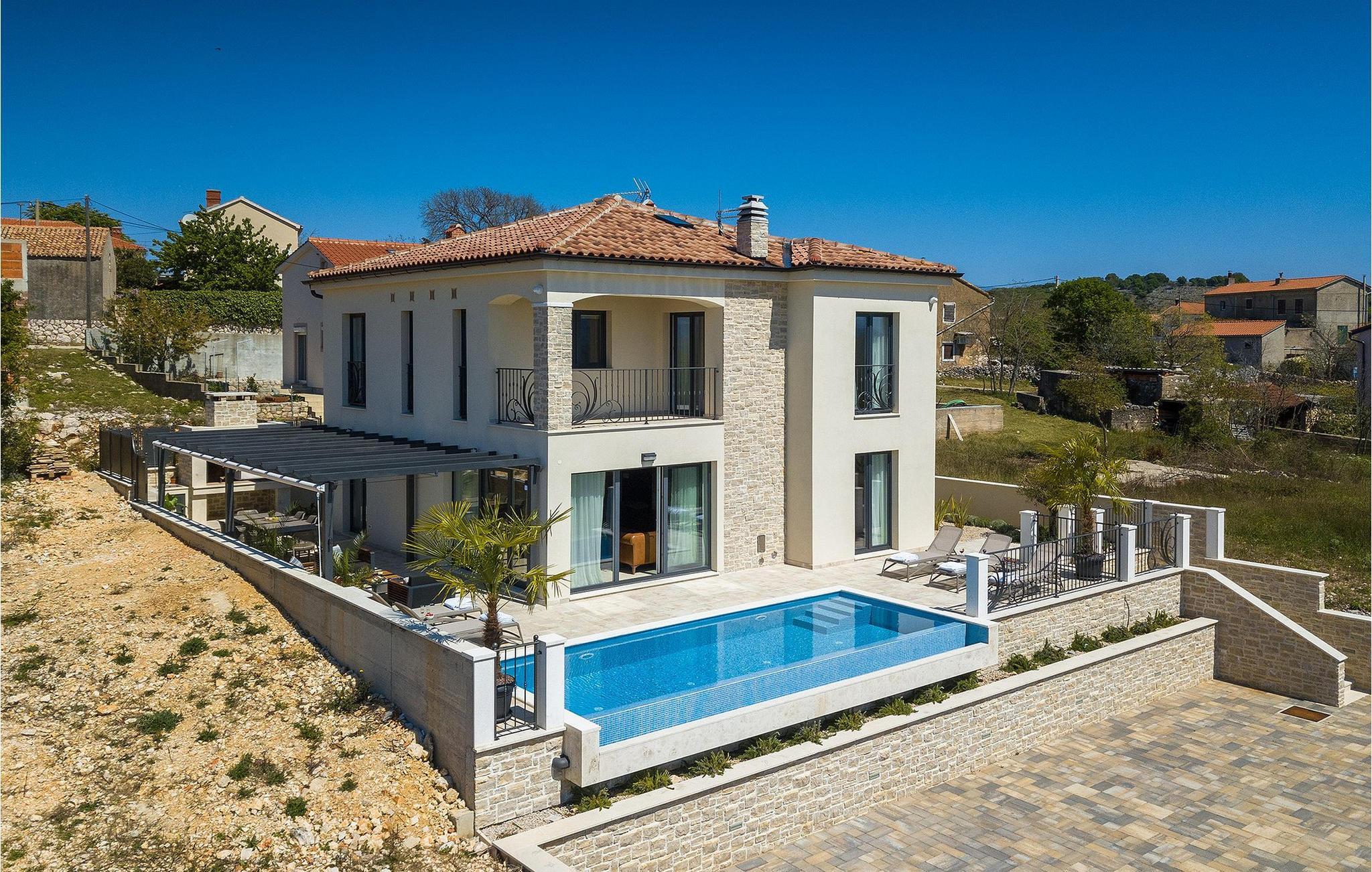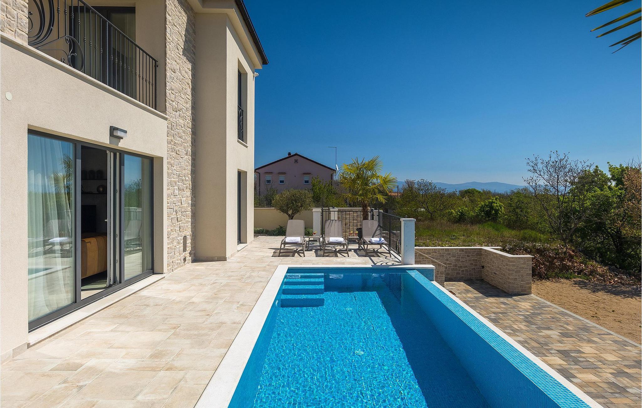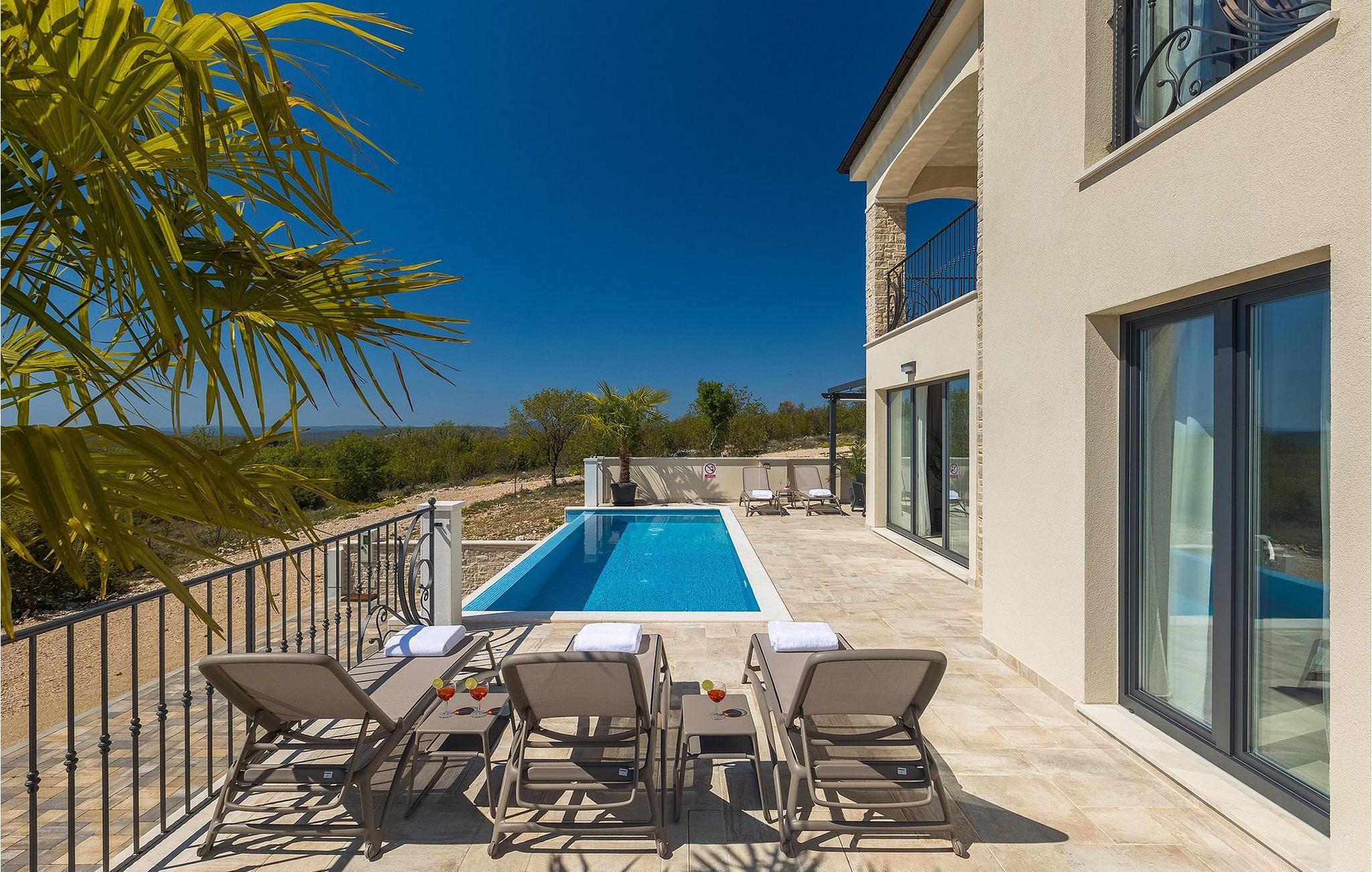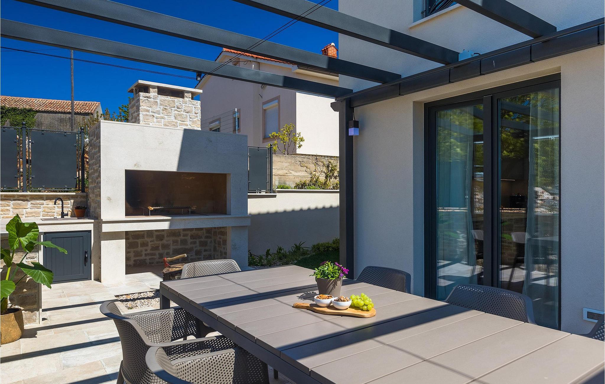 Villa Arietta er en fantastisk, moderne villa på den fortryllende øya Krk. Hvis du er på utkikk etter et sted der du kan slappe av og la hverdagens bekymringer ligge igjen hjemme, er dette det rette valget for deg! Villaen ligger i utkanten av landsbyen Garica, noe som gir deg muligheten til å nyte den fantastiske utsikten over omgivelsene uforstyrret fra terrassen eller, enda bedre, fra ditt eget basseng. Utenfor er det også en koselig sittegruppe hvor du kan slappe av i skyggen. Villaen har også en overbygd uteservering og en stor kullgrill hvor du kan sette kokkeferdighetene dine på prøve.