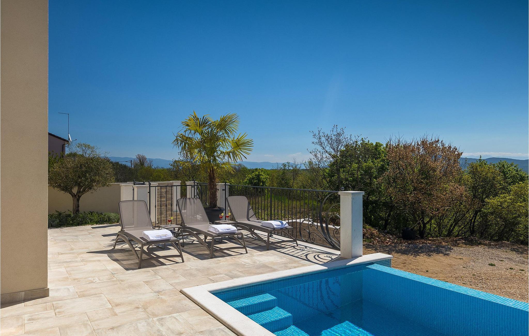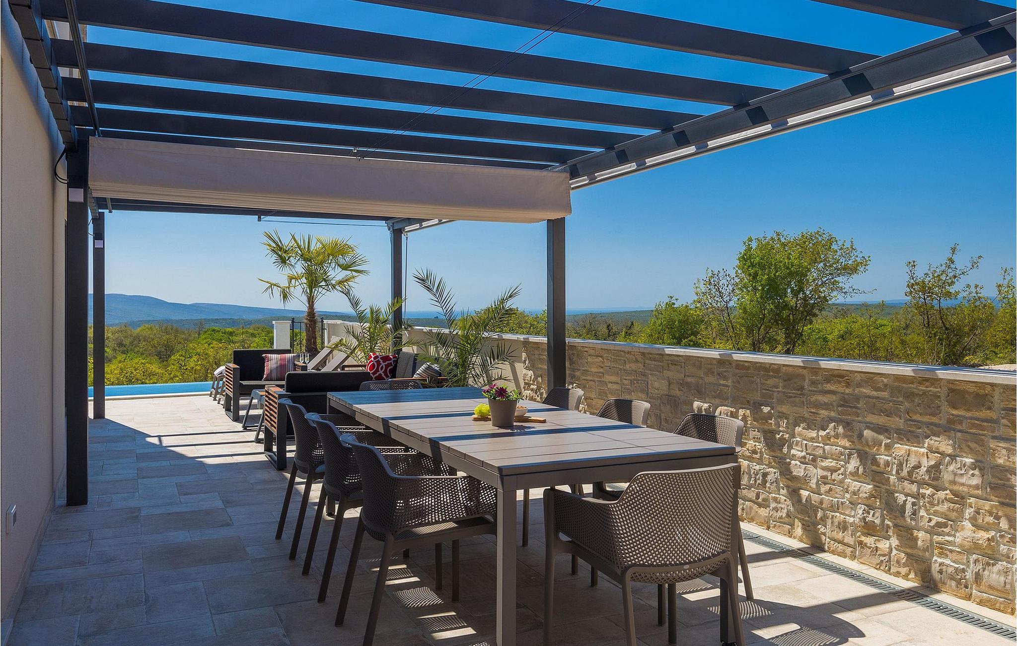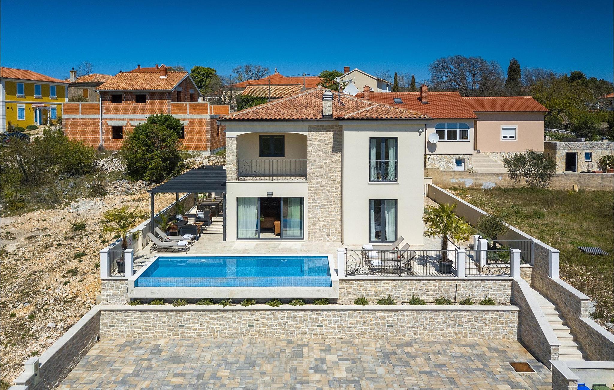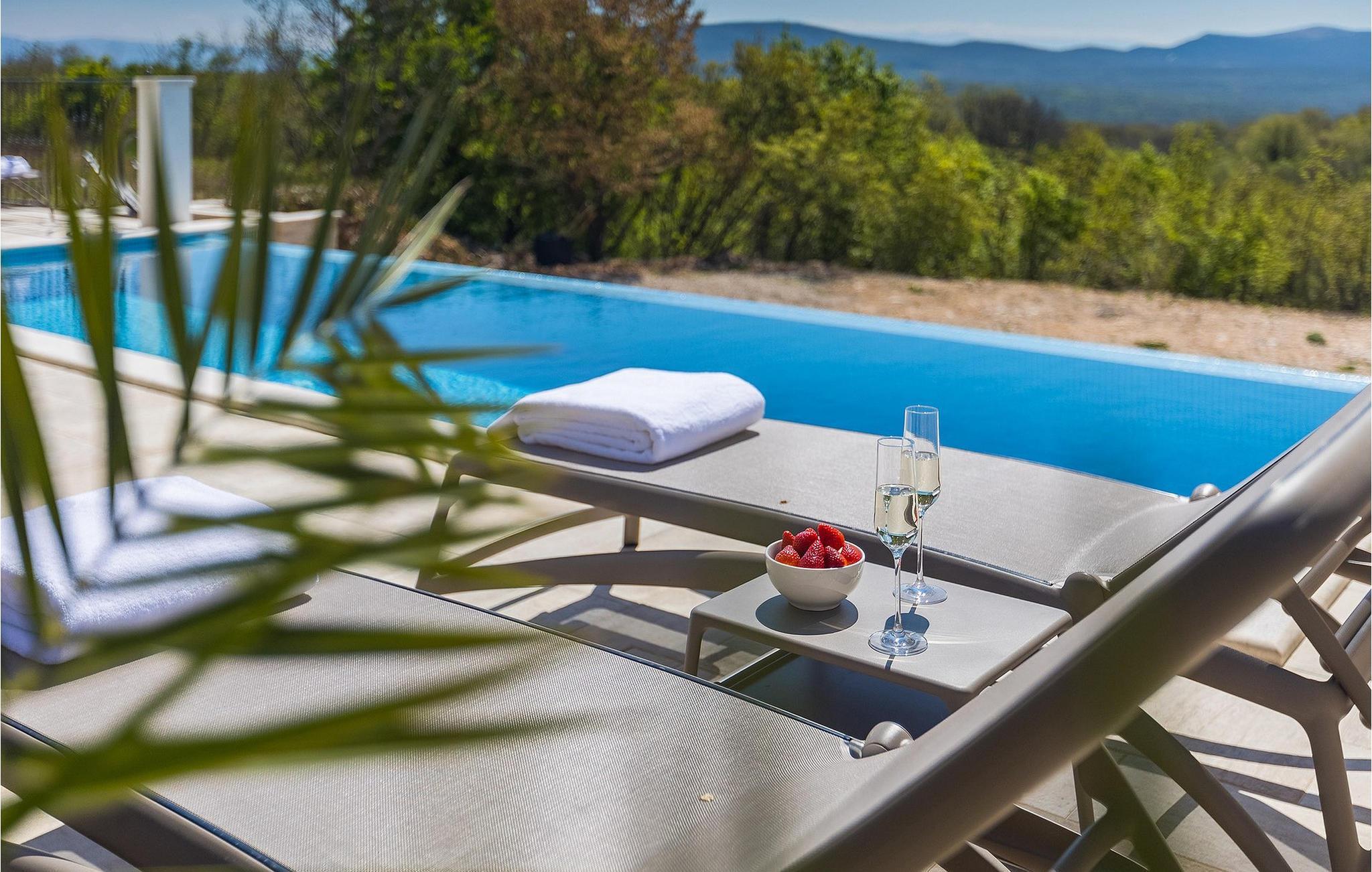 Villa Arietta er en fantastisk, moderne villa på den fortryllende øya Krk. Hvis du er på utkikk etter et sted der du kan slappe av og la hverdagens bekymringer ligge igjen hjemme, er dette det rette valget for deg! Villaen ligger i utkanten av landsbyen Garica, noe som gir deg muligheten til å nyte den fantastiske utsikten over omgivelsene uforstyrret fra terrassen eller, enda bedre, fra ditt eget basseng. Utenfor er det også en koselig sittegruppe hvor du kan slappe av i skyggen. Villaen har også en overbygd uteservering og en stor kullgrill hvor du kan sette kokkeferdighetene dine på prøve.