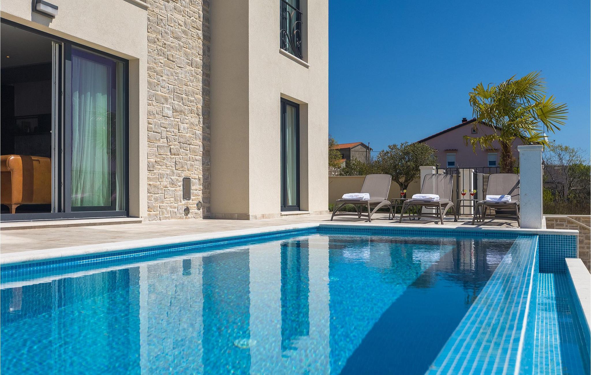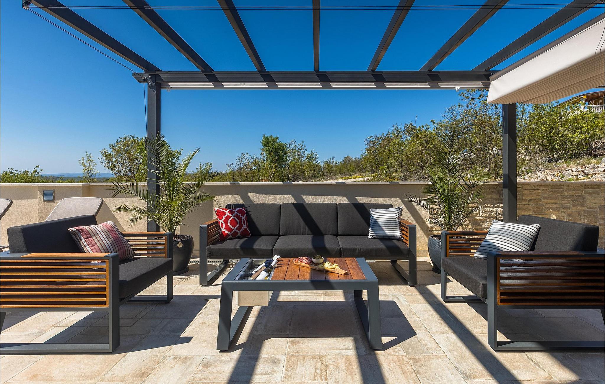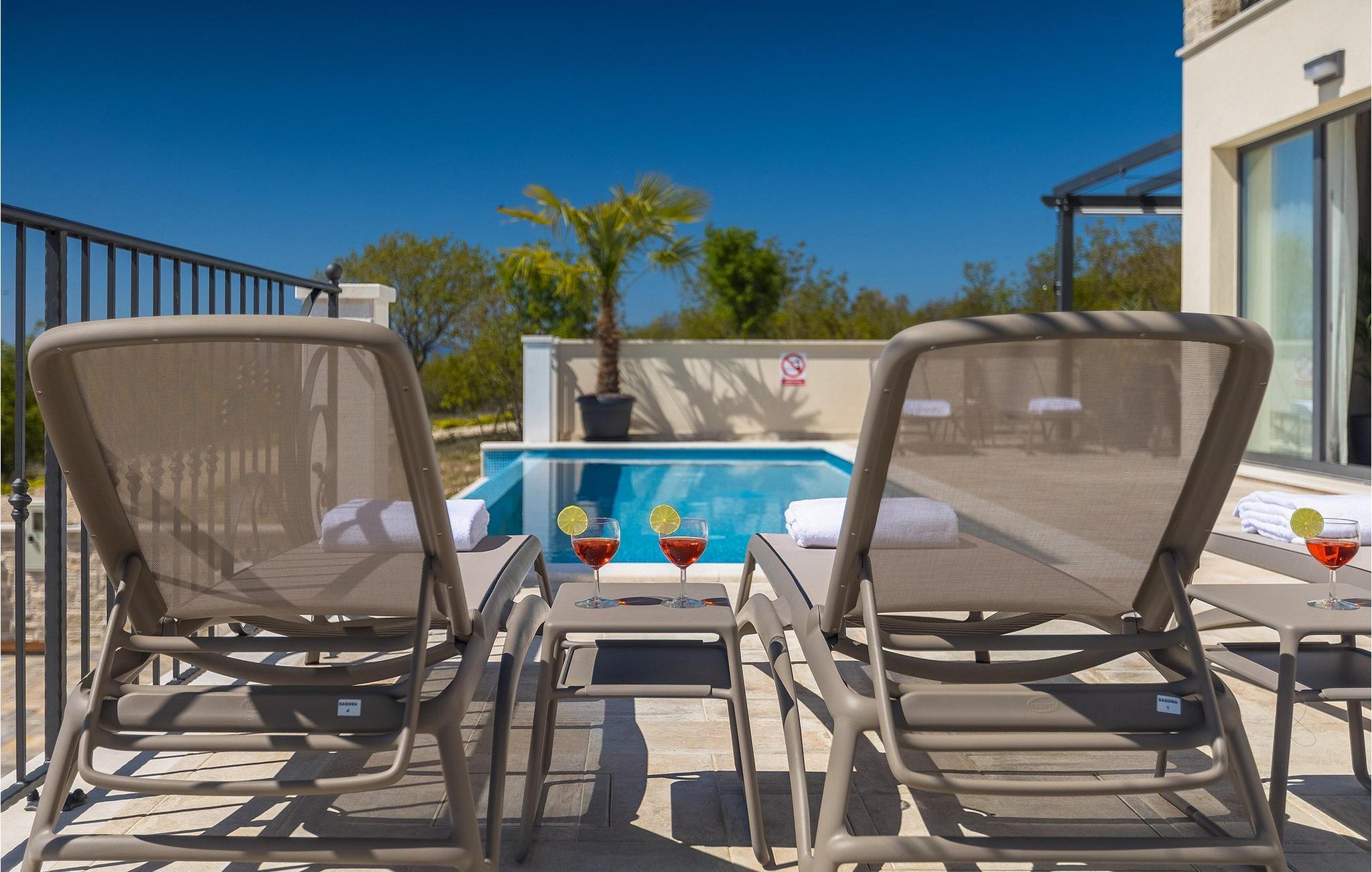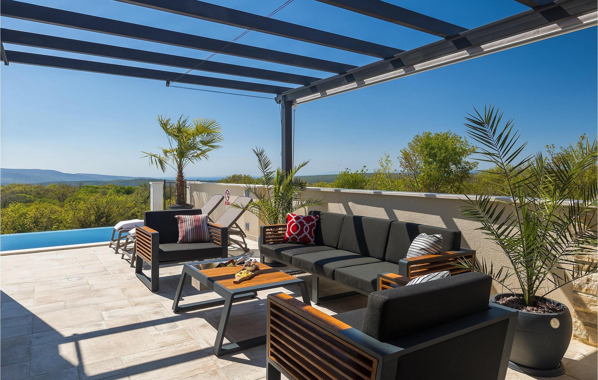 Villa Arietta er en fantastisk, moderne villa på den fortryllende øya Krk. Hvis du er på utkikk etter et sted der du kan slappe av og la hverdagens bekymringer ligge igjen hjemme, er dette det rette valget for deg! Villaen ligger i utkanten av landsbyen Garica, noe som gir deg muligheten til å nyte den fantastiske utsikten over omgivelsene uforstyrret fra terrassen eller, enda bedre, fra ditt eget basseng. Utenfor er det også en koselig sittegruppe hvor du kan slappe av i skyggen. Villaen har også en overbygd uteservering og en stor kullgrill hvor du kan sette kokkeferdighetene dine på prøve.