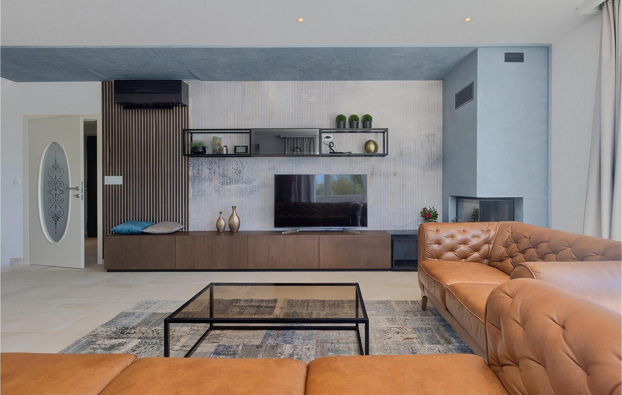 Villaen har 3 etasjer. I kjelleren finner du ditt eget treningsstudio, slik at du kan holde deg i aktivitet mens du er på ferie. Hvis du ikke liker å trene, er det bare å gå ovenpå og nyte stereoanlegget og PS4 i stuen. Første etasje har åpen planløsning og består av stue, fullt utstyrt kjøkken og spiseplass med utsikt over bassenget. I første etasje ligger også ett av de koselige soverommene med eget bad.