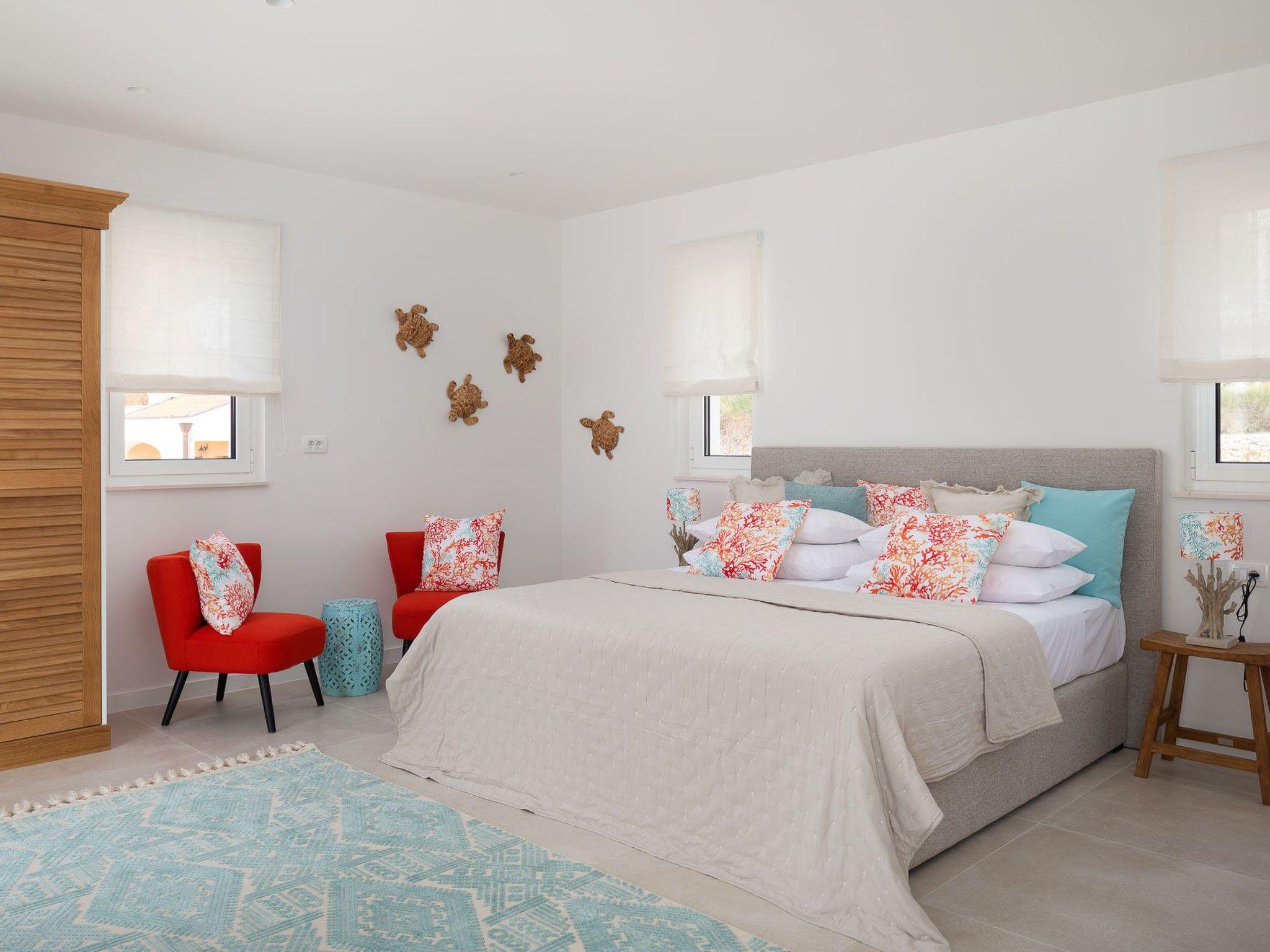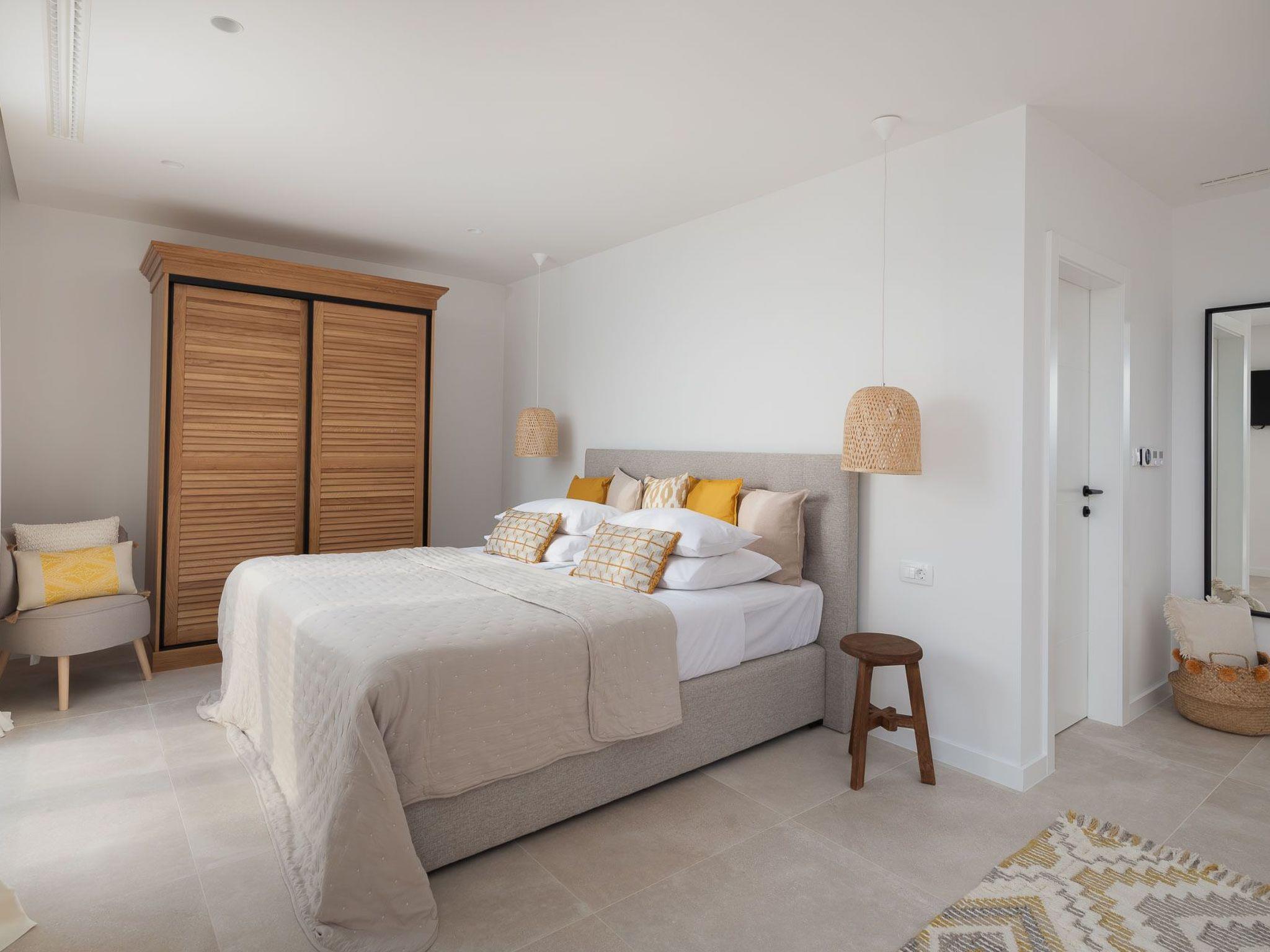 The area surrounding the villa is fully fenced, ensuring complete privacy for up to 14 guests, so if you have a large family, this villa is the perfect choice for you. There are 6 bedrooms in the villa, each with an en-suite bathroom, air conditioning, and a TV, as well as a baby cot. A fully equipped kitchen and a spacious living room are also available for use after lunch. In the pool house next to the villa you have a bedroom, living room and kitchen.