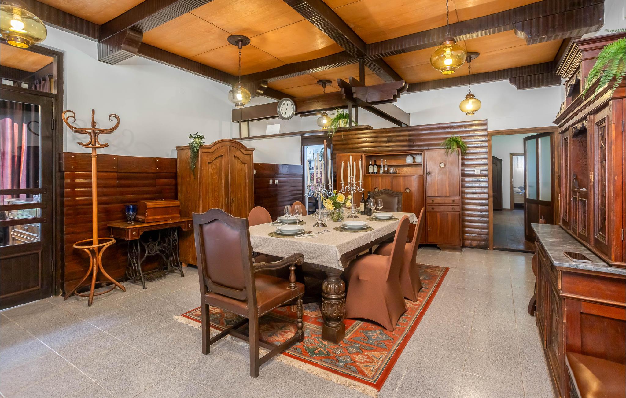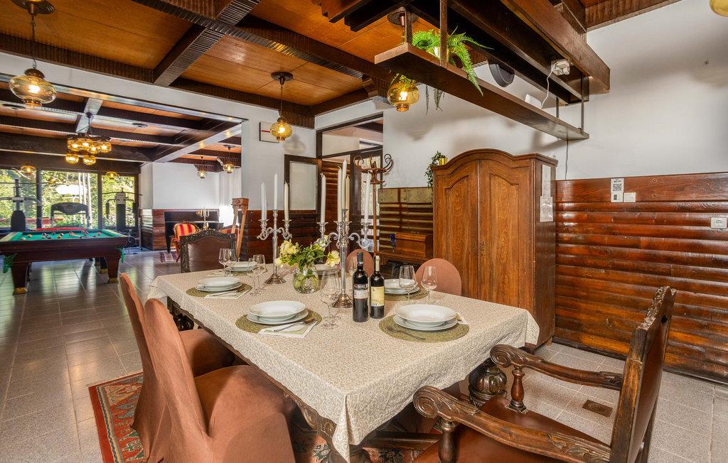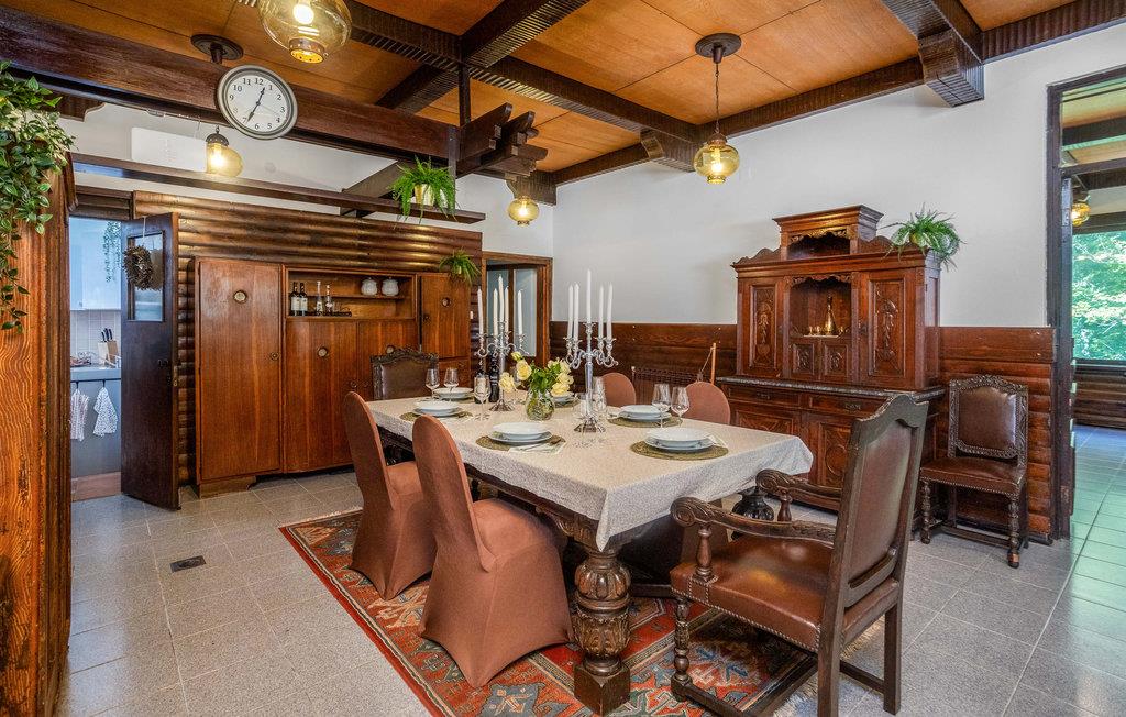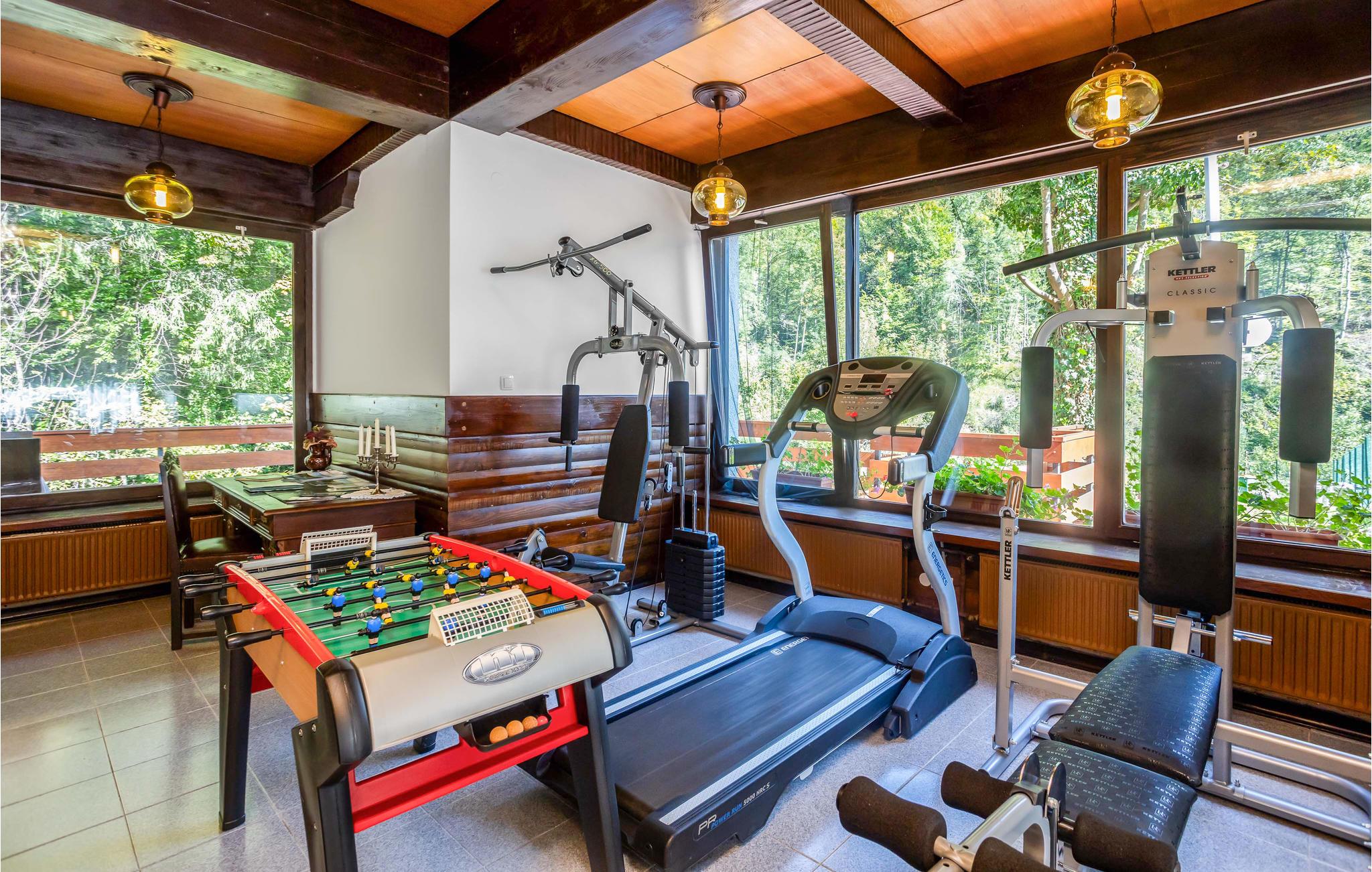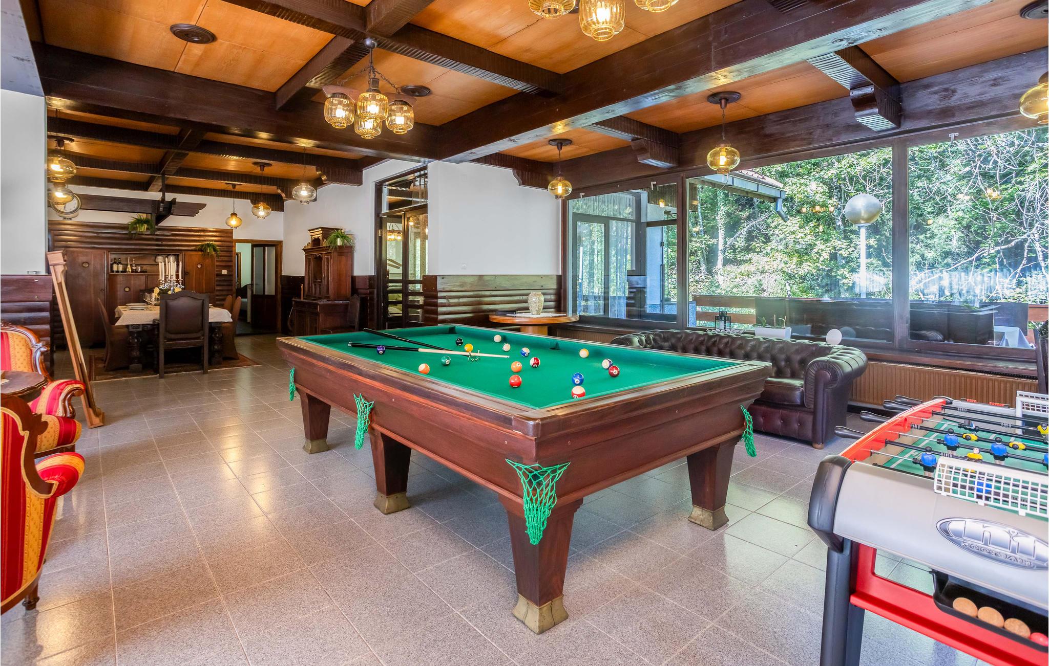 Velkommen til dette vakre feriehuset som med sine tretak, solide tremøbler og mange fasiliteter lover en uforglemmelig ferie. Oppdag de store rommene med mange vinduer som er fylt med naturlig lys. Enten du vil trene, spille biljard eller bare kose deg i sofaene, finner du det rette rommet for deg og dine nærmeste. Du kan også nyte tiden utendørs, enten du vil spise, grille eller sole deg, og du kan velge mellom to terrasser. Lytt til fossefallene i elven, som har sitt utspring bare noen få meter unna.