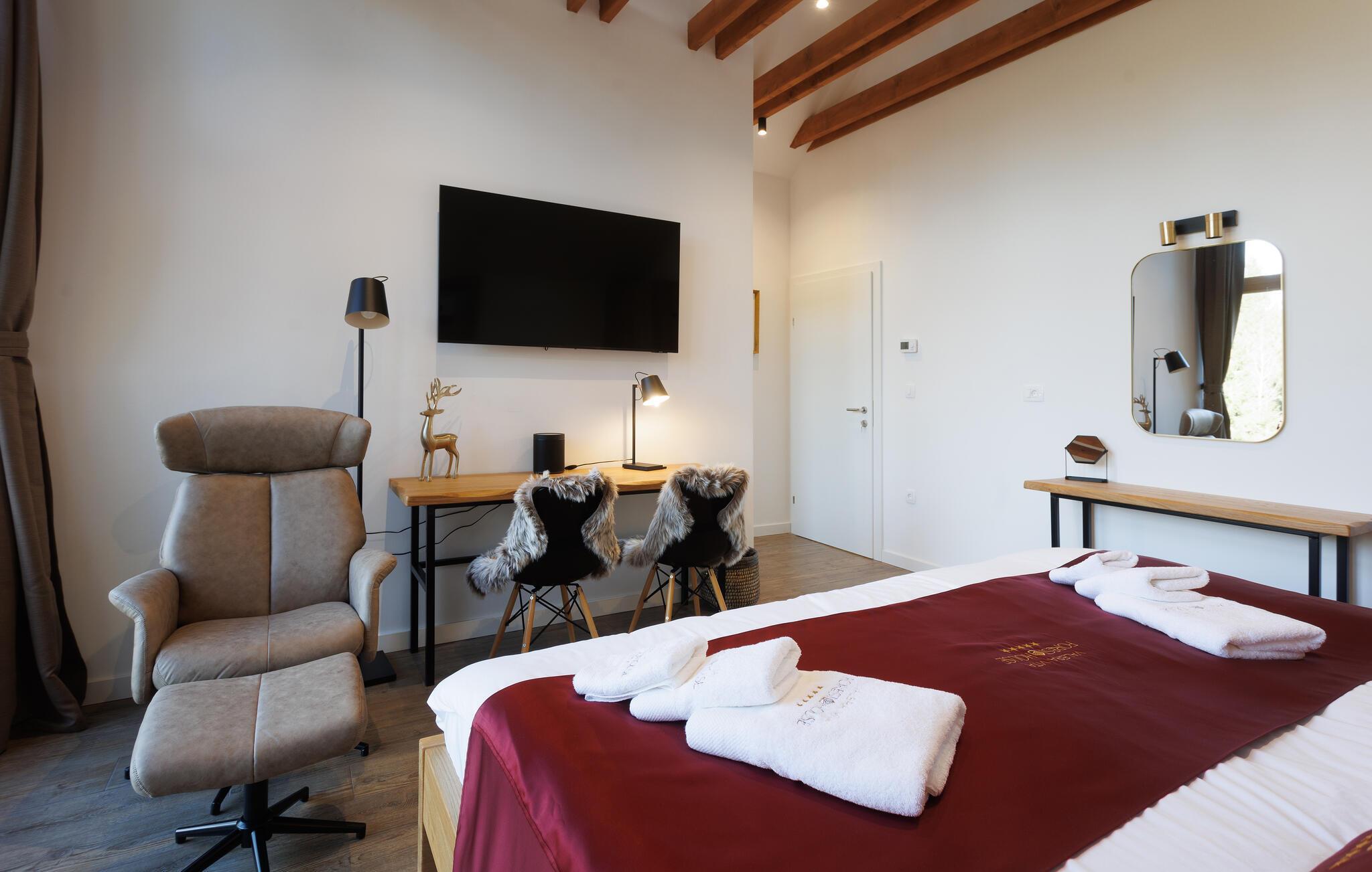 Dette oppsiktsvekkende feriehuset lar ikke noe tilbake å ønske. Her kan du nyte harmoniske måltider og sosialt samvær i rolige, idylliske omgivelser. Unn deg koselige stunder i badstuen eller boblebadet, hold deg i form på ergometersykkelen eller spill et slag biljard eller bordfotball. Ta en prat over en cocktail i hotellets bar, eller se favorittseriene dine på nett.