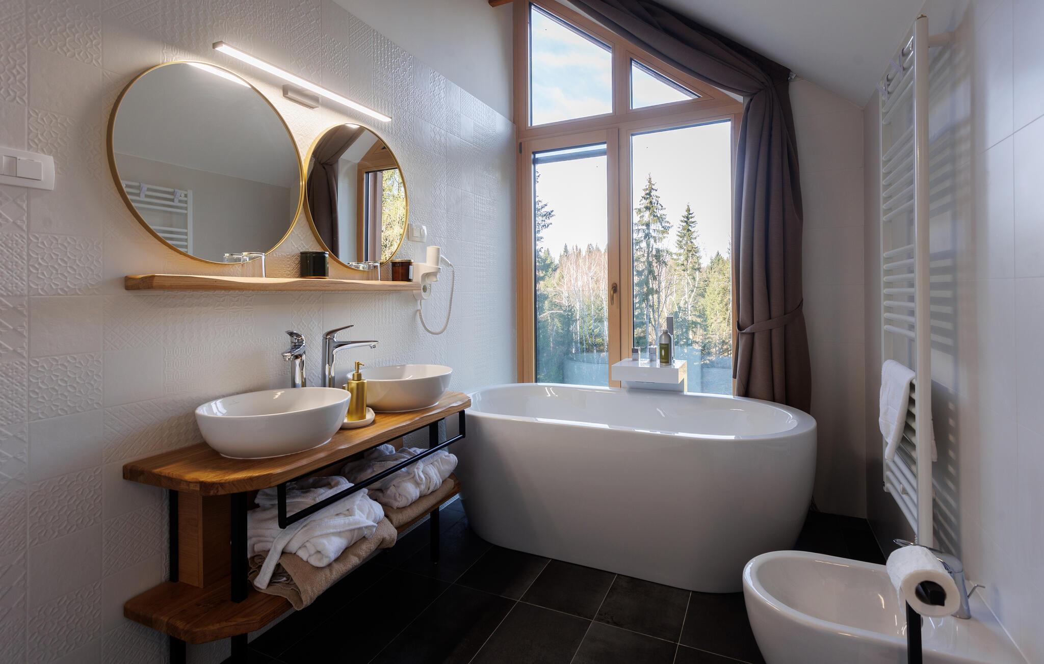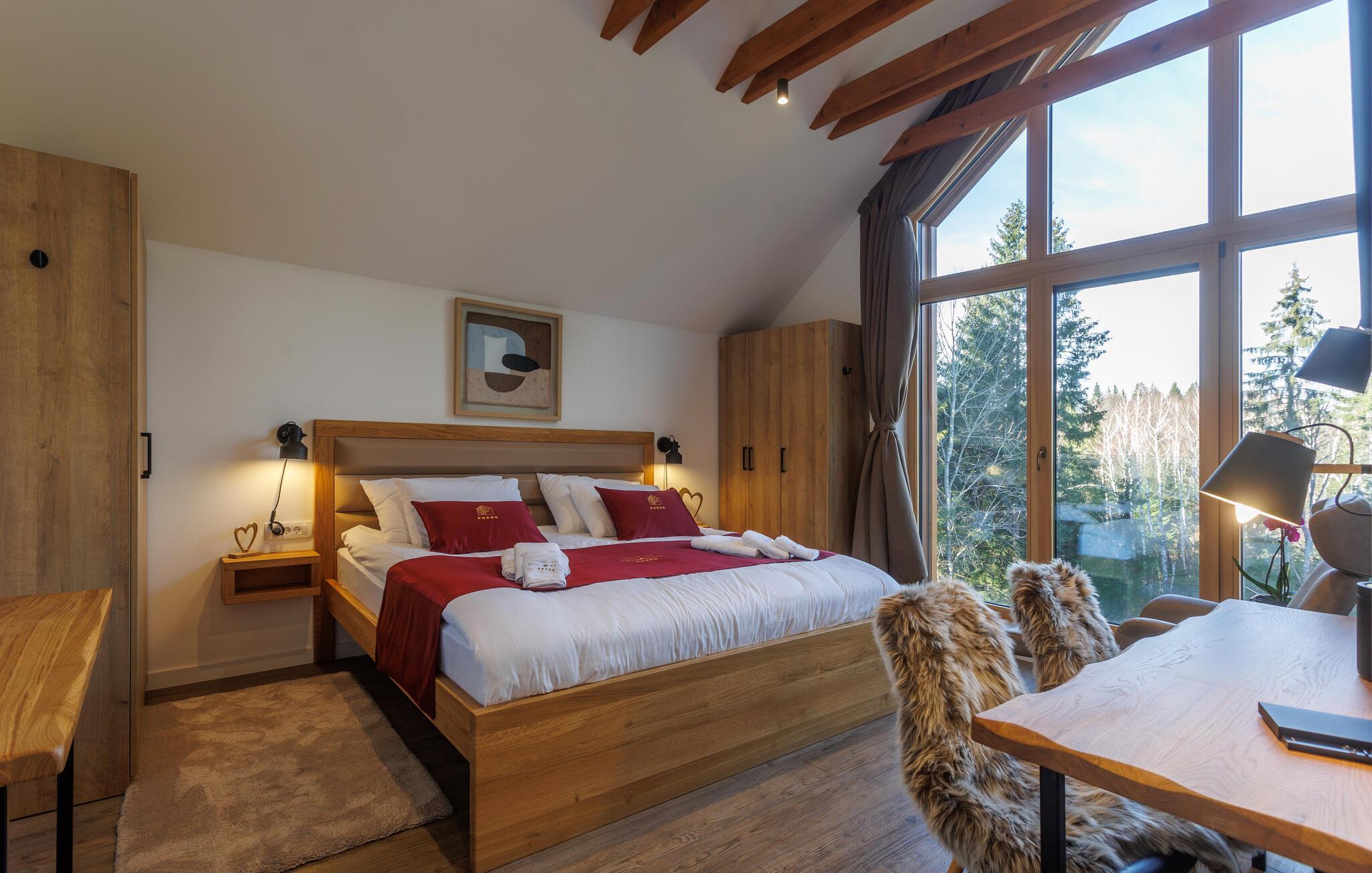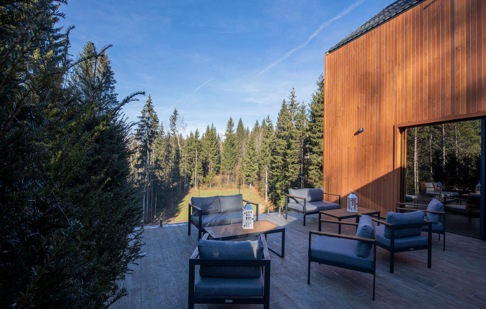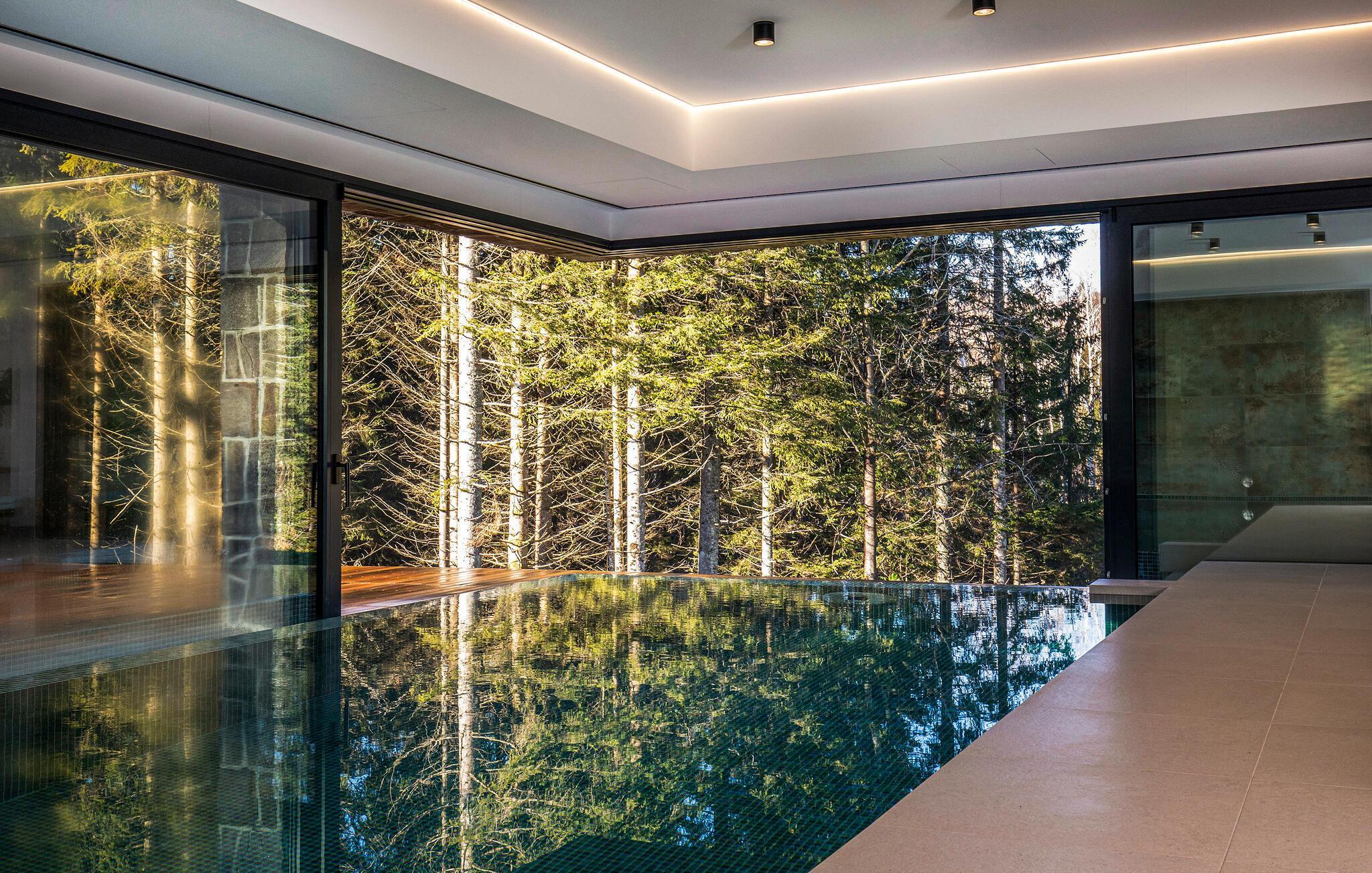 Det vakre bassenget, der du kan slappe av med utsikt over skogen, kan brukes enten åpent eller lukket. Pust inn den friske skogsluften på terrassen etter en koselig svømmetur, og nyt den fredelige atmosfæren.