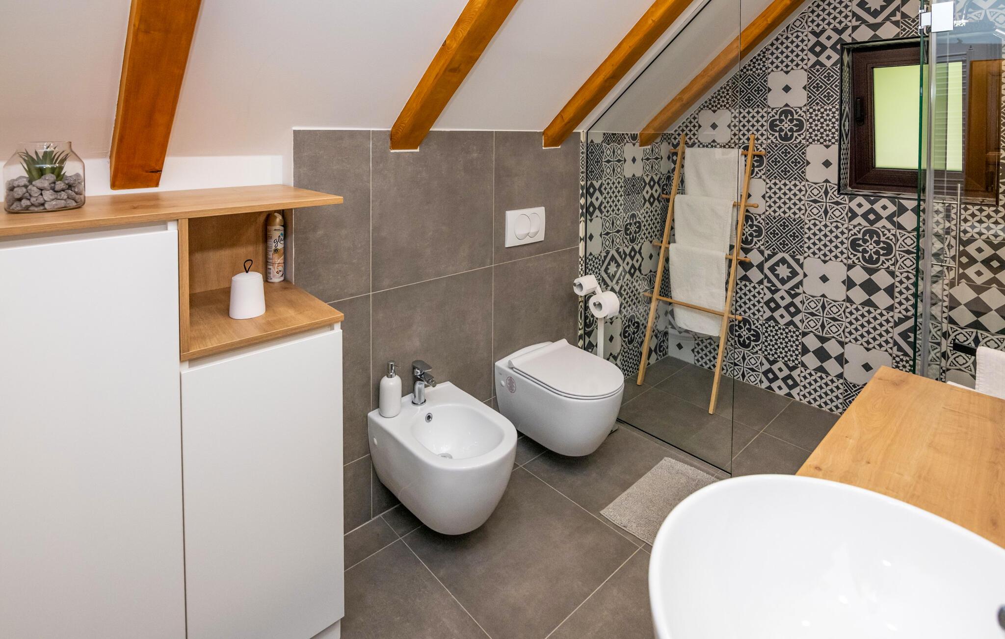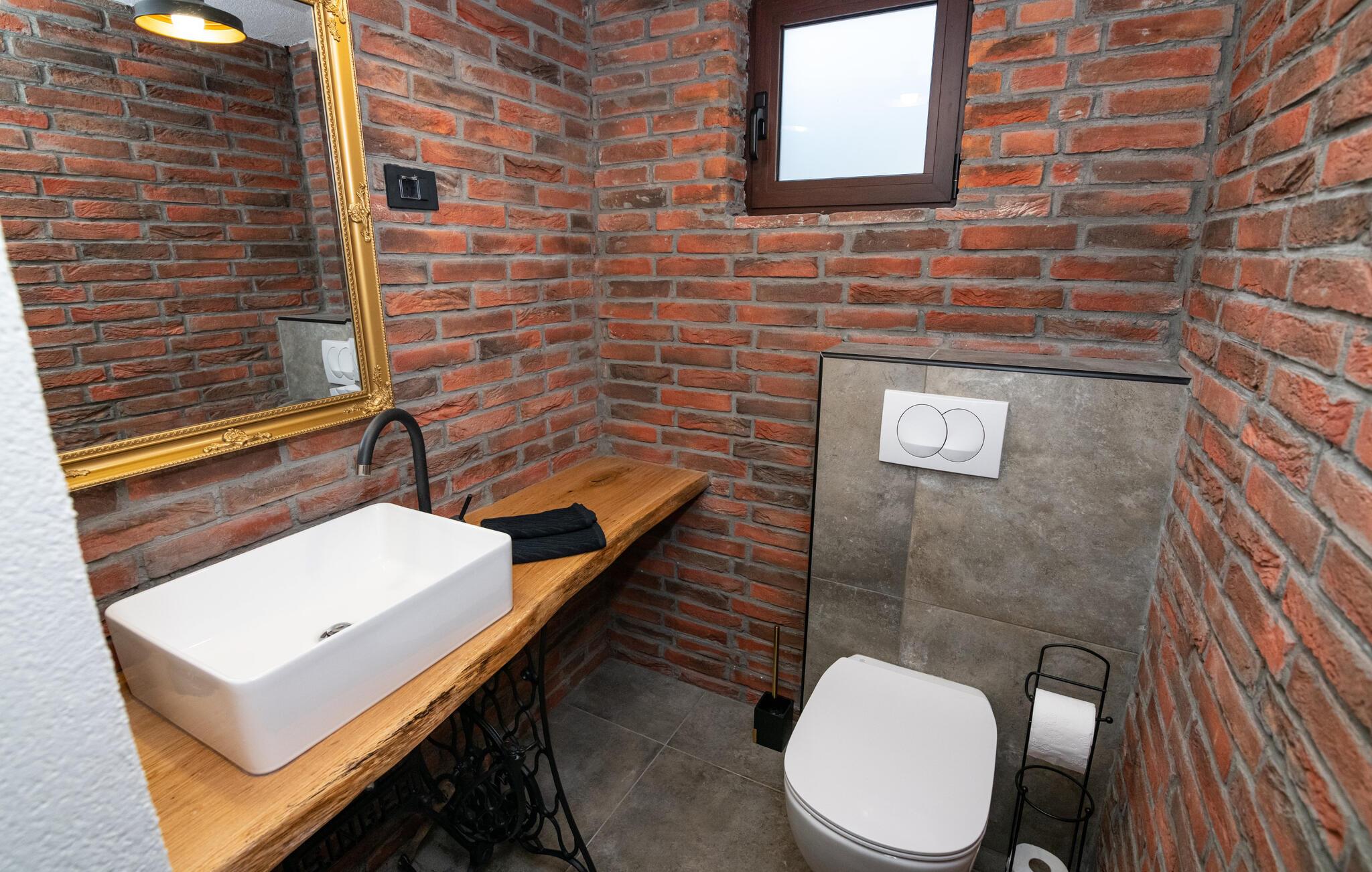 - WC med varmt og kaldt vann, Dusj