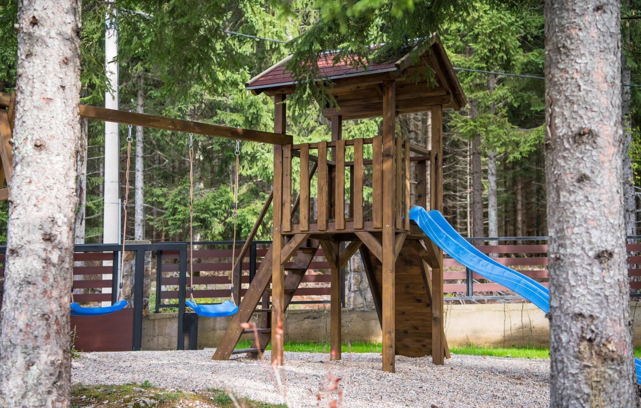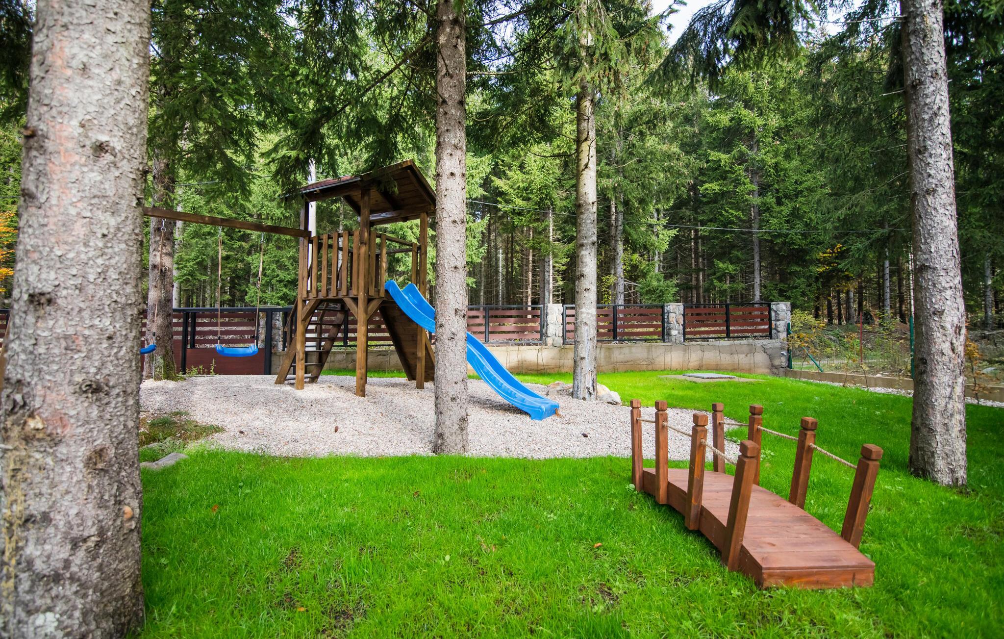 Gå ut om morgenen med en kopp fersk kaffe og nyt roen i naturen. Bassenget innbyr alltid til en dukkert eller et slag vannpolo. Tilbring avslappende timer med en prat på terrassen eller fordyp deg i en god bok. I mellomtiden kan barna klatre, skli og gynge i lekehuset.