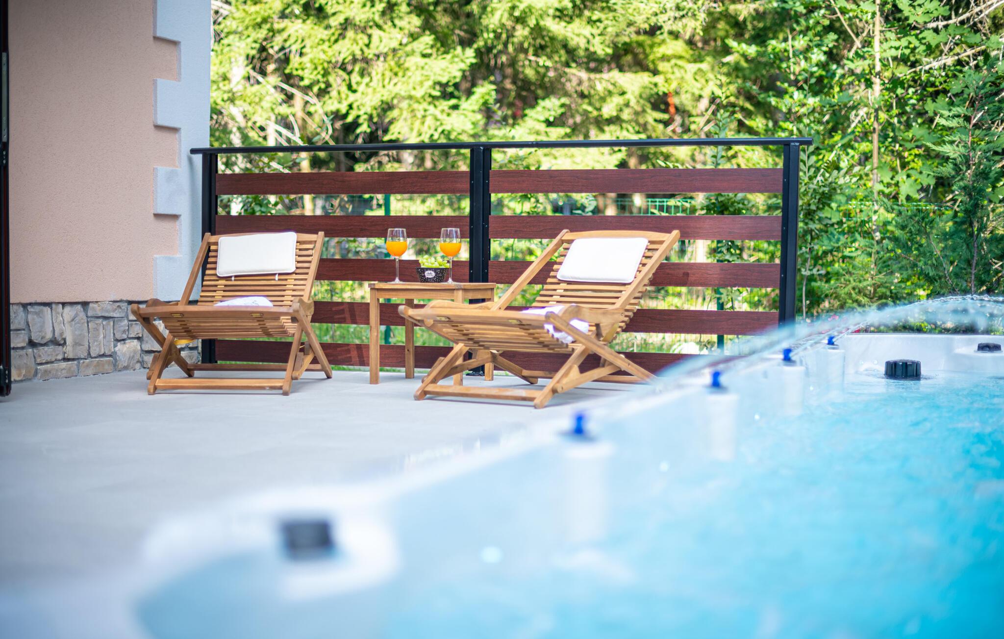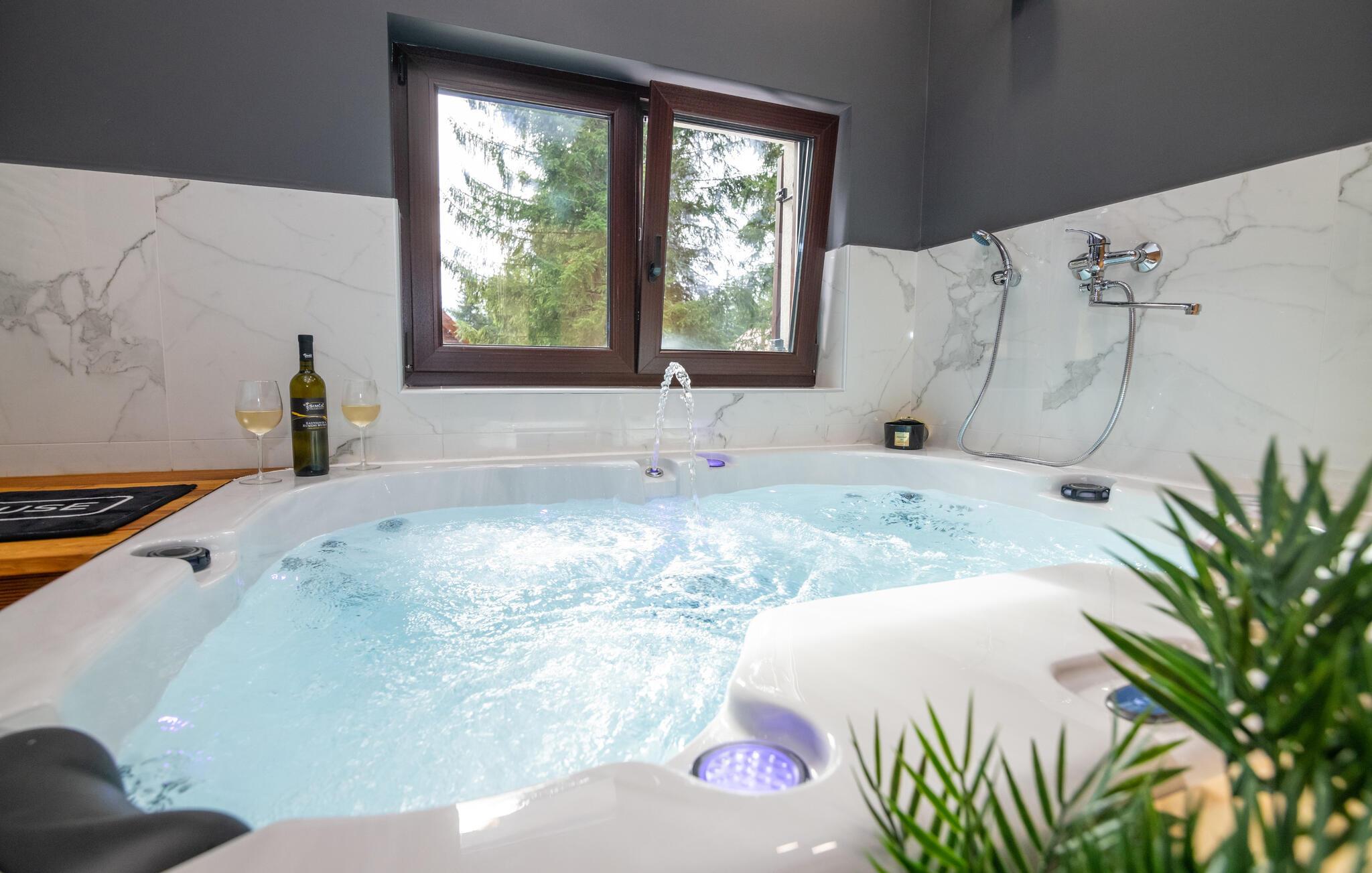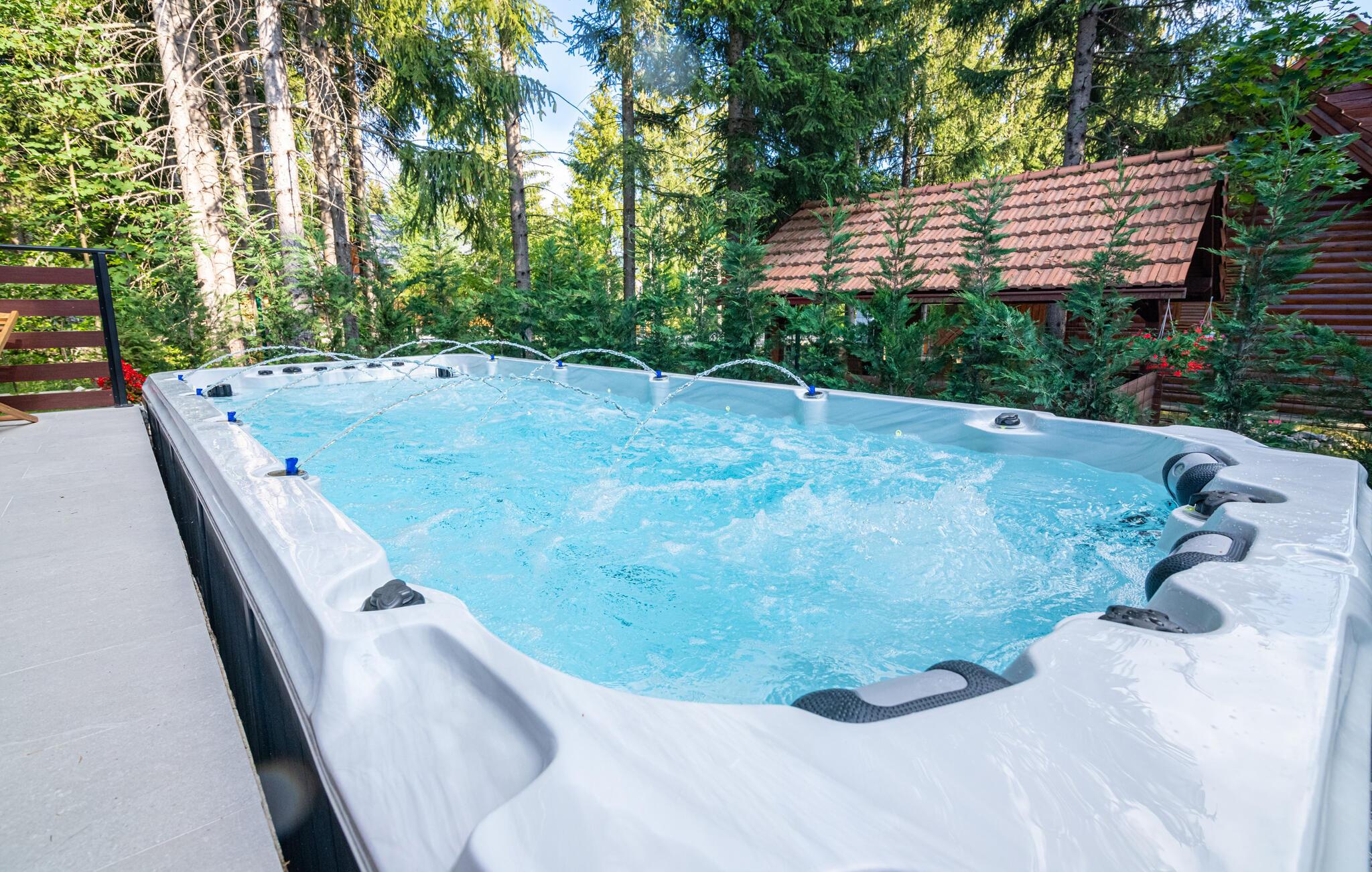 Nyt en herlig ferie i dette idylliske feriehuset med basseng og boblebad.