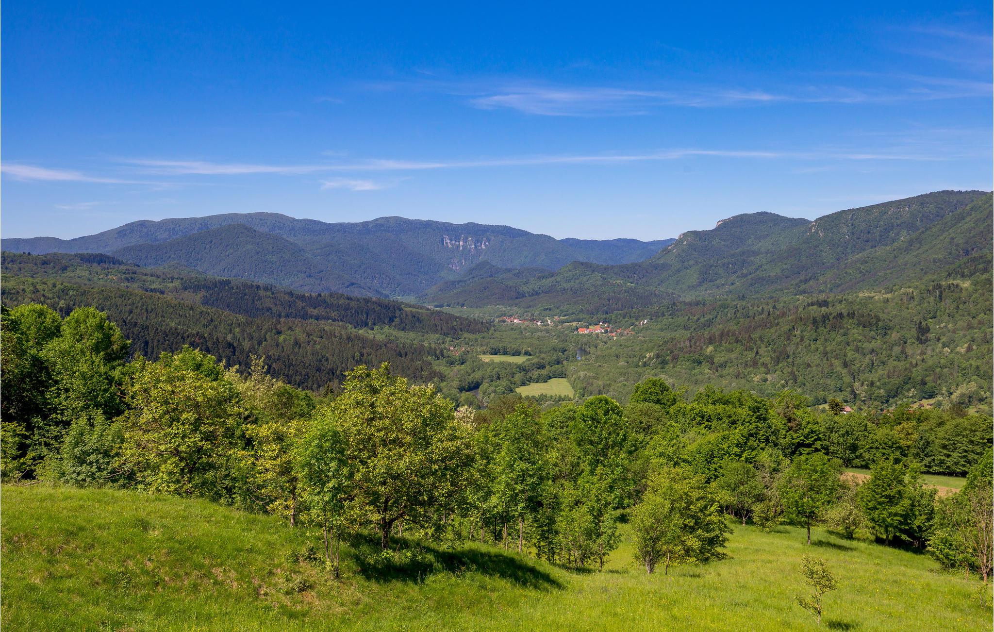 Ved ankomst vil du umiddelbart bli overbevist av husets høydepunkt, den vakre store terrassen med utsikt over landskapet. Her kan du gjøre deg komfortabel når som helst og nyte morgenkaffen, et rikholdig middagsmåltid, en god bok eller bare den fantastiske utsikten og solen. Her er du omgitt av grønne fjell, rundt dalen til den slovenske grenseelven Kolpa.
