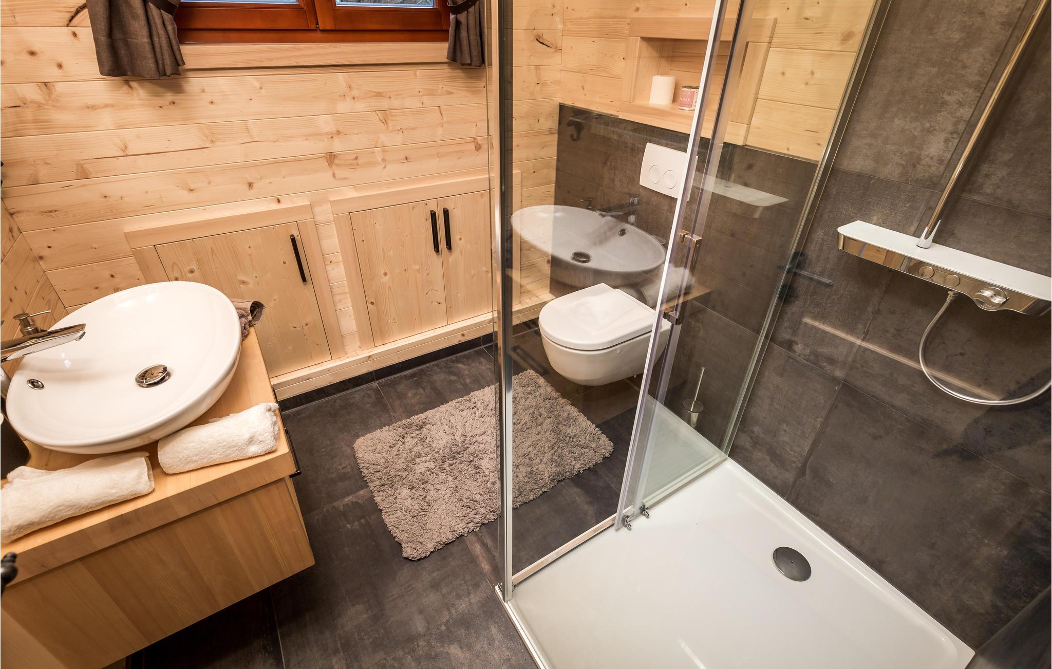 - WC med varmt og kaldt vann, Dusj