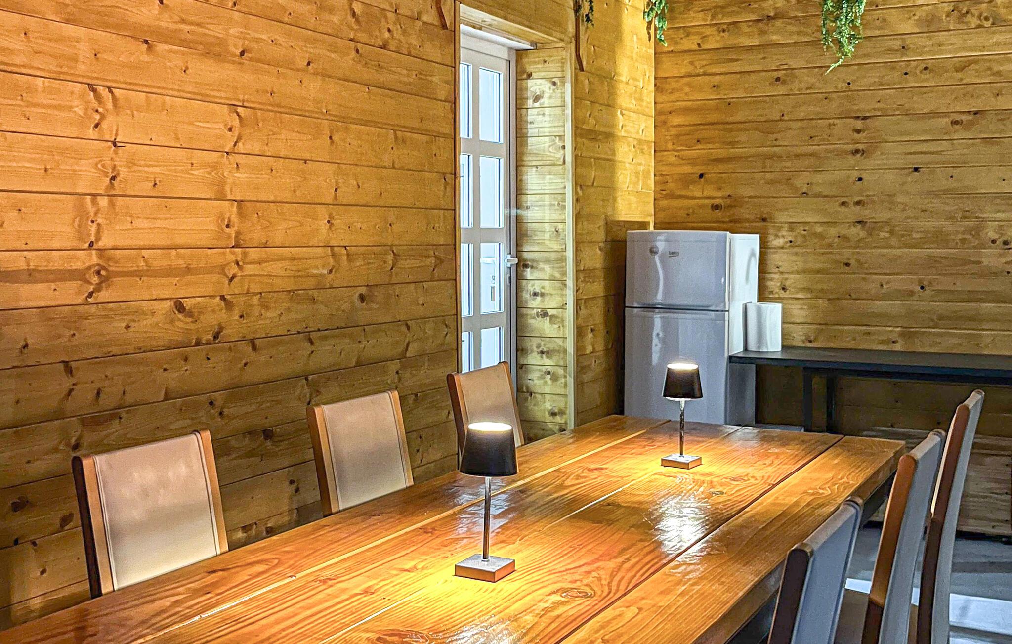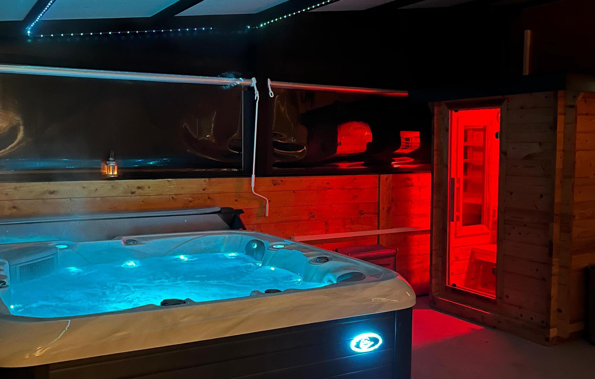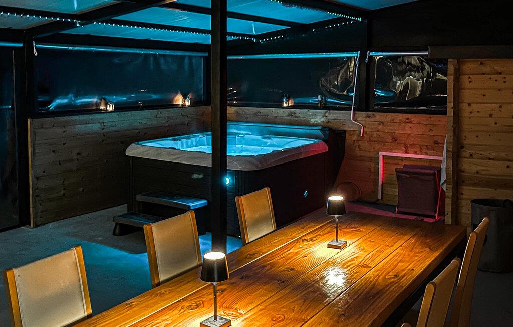 Dette koselige og kjærlig innredede feriehuset er ideelt for en avslappende ferie med venner eller familie. Gled dere til hyggelige måltider ved det rustikke trebordet, planlegg spennende utflukter og slapp av i den infrarøde hytta eller boblebadet. Kom sammen til morsomme spillkvelder eller se en film i den innbydende stuen.