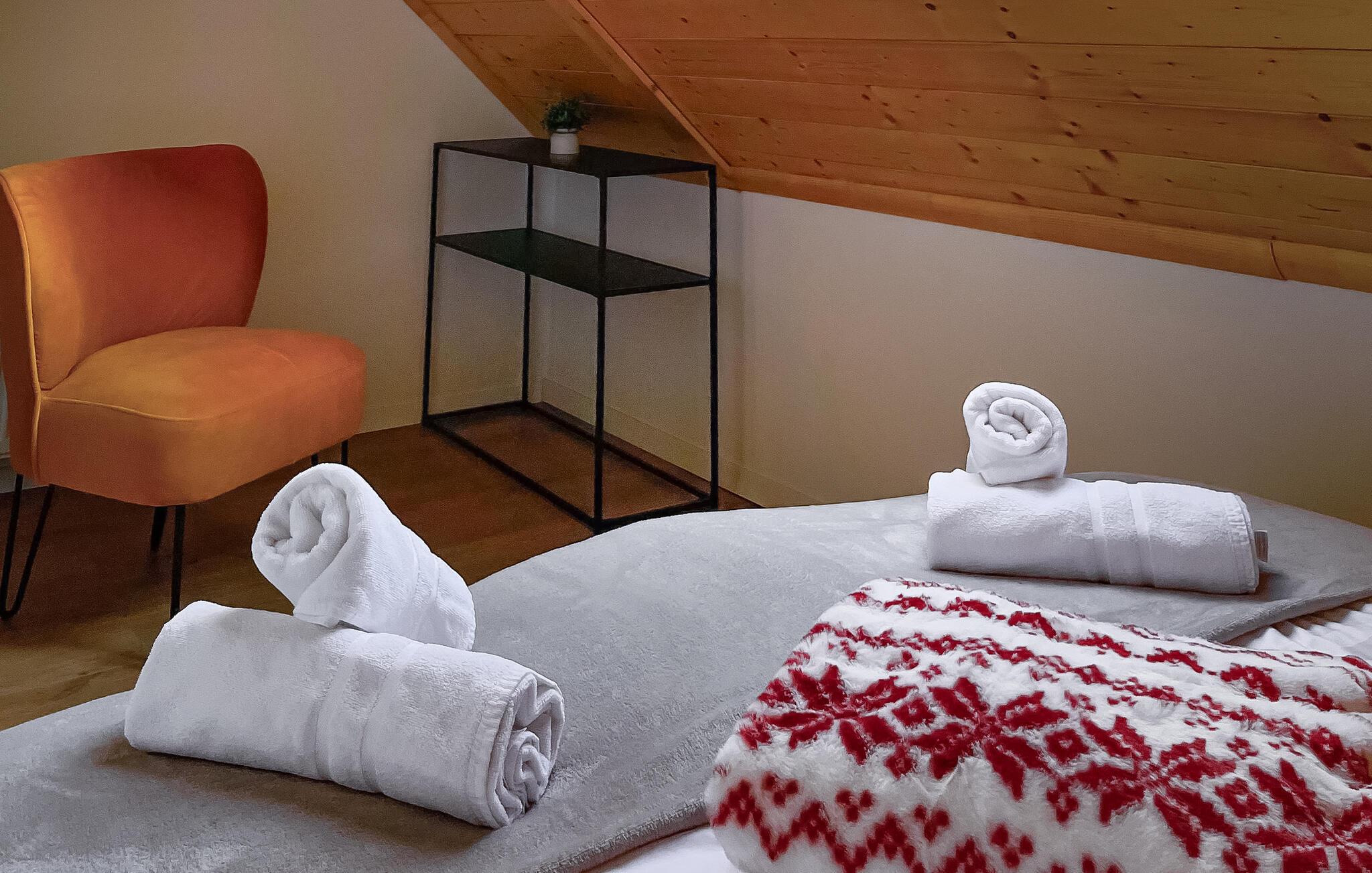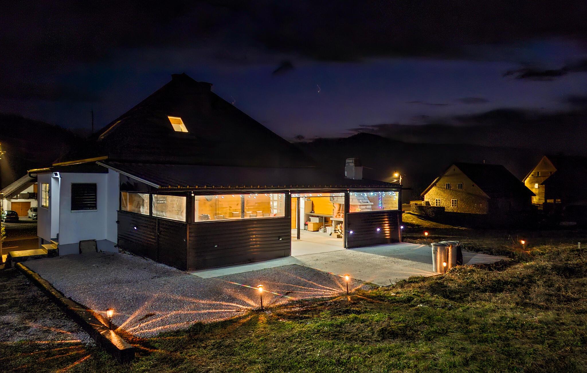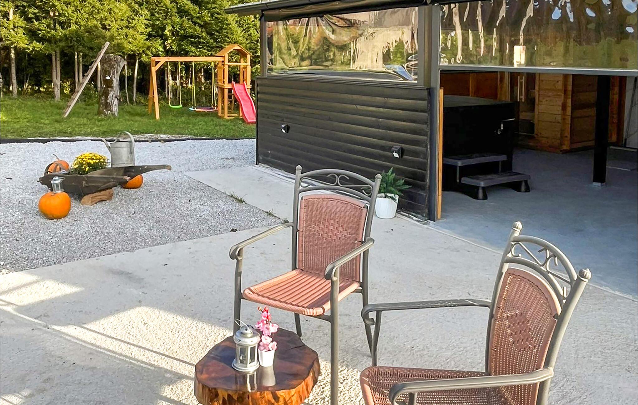 Dette koselige og kjærlig innredede feriehuset er ideelt for en avslappende ferie med venner eller familie. Gled dere til hyggelige måltider ved det rustikke trebordet, planlegg spennende utflukter og slapp av i den infrarøde hytta eller boblebadet. Kom sammen til morsomme spillkvelder eller se en film i den innbydende stuen.