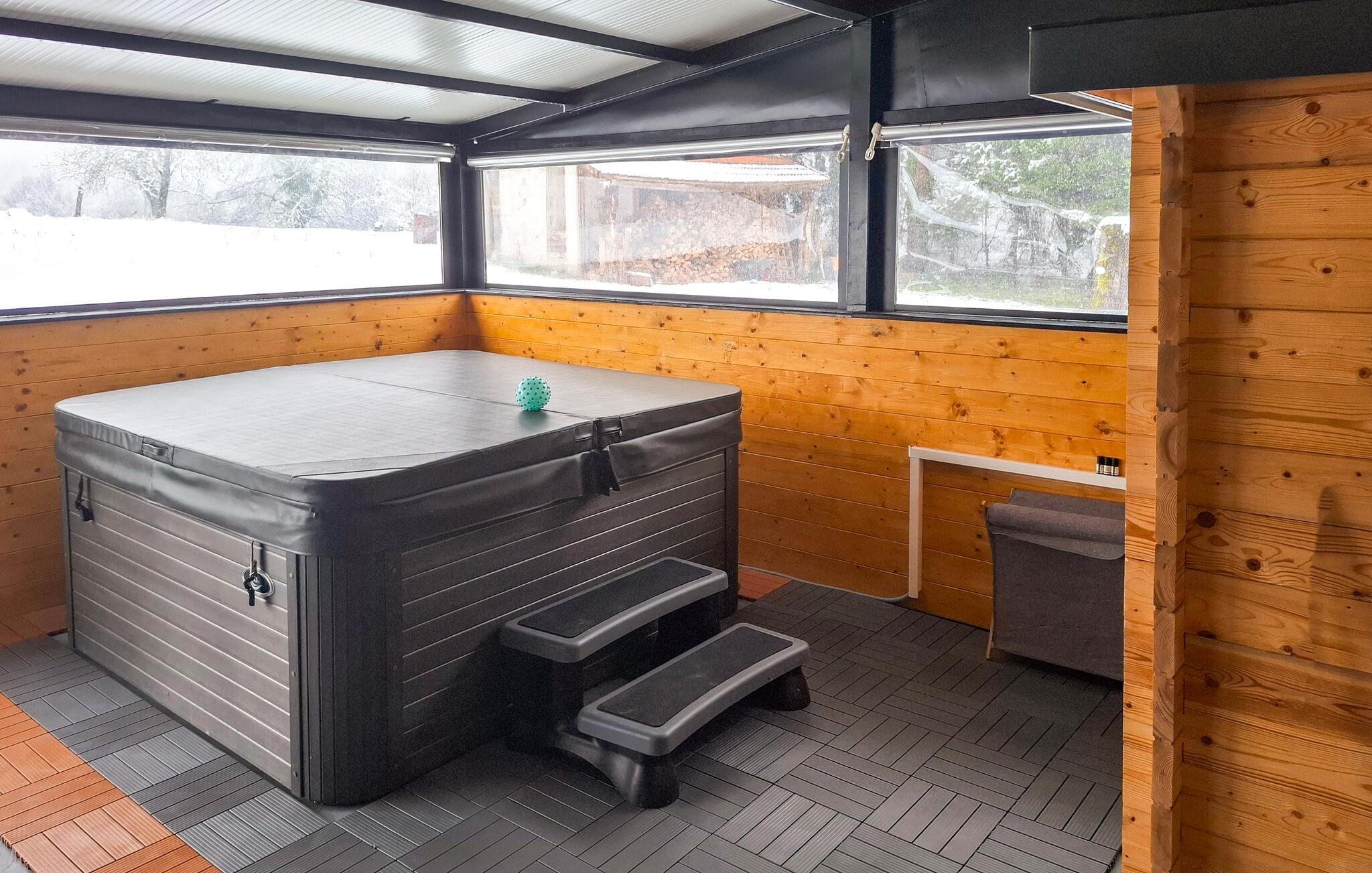 Unn deg en avslappende ferie i dette koselige feriehuset med boblebad og infrarød kabin.