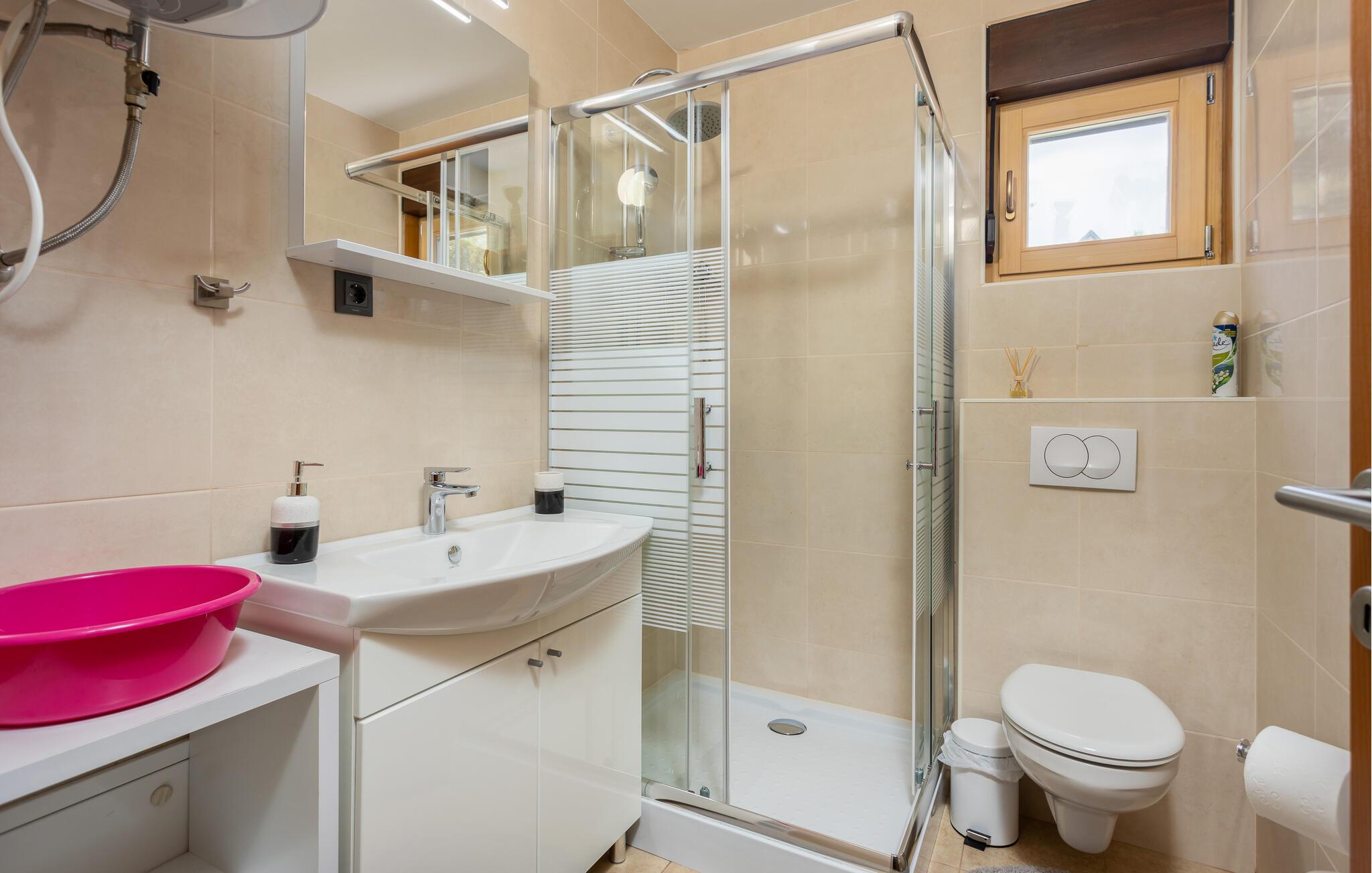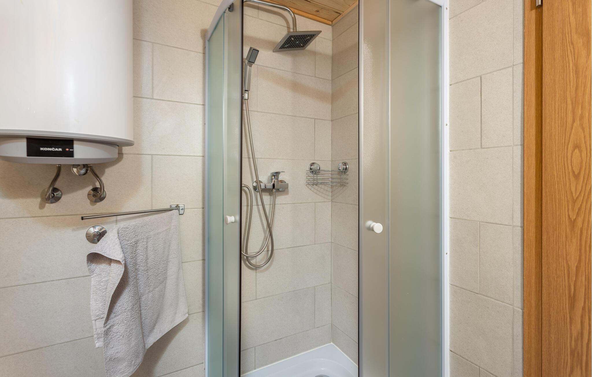 - WC med varmt og kaldt vann, Dusj